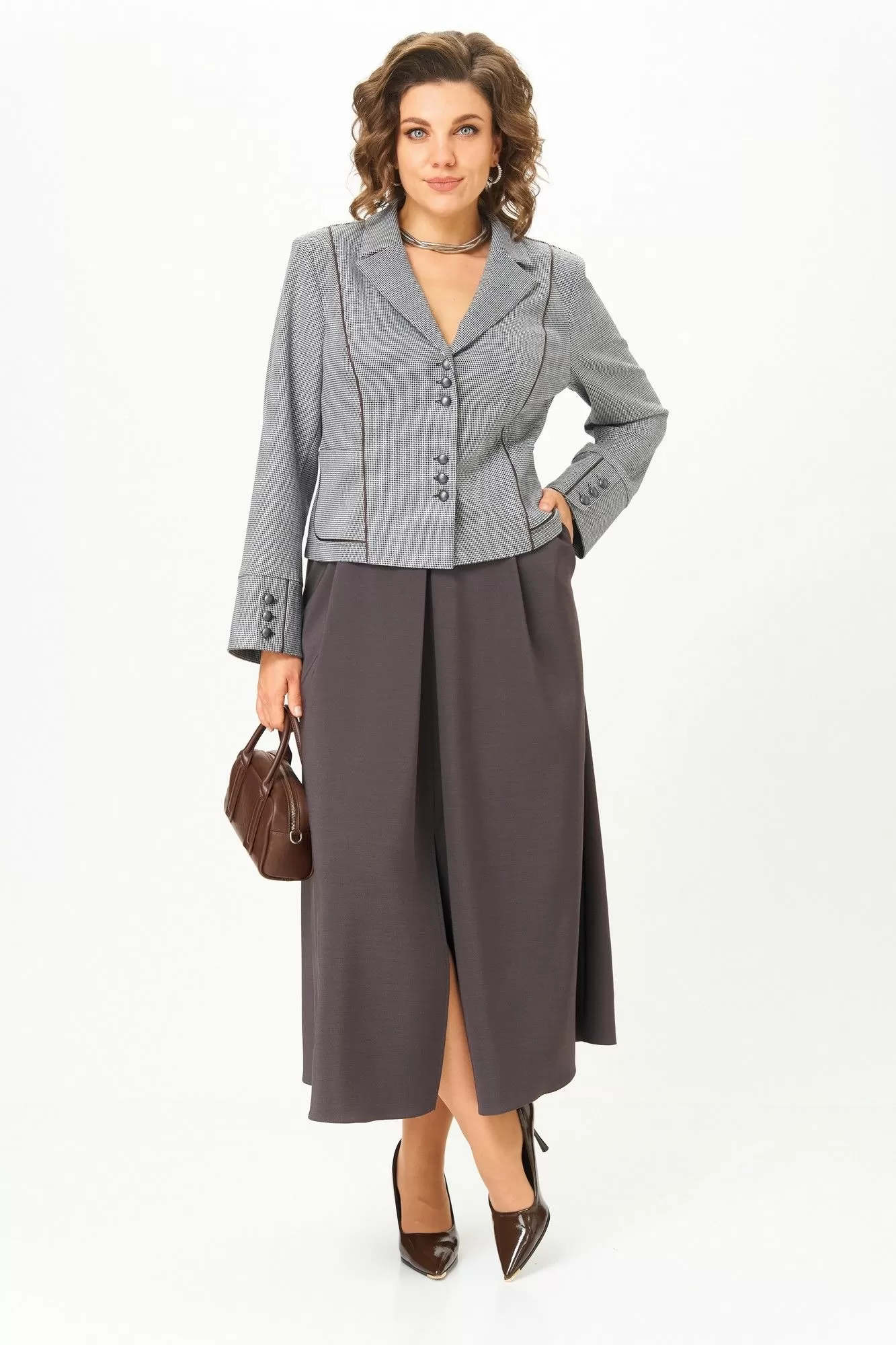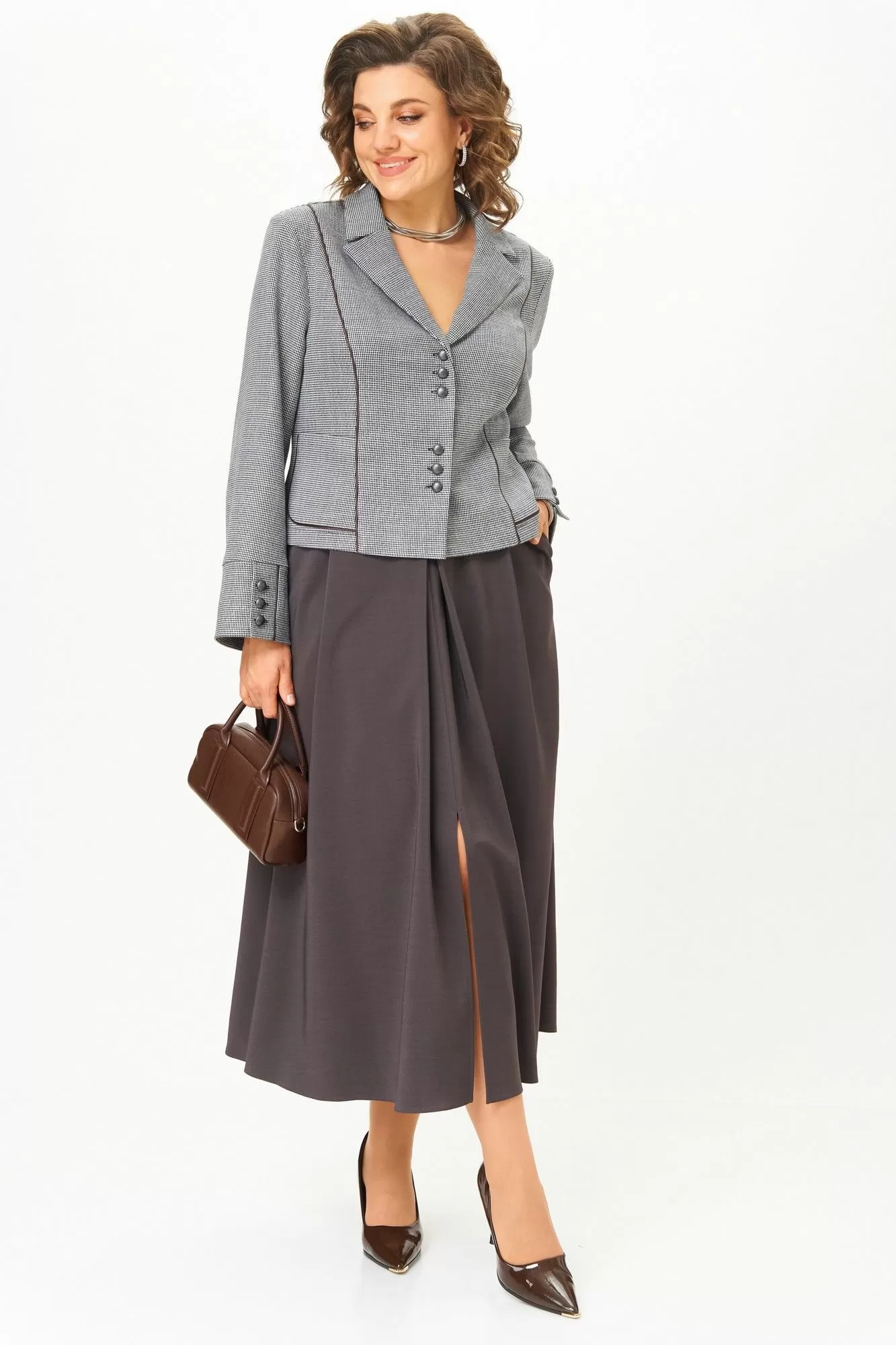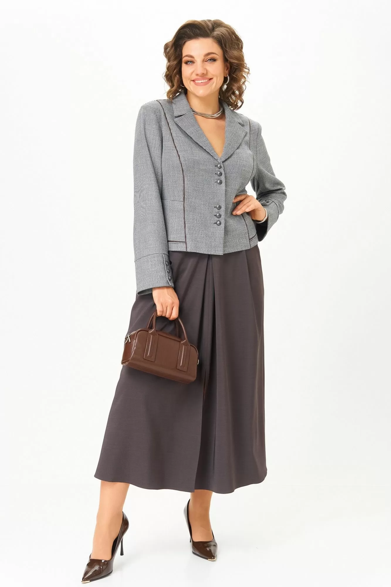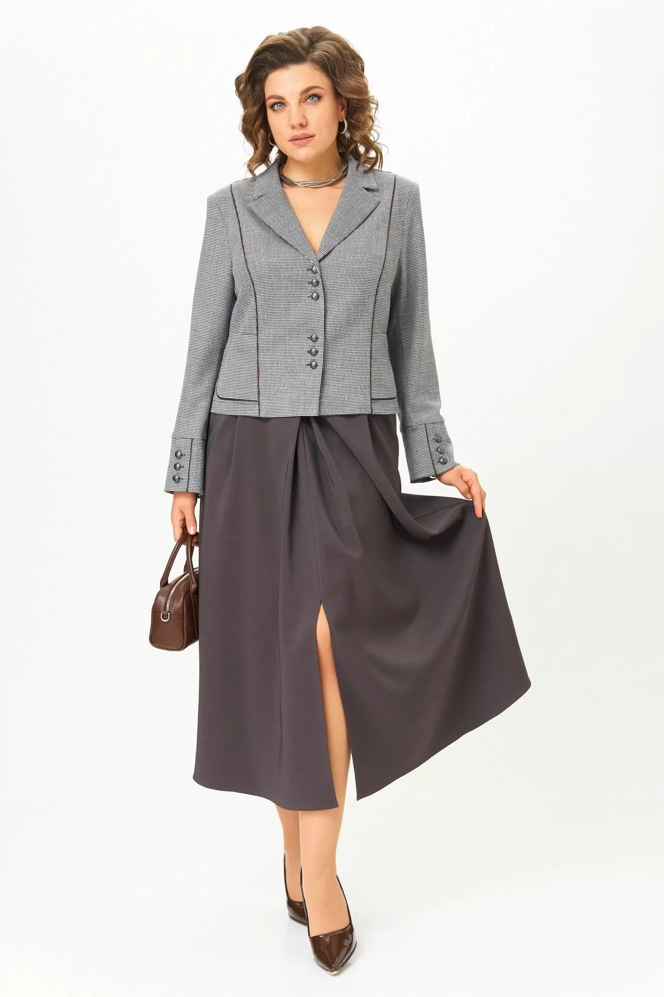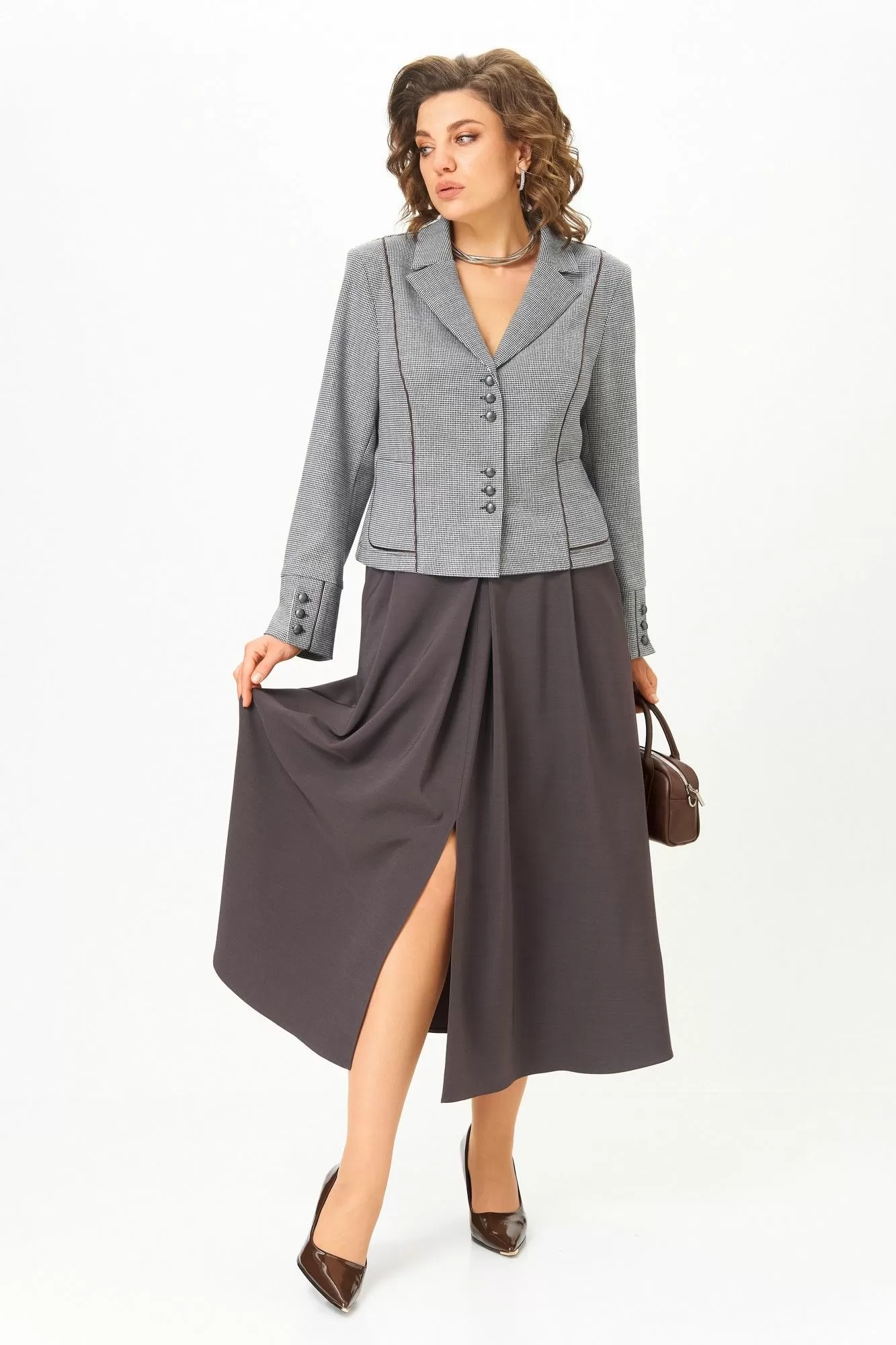 Aira Style 24133 серо-коричневый, Юбочный костюм