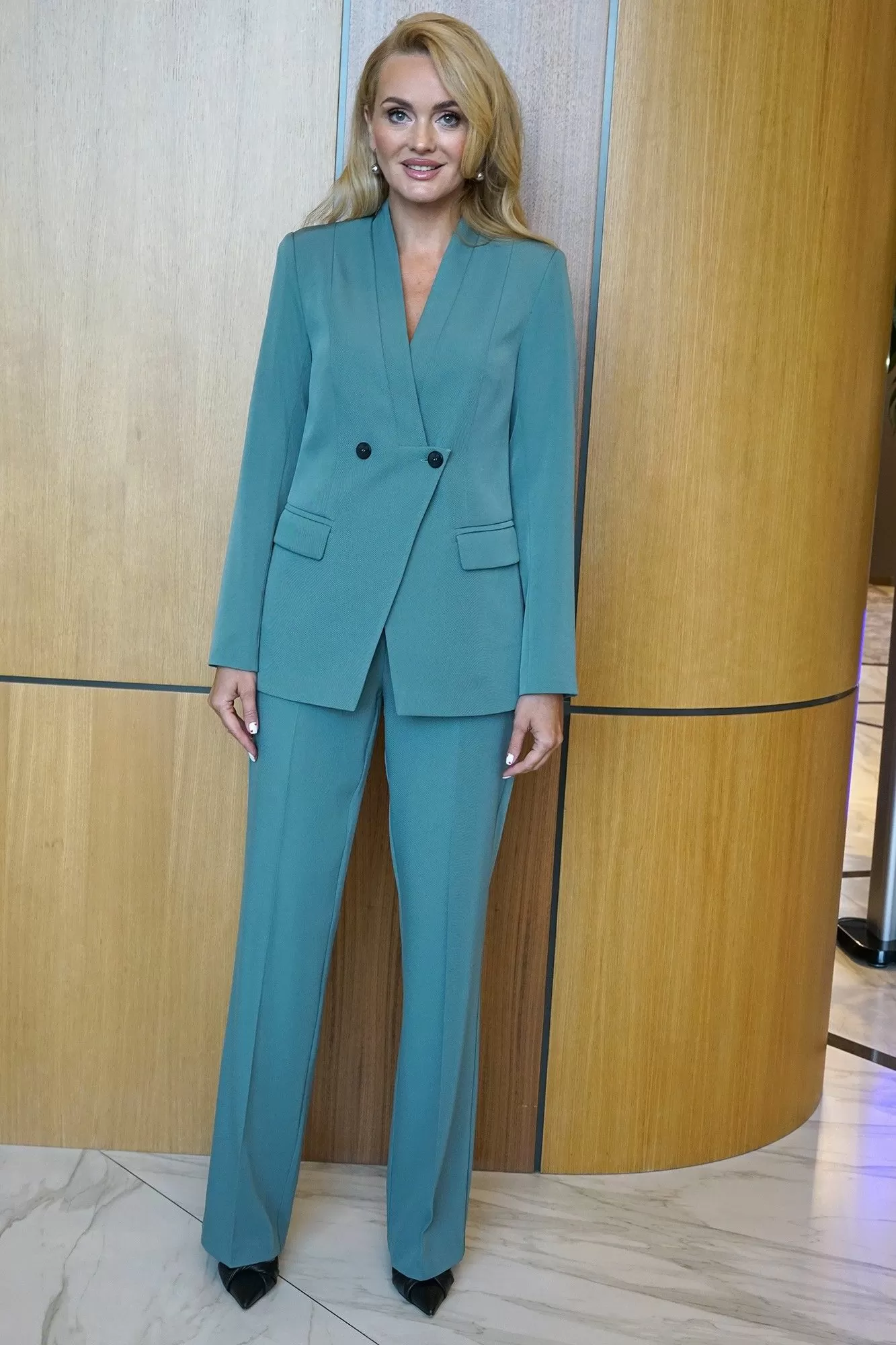 Жакет полуприлегающего силуэта, на подкладке, с двухбортной застёжкой на петлю, пуговицу и с внутренней застёжкой на петлю, пуговицу.