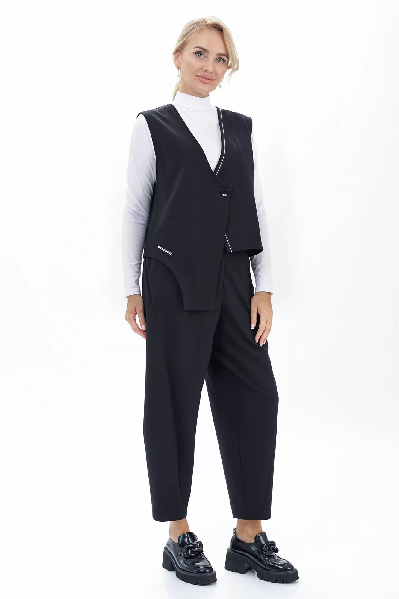 Комплект женский 3-х предметный состоит из жилета, блузы и брюк.