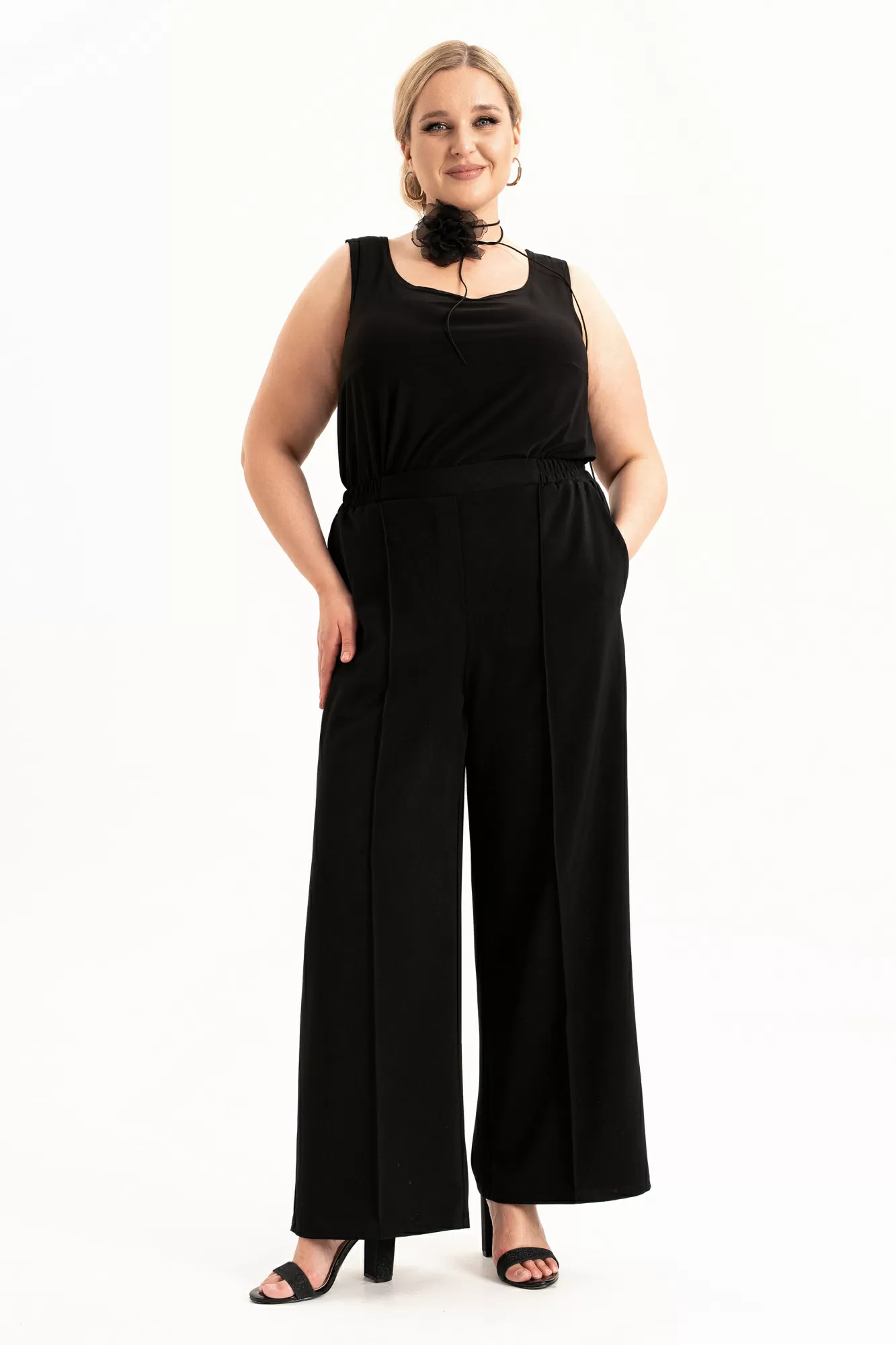 Этот комплект одежды идеально подходит для женщин, которые хотят выглядеть стильно и элегантно на любом мероприятии. Идеальный вечерний наряд, который придаст особый шик Вашему образу. Комплект состоит из брюк , блузы и жакета, и образует абсолютно классическую тройку. Неважно, это деловое собрание или праздничное мероприятие - этот брючный комплект подойдет для любого случая. Базовая модель прекрасно подчеркнет вашу фигуру и придаст вам очаровательный вид. Комплект выполнен из качественной ткани и дополнен жакетом с застежкой на декоративный крючок , которые делают его еще более привлекательным и уникальным. На жакете обработан воротник шалька и карманы в фигурных рельефах. Жакет на подкладке с длинным рукавом. Блуза без рукова из стрейчевой ткани с нагрудными выточками. Брюки-палаццо на эластичной резинке с эмитацией гульфика. По переду расположены карманы с наклонным входом. Нарядный вечерний комплект создаст модный образ на свадьбу, или на вечеринку, а так же подчеркнет Ваш стиль . Брючный комплект женский больших размеров отличается высокой степенью практичности и универсальности,приобретая один комплект- Вы получаете много образов, комплектуя элементы комплекта с другими вещами из своего гардероба!