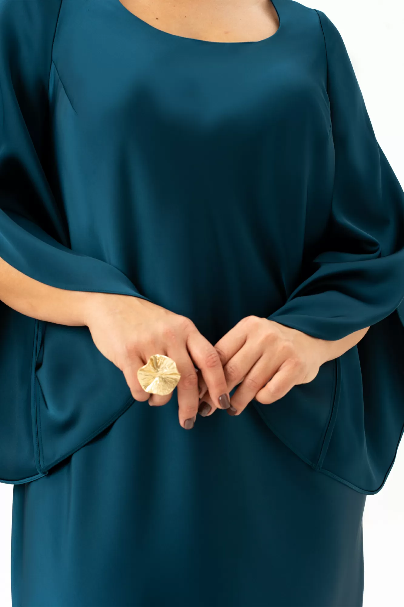 Элегантное женское праздничное атласное миди— идеальный наряд для торжества и особых событий. Крой платья по косой подчеркивает фигуру, создавая стильный образ. Расклешенные длинные рукава придают романтичность. Модель подходит для корпоративов, свадеб и дней рождения, а также прекрасно смотрится в ресторане или театре. Легкое и нежно переливающееся атласное покрытие придает наряду изысканность и комфорт. Платье миди подходит женщинам разных возрастов — от девочек-подростков до мамы, которые ценят красивую одежду для праздника. Этот наряд отлично впишется в осенний или зимний гардероб благодаря ткани, но будет уместен и летом на клубных вечеринках или выпускном. Стиль классического фасона сочетается с формой платья, обеспечивая свободу движений без утраты элегантности. В простате- красота, именно это относится к этой модели.
