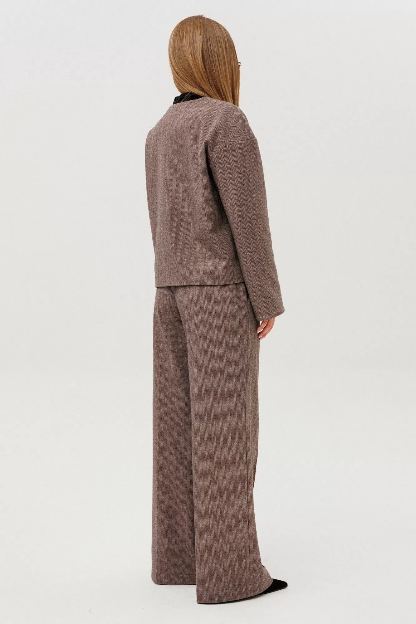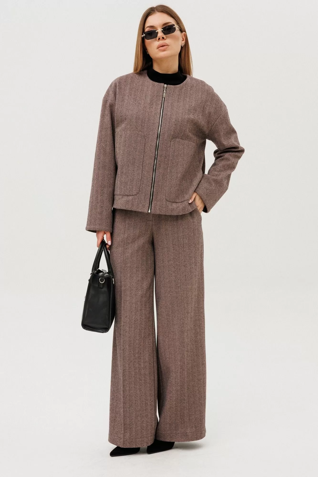 Элегантный женский жакет , выполнен из теплой ткани, добавит изысканности любому образу. Прямой силуэт с модным спущенным плечом обеспечивает комфортное ношение, а круглый вырез горловины подчеркивает лаконичность дизайна. Жакет оснащен удобной застежкой на молнию, что позволяет легко регулировать глубину декольте. Втачные двухшовные рукава придают изделию аккуратный вид. Функциональные накладные карманы на передней части и качественная подкладка увеличивают удобство и практичность жакета. Идеальный выбор для создания стильного и современного ансамбля.