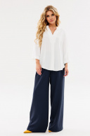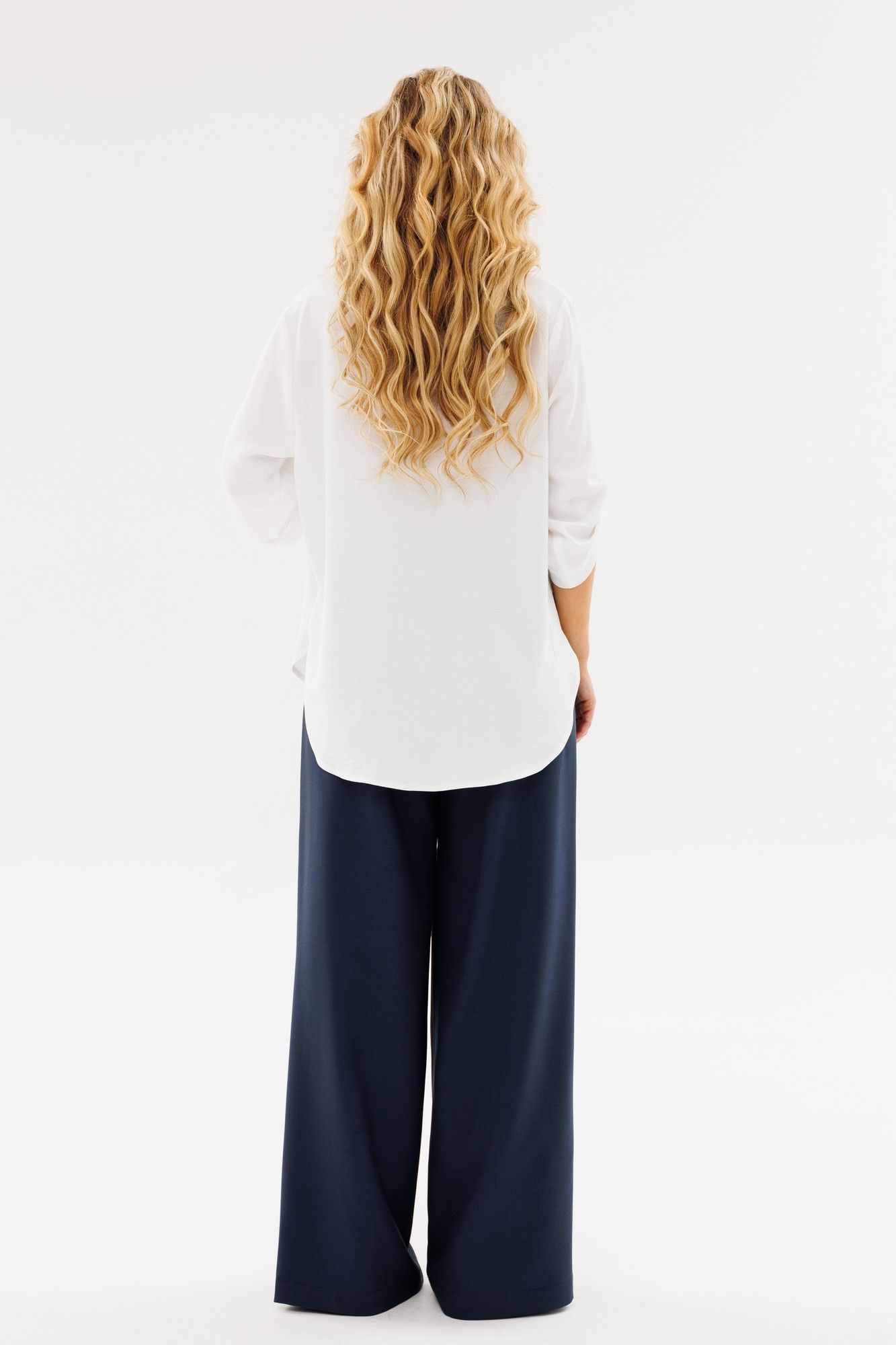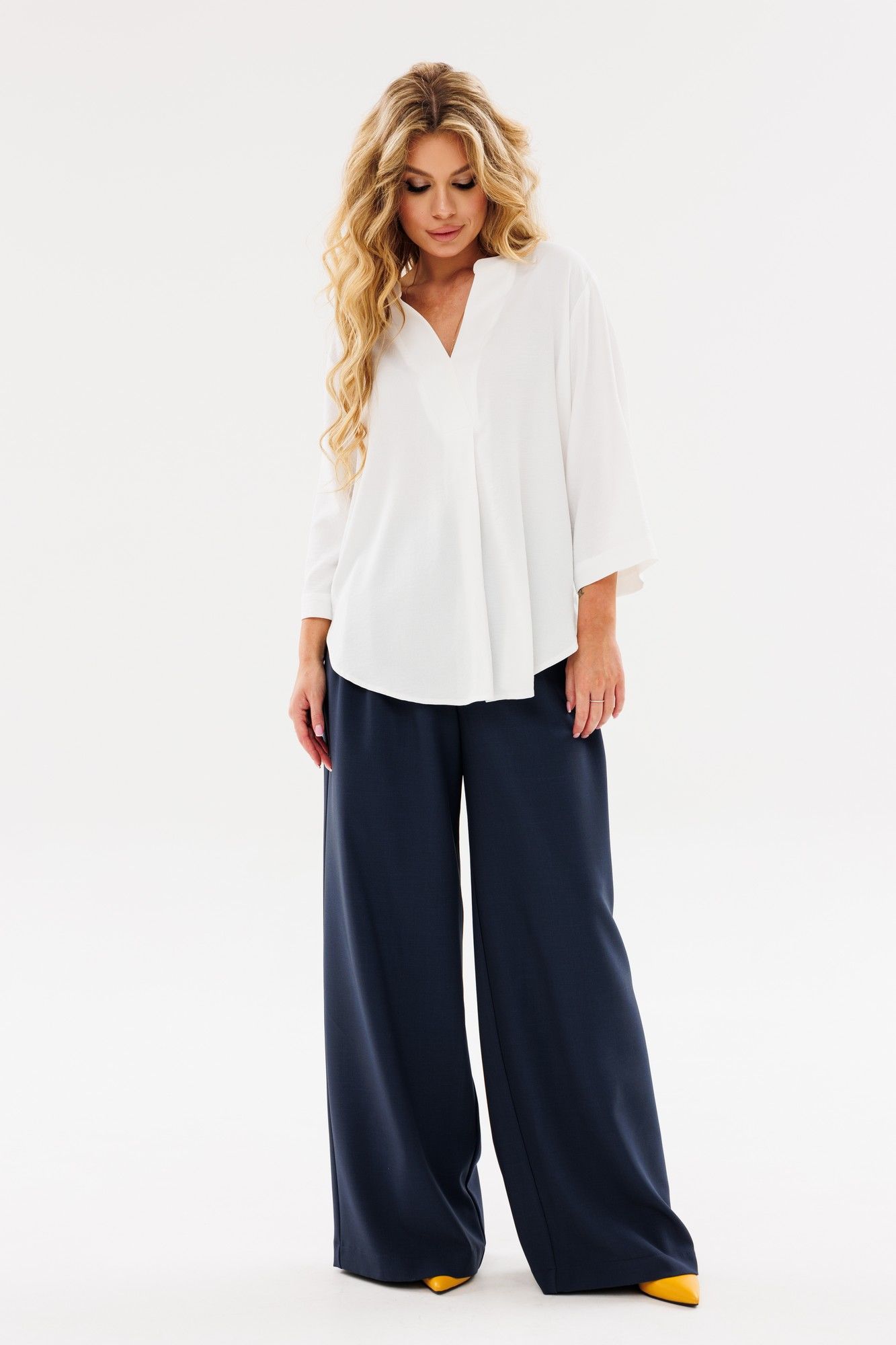 Блузка женская прямого силуэта с притачным рукавом.По переду V-образный вырез с притачной планкой и складкой.Рукав на пате.Низ фигурный.