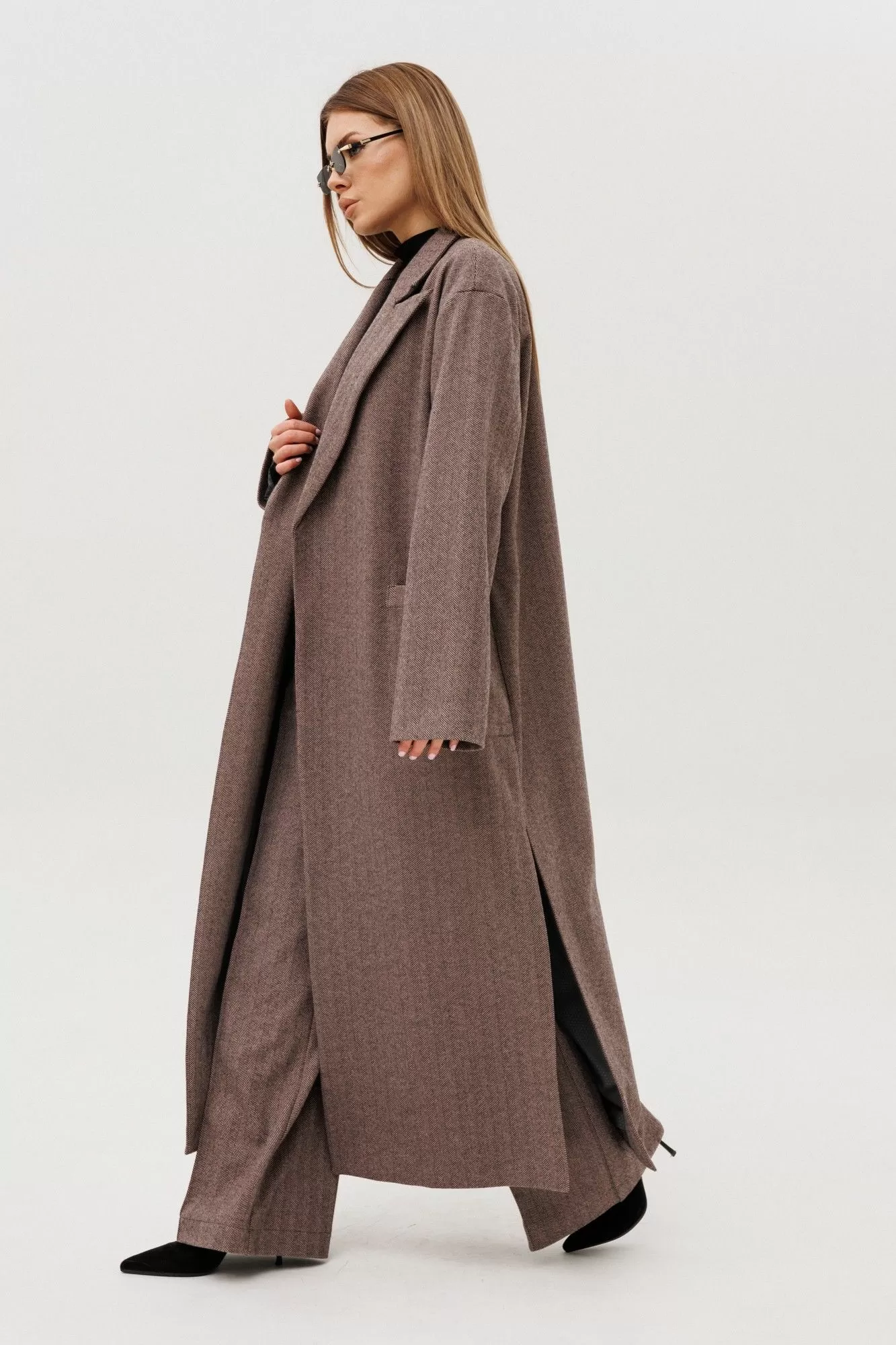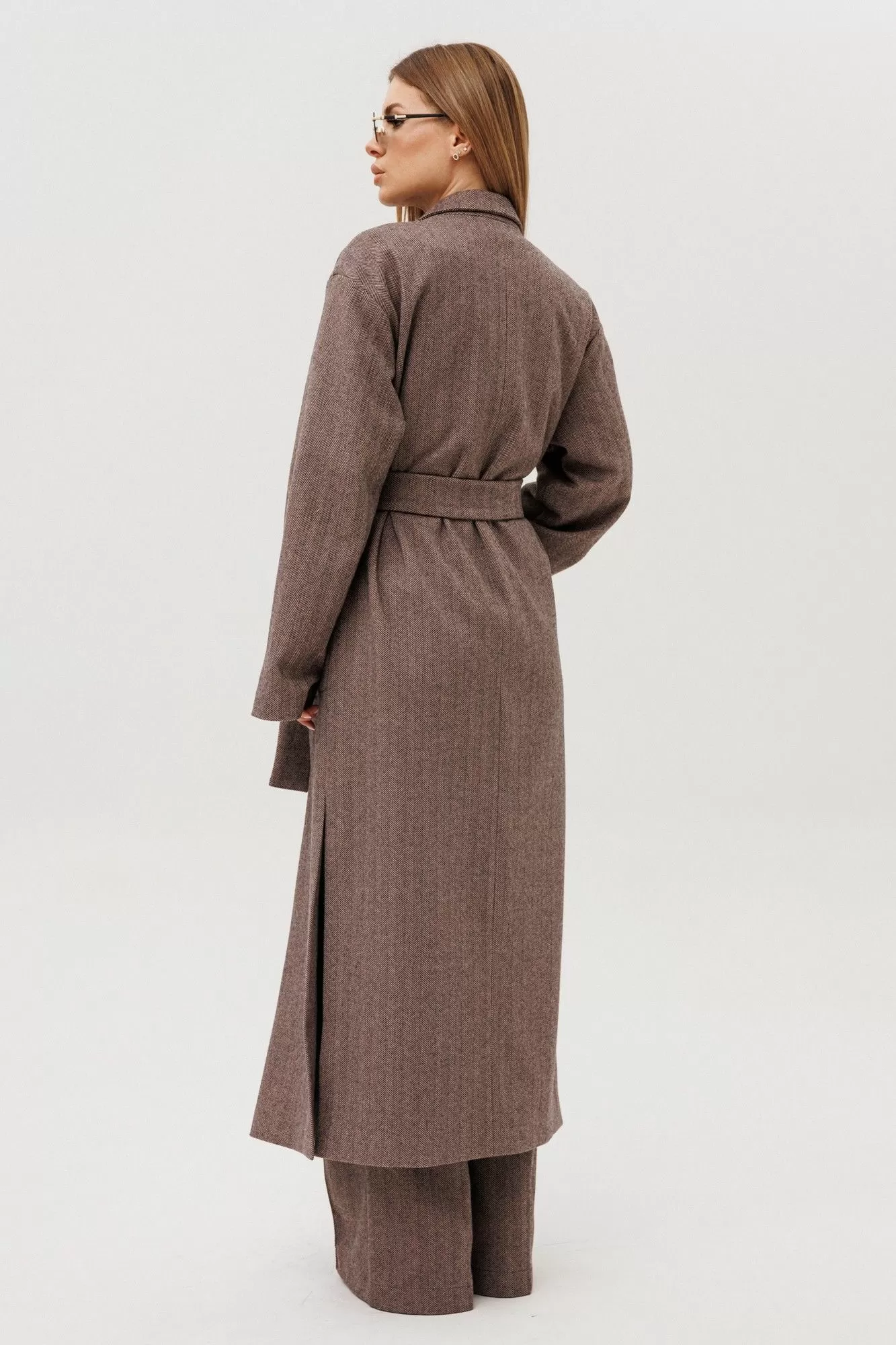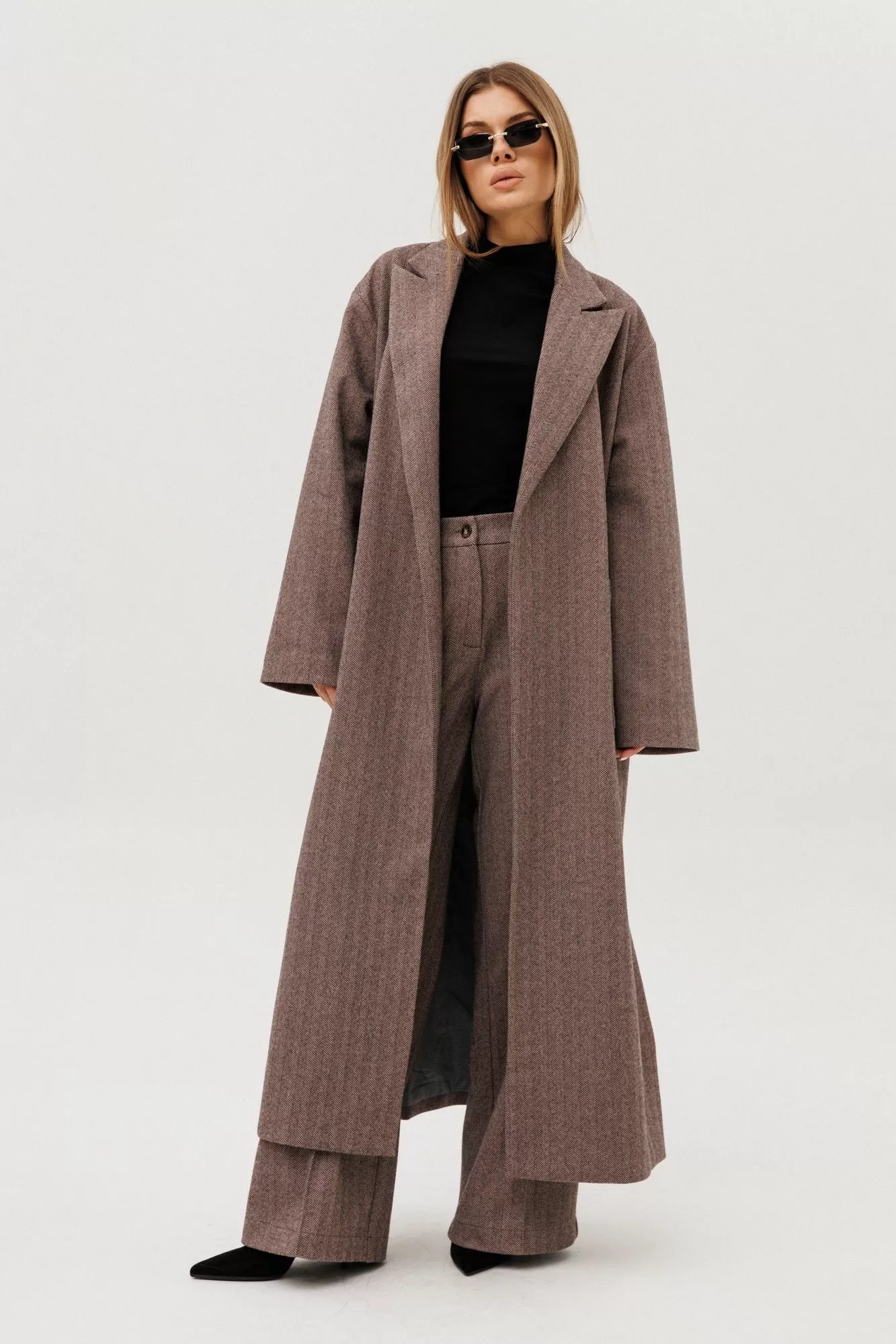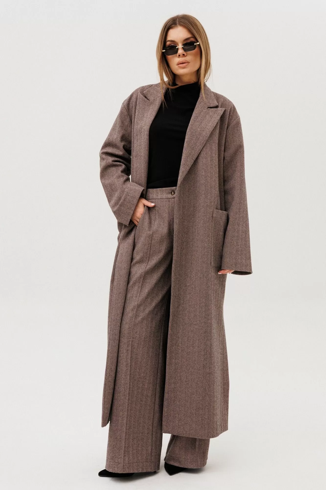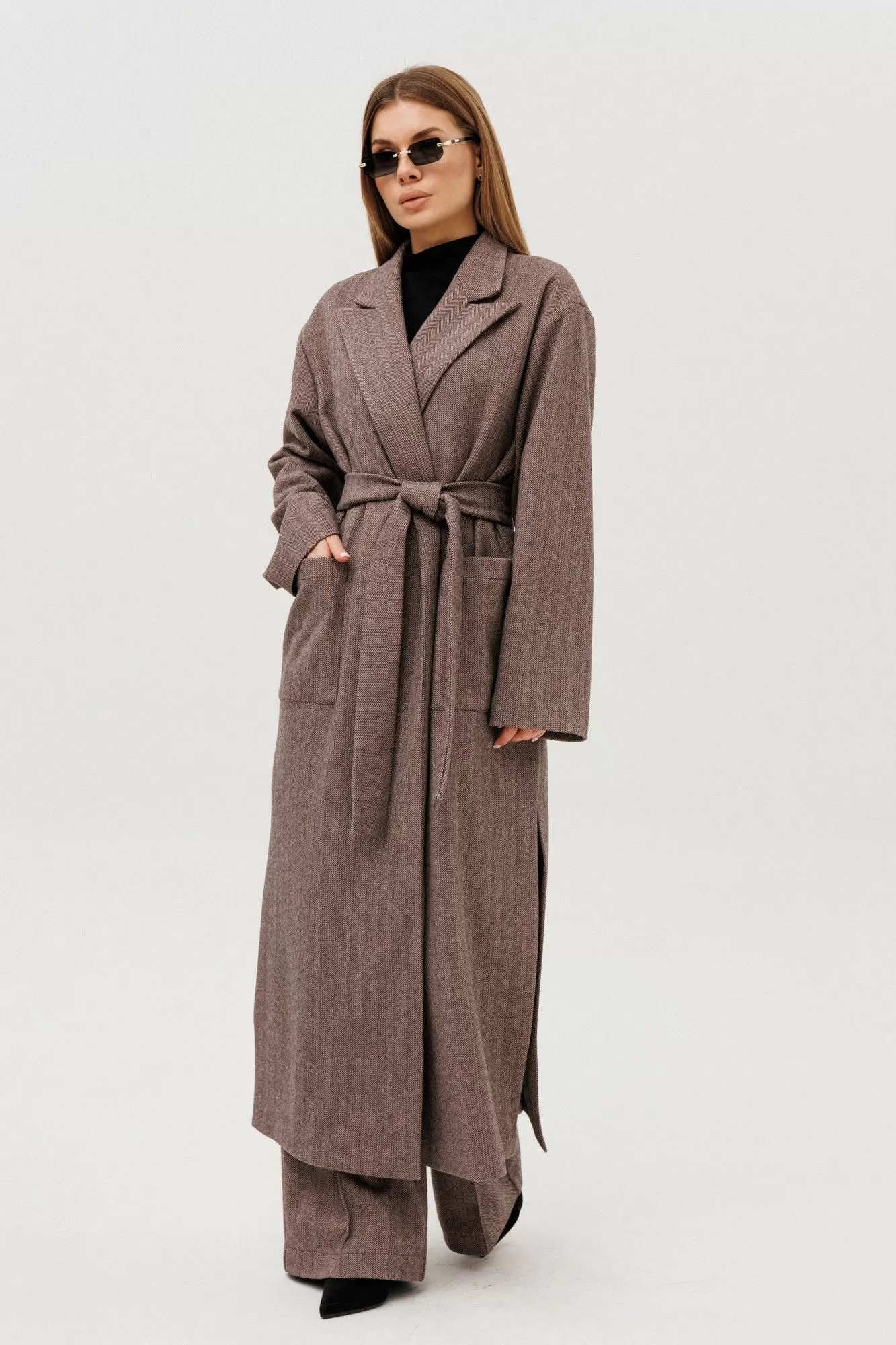 Кардиган женский,выполнен из теплой ткани, свободного силуэта со спущенным плечом,в боковых швах разрезы. Рукав ДЛИННЫЙ.По переду накладные карманы.Кардиган на подкладке. Пояс из основной ткани в комплекте.