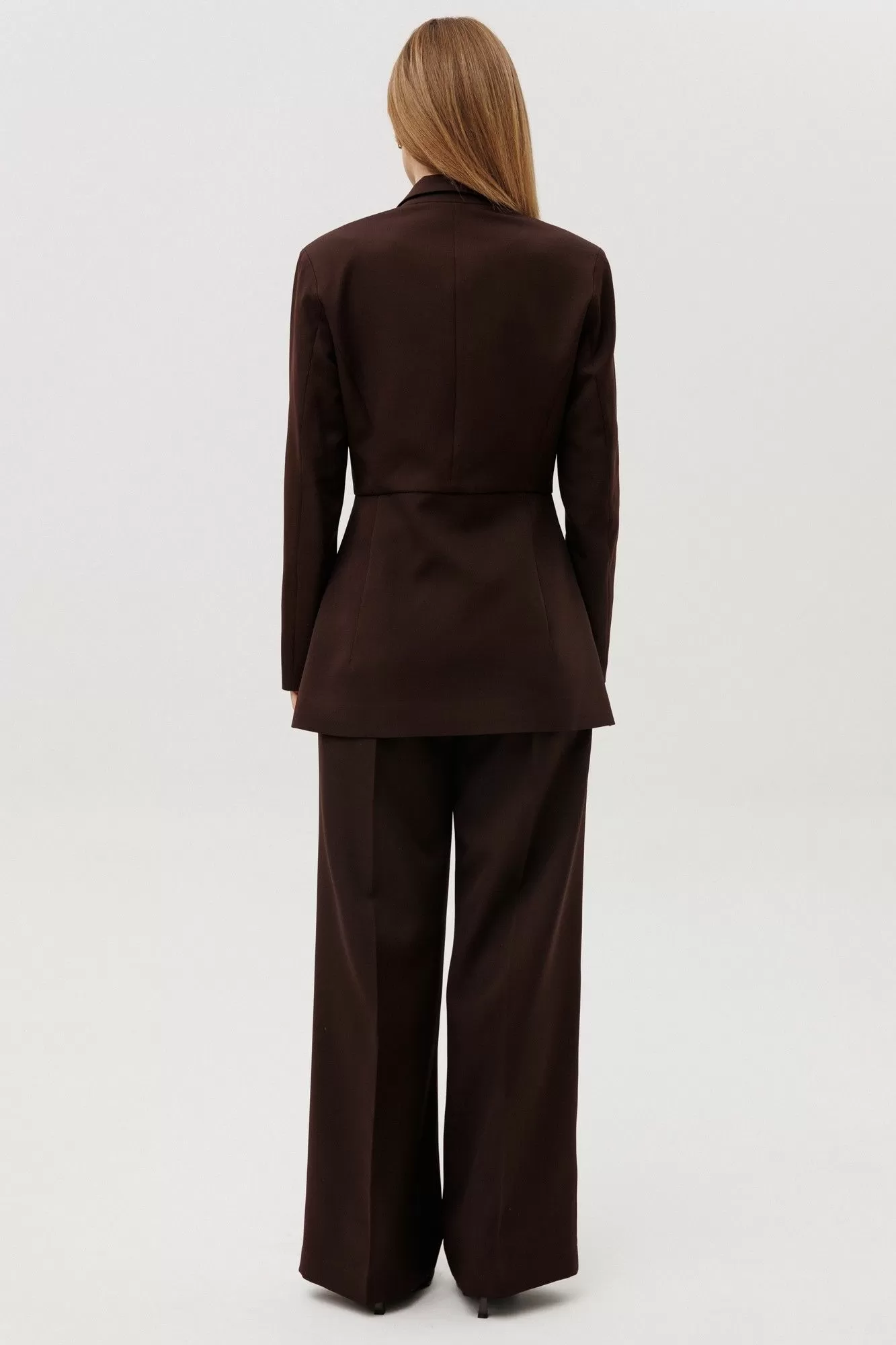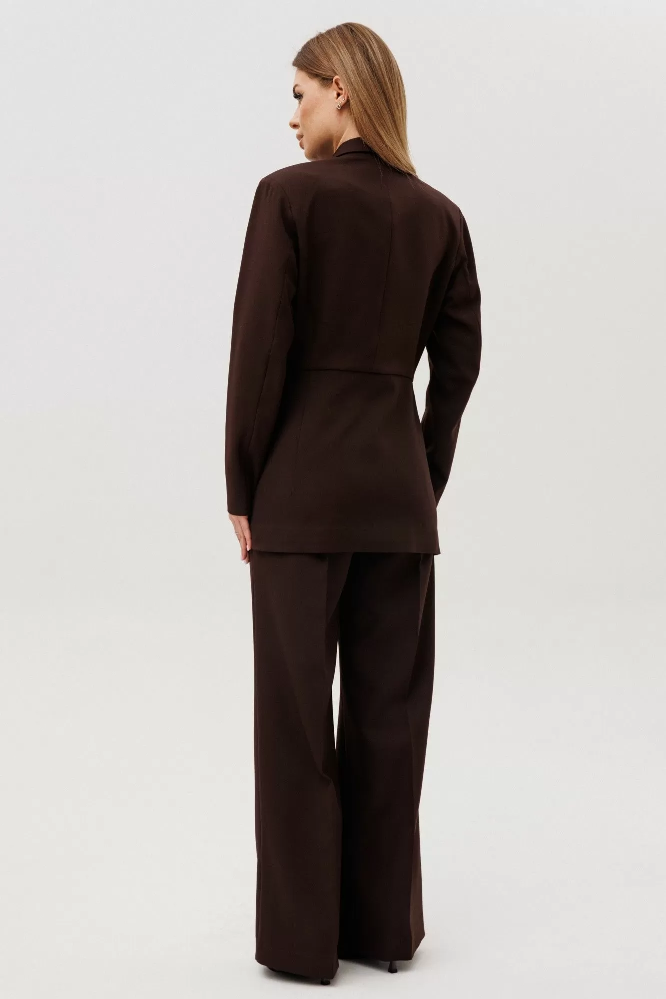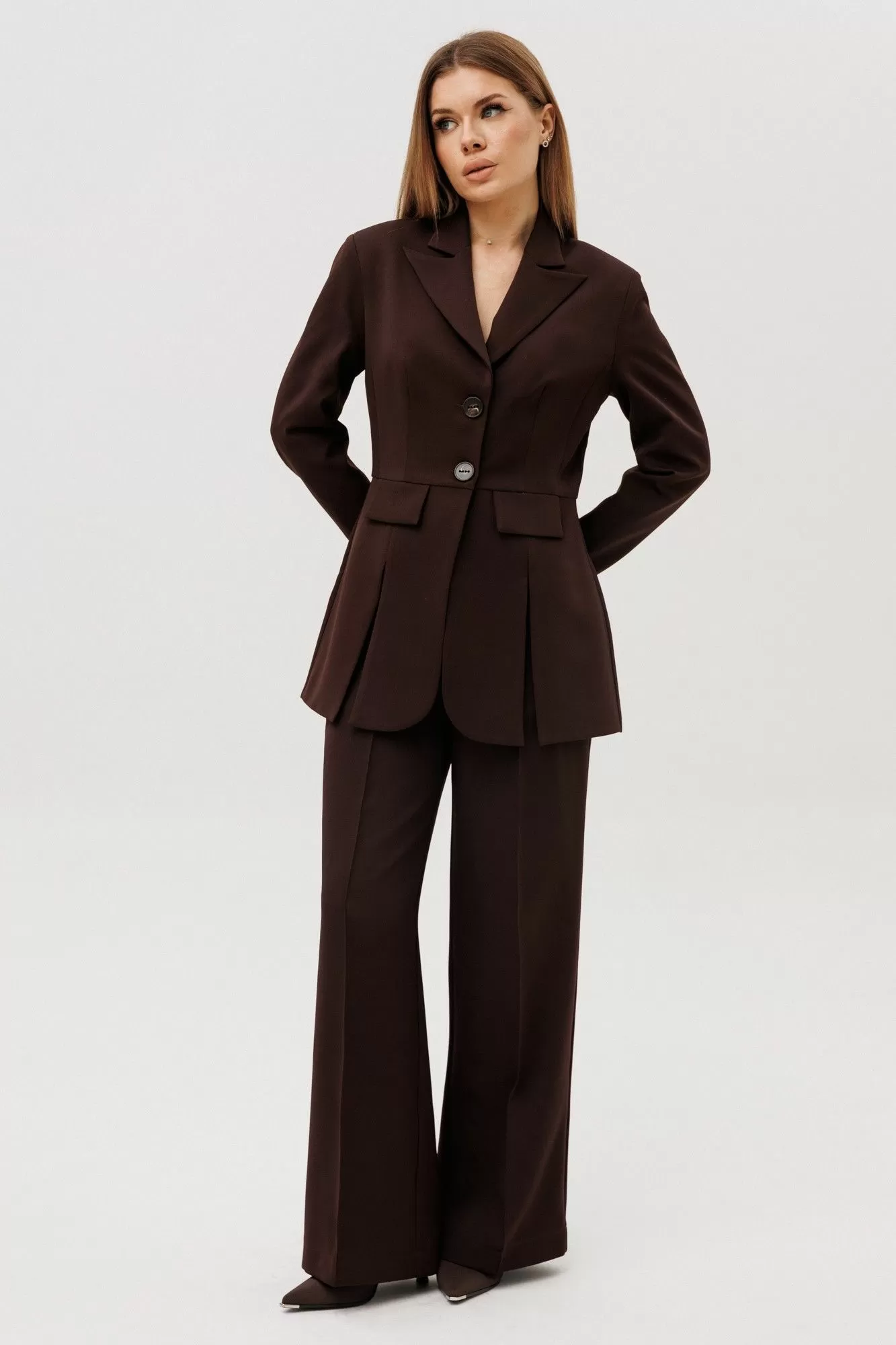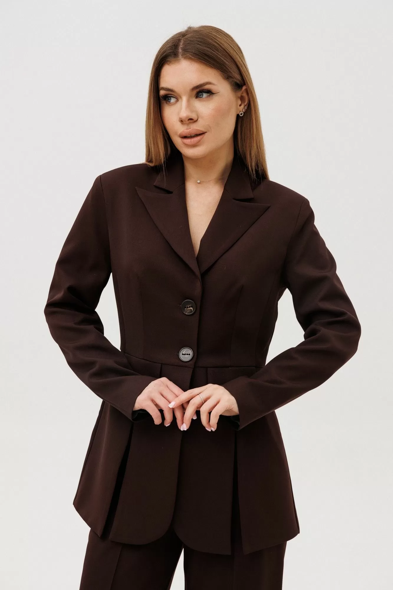 Жакет женский прилегающего силуэта, отрезной по линии талии. По переду в нижней части жакета разрезы.По линии талии декоративные клапаны.Рукав втачной длинный. Жакет на подкладке.