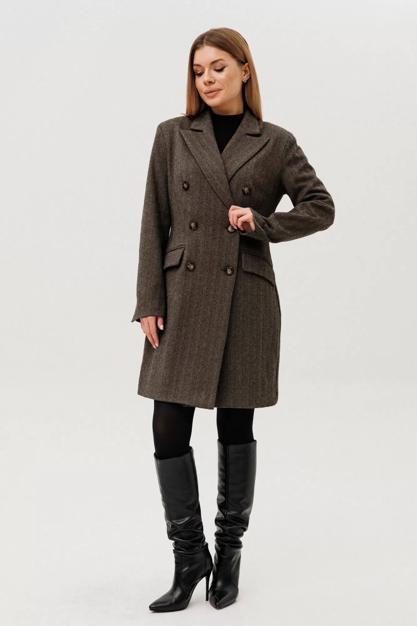 Платье-пиджак прилегающего силуэта,выполнен из теплой ткани.Застежка на петли-пуговицы,по переду действующие карманы,на рукавах шлицы.Изделие на подкладке