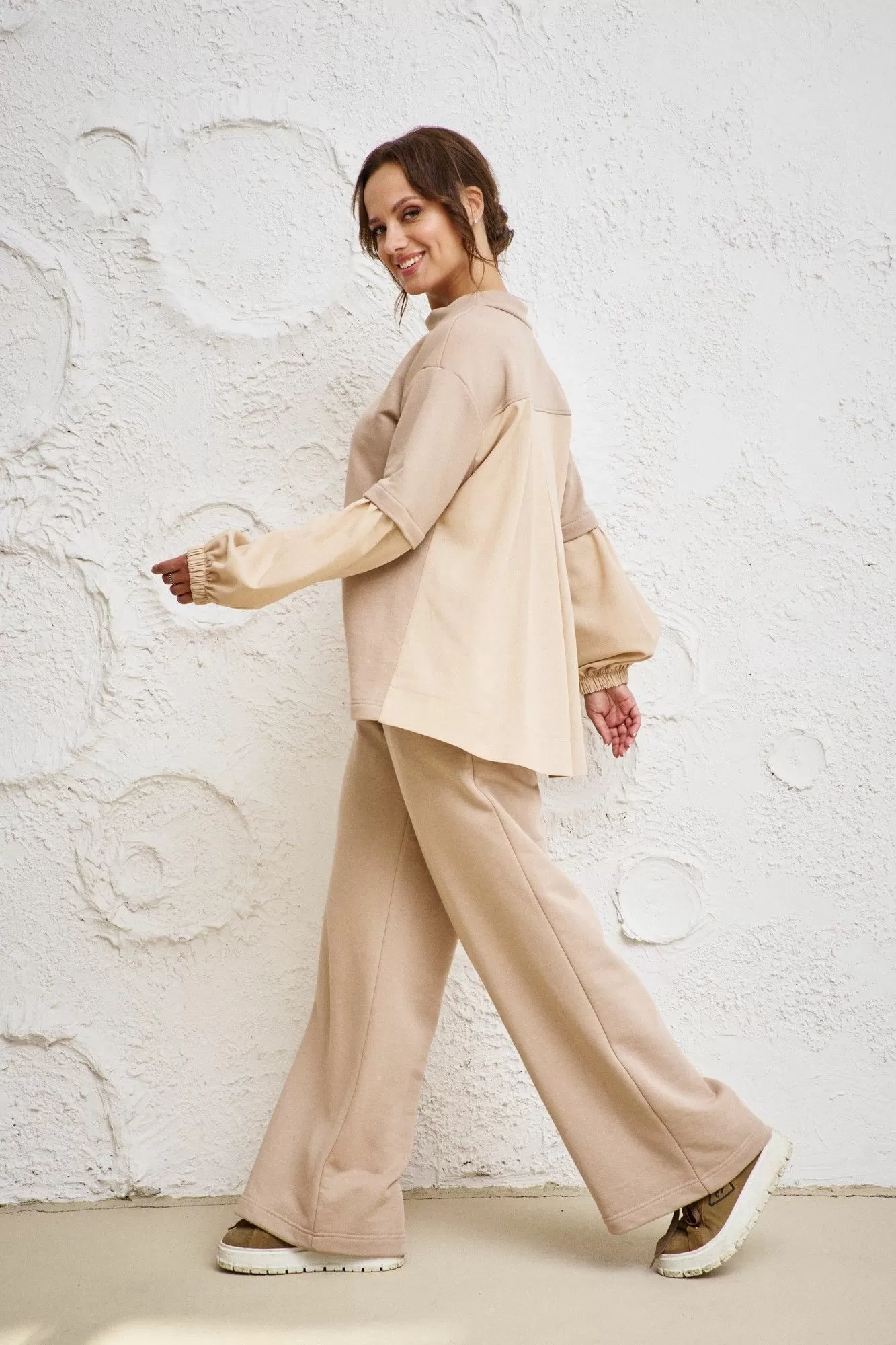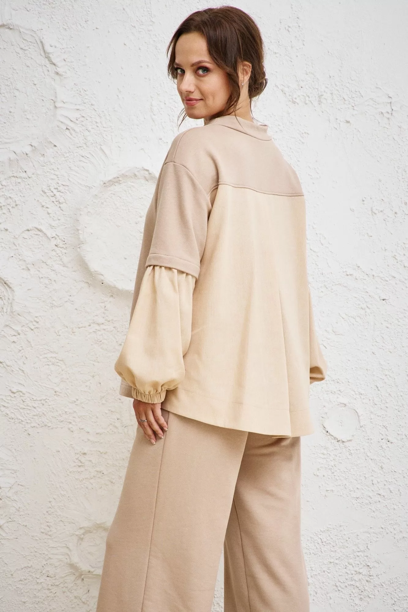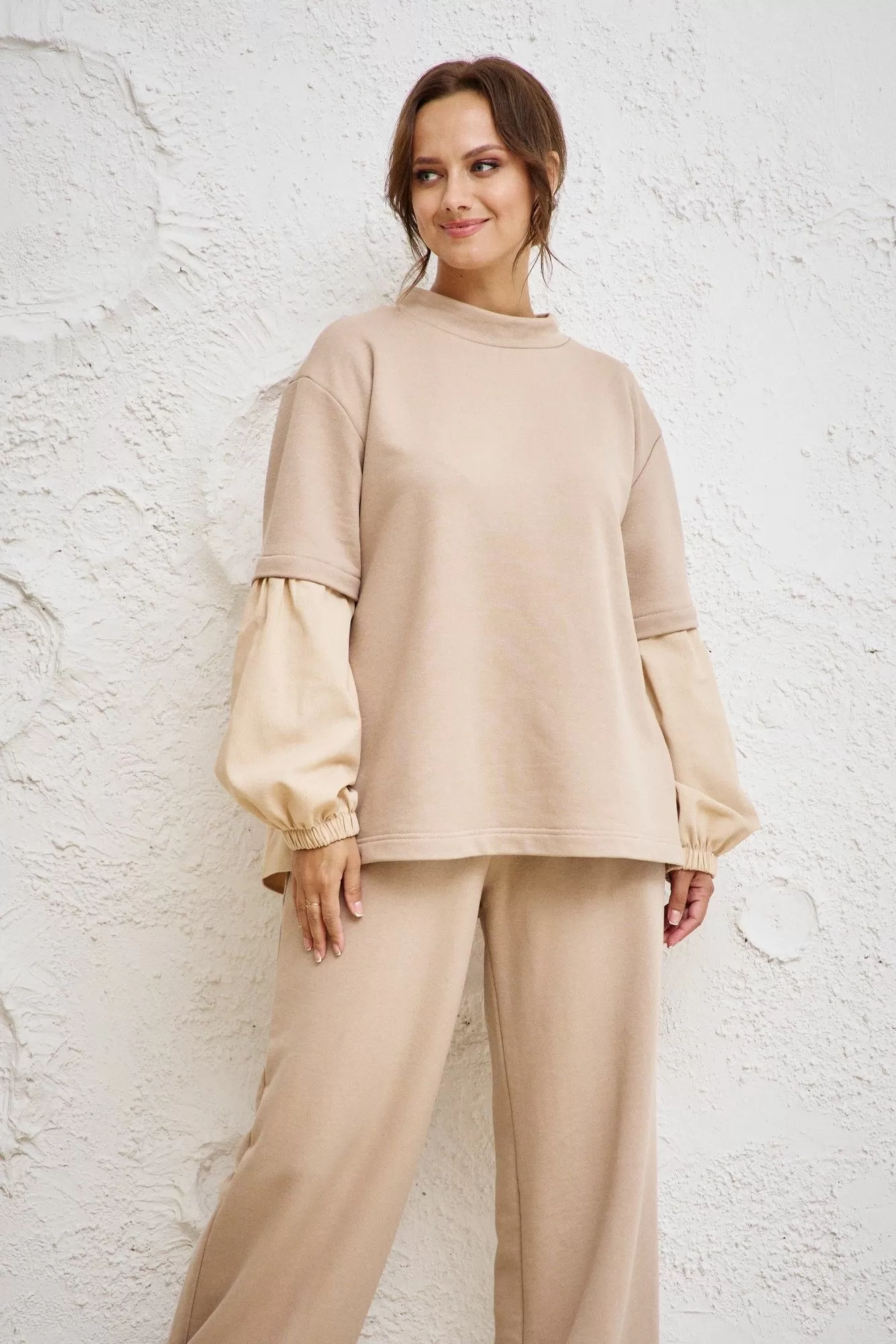 Шикарный трикотажный женский костюм от бренда Anastasia, идеальный для любого случая. Этот костюм сочетает в себе элегантность и комфорт, что делает его подходящим как для деловых встреч или домашней одежды, так и для праздничных мероприятий. Джемпер прямого силуэта со спущенным плечом. Полочка трикотажная. По спинке идет отрезная кокетка и вставка из отделочной ткани со встречной складкой по центру, низ фигурный. Воротник - стойка. По рукаву идет подрез из отделочной ткани. Сверху по подрезу сборка, низ рукава на резинке. Брюки прямые, пояс на резинке с завязками, по бокам карманы.Это не только универсальная одежда для деловых встреч или прогулок. Подойдет как для взрослых женщин, так и для подростков. Отдельный части костюма легко будут сочетаться с вещами из Вашего гардероба. Модель можно отнести к стилю спортивный кэжуал, спортивный шик. Костюм можно носить с кроссовками или ботинками. Обязательно добавьте наш бренд в избранное и следите за новинками, распродажами, скидками и акциями! Хороших покупок от «Анастасия» Длина джемпера (по спинке):(48-52)- 68см, (54-58)-71 см. Длина рукава: (48-52)-57см, (54-58)-59см. Длина брюк: (48-52)- 103см, (54-58)-106см