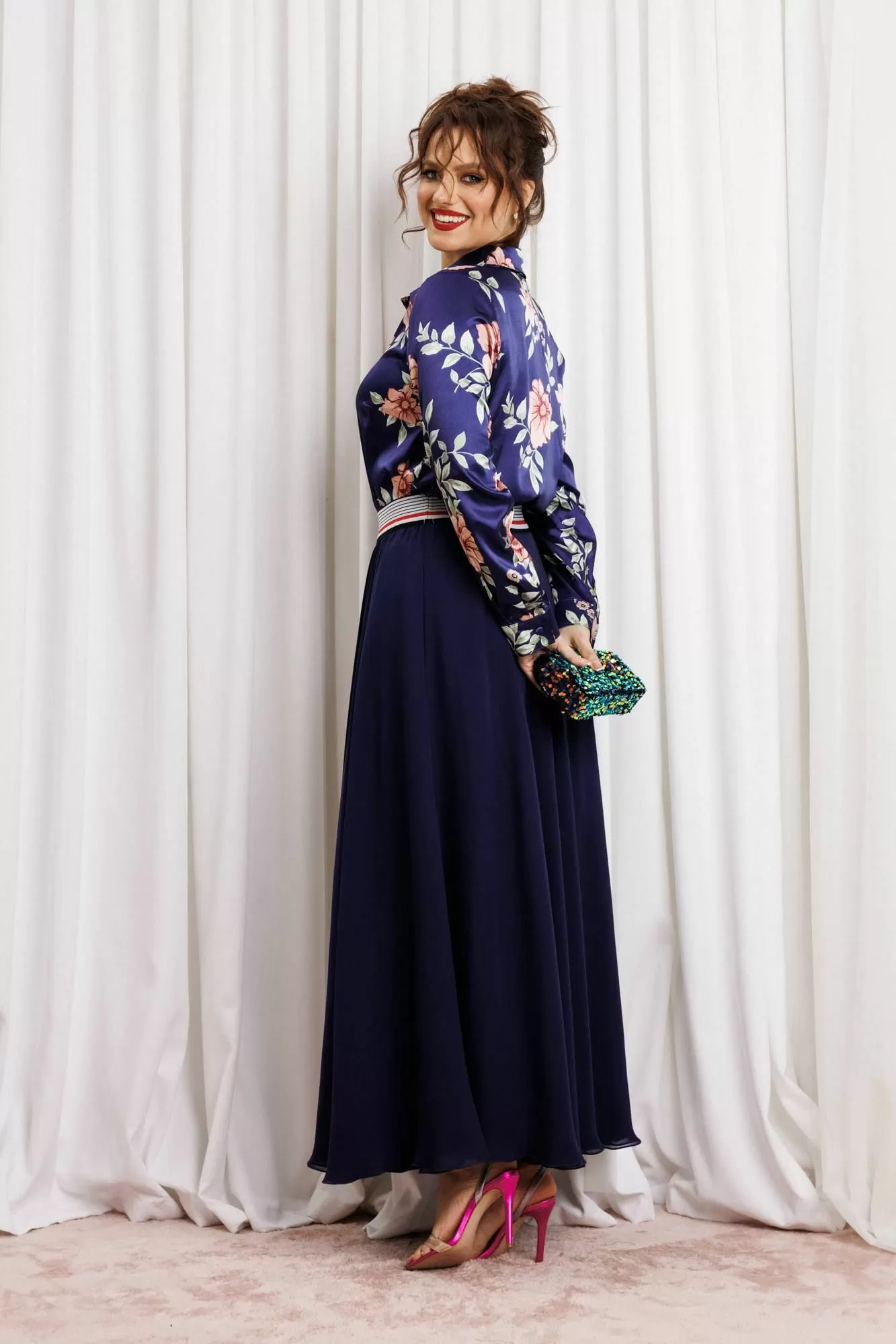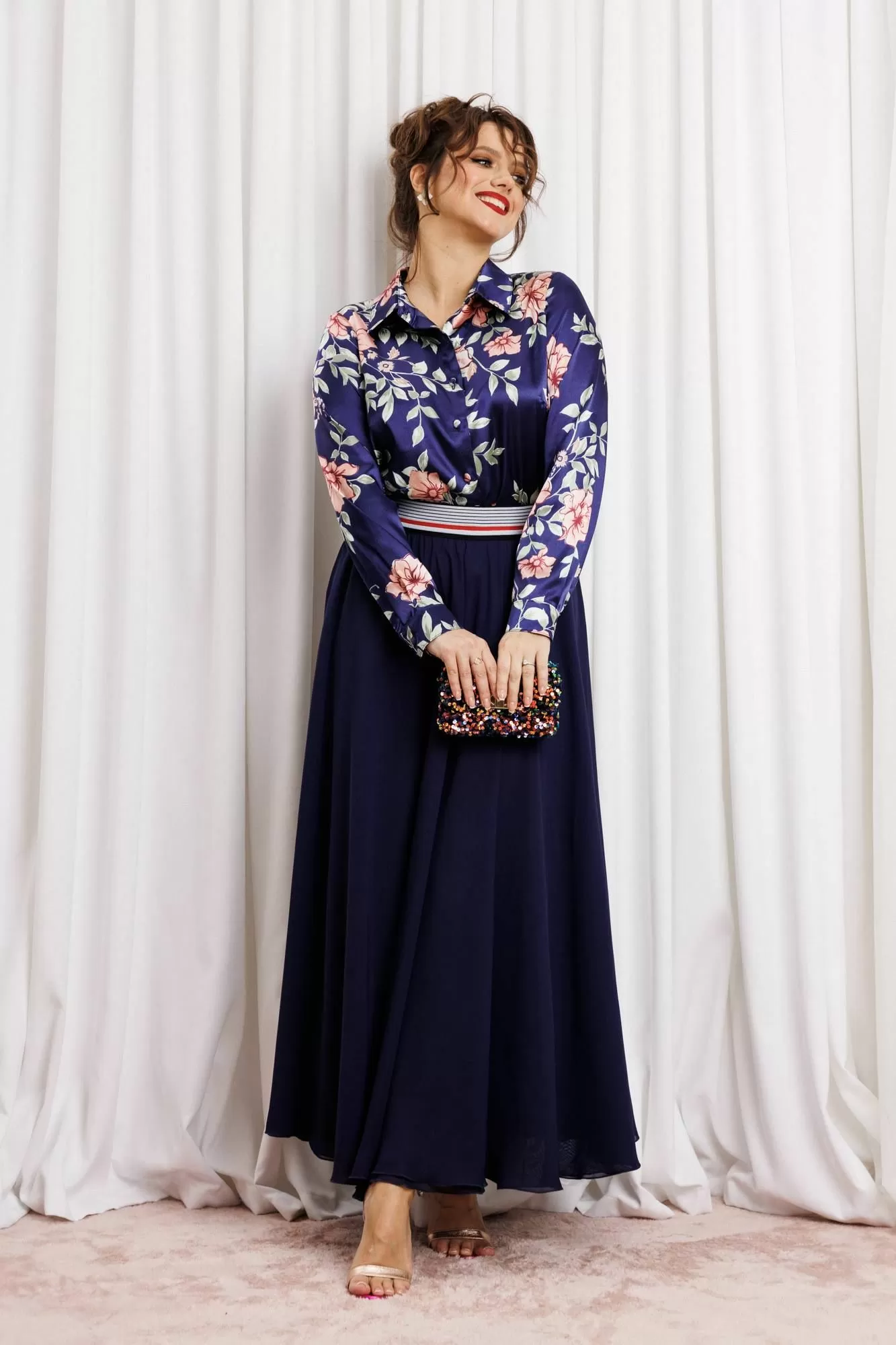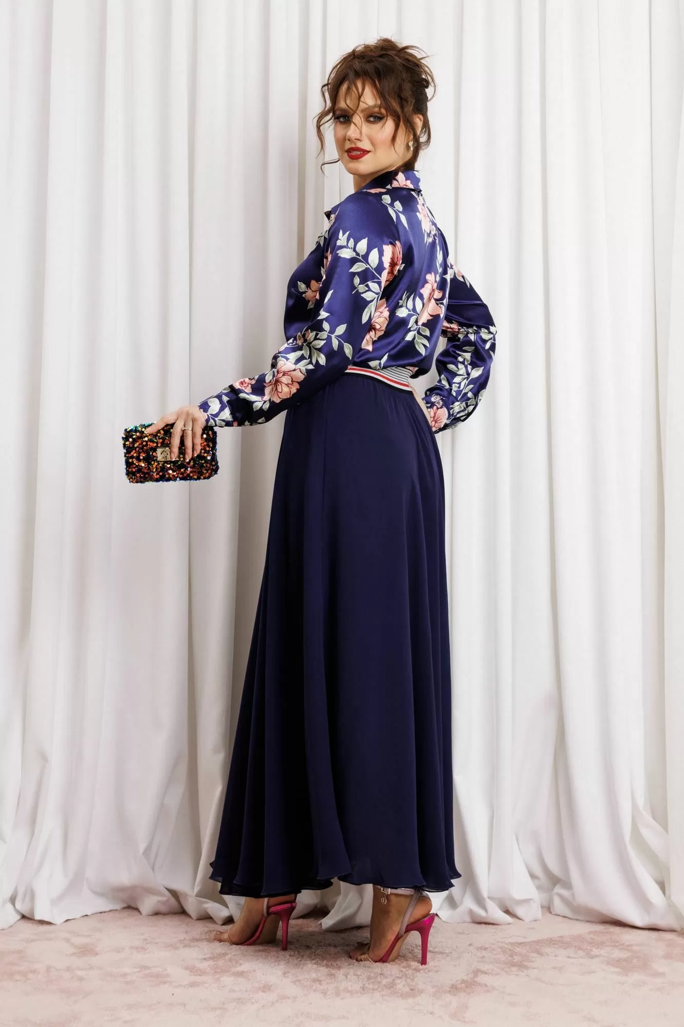Женский комплект с юбкой макси от Anastasia- для стильных и уверенных в себе женщин. Изготовленный из премиум ткани, этот комплект включает атласную блузку и юбку из двойного шифона. Комплект двойка позволяет создавать как нарядные образы для вечерних выходов, так и строгие луки для офиса. Блузка полуприлегающего силуэта, застежка на планку и пуговицы, воротник на стойке. По полочке грудовая вытачка из бокового шва. Рукав втачной, на манжете. Наша классическая блузка сшита из высококачественной английской атласной ткани, которая очень приятна к телу, не линяет и не мнется. Наша красивая блузка подойдет для беременных. Модная и стильная блузка будет актуальна в любое время года. Изделие подходит также для девушек с размером plus size. Великолепный фасон-юбка солнце длиной макси и резинкой на поясе обеспечивает идеальную посадку по фигуре, подчеркивая ваши достоинства и создавая элегантный силуэт. Сочетание оригинального модного дизайна и классического стиля делает этот комплект настоящей находкой для вашего гардероба. Части комплекта вы можете легко носить как самостоятельные изделия. Юбку леко сочетать с различными верхами: топ, блузка, футболка, кружевной жакет, свитер или жакет из тексиля- все это позволит создавать различные образы на разные случаи. Благодаря своей длине блузкой можно дополнять различные комплдекты из вашего гардеоба. Почувствуйте себя уверенно и элегантно нашем комплекте! Длина (по спинке): (48-50)-61 см., (52-56)-62 см, (58)-63 см. Длина рукава с манжетой: (48-50)-61 см., (52-56)-62 см, (58)-63 см Длинна юбки 98см.
