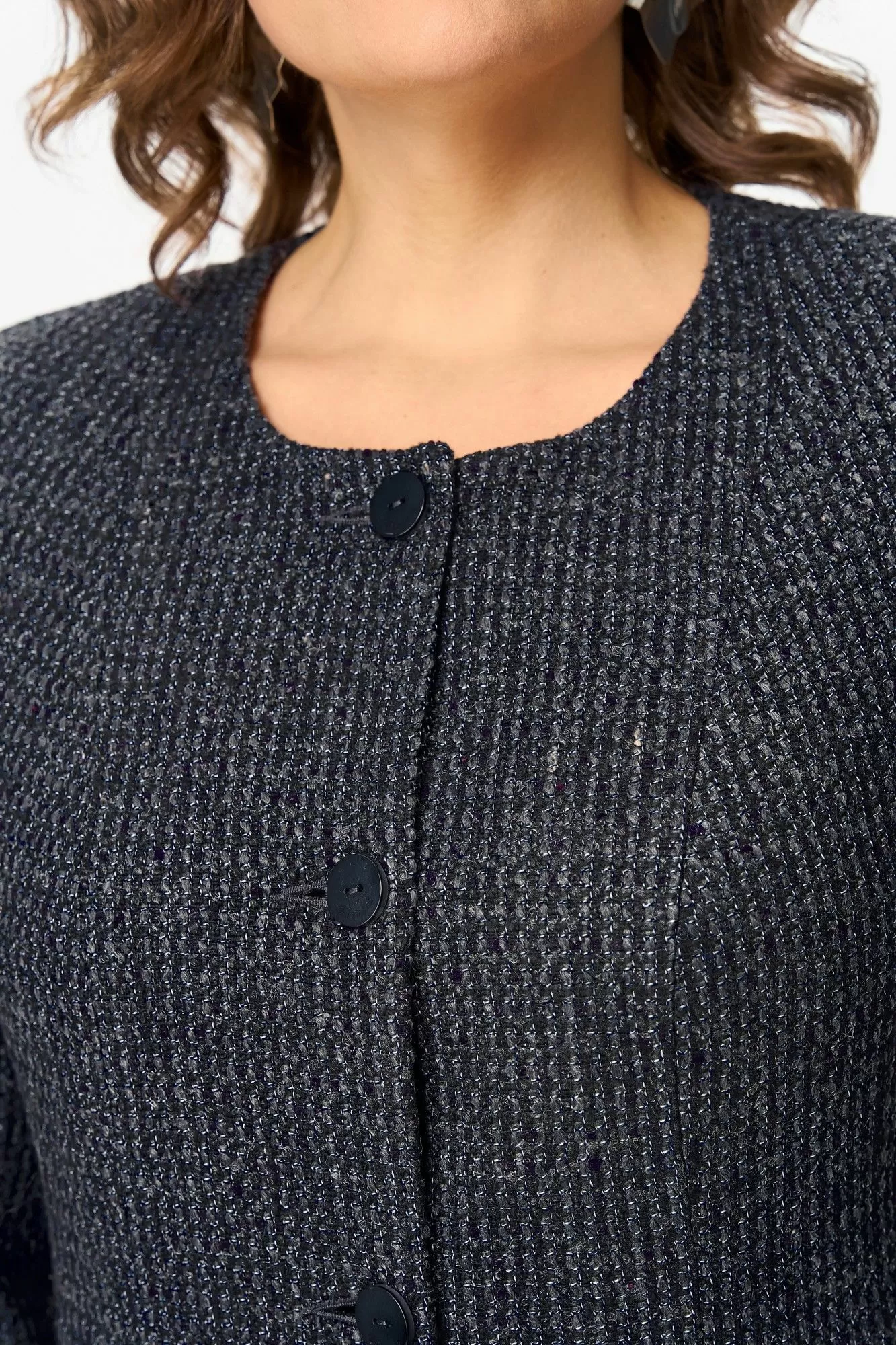 Комплект состоит из жакета и юбки. Жакет выполнен из твида, юбка из однотонной костюмной ткани.