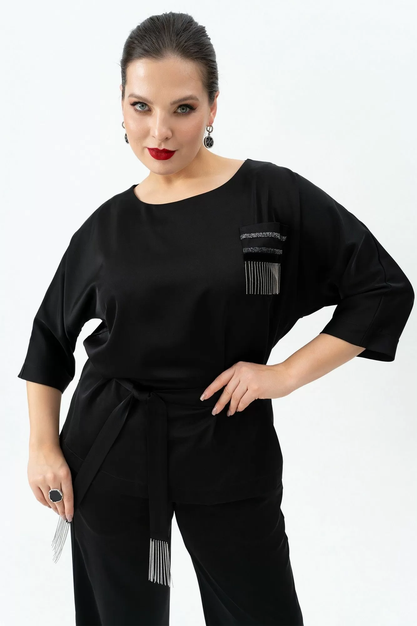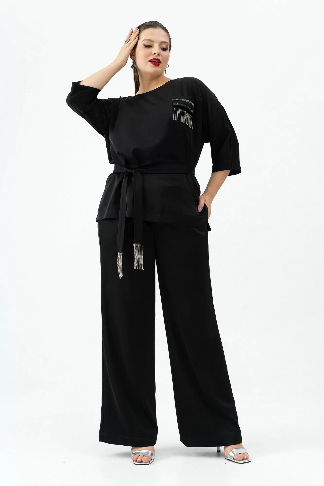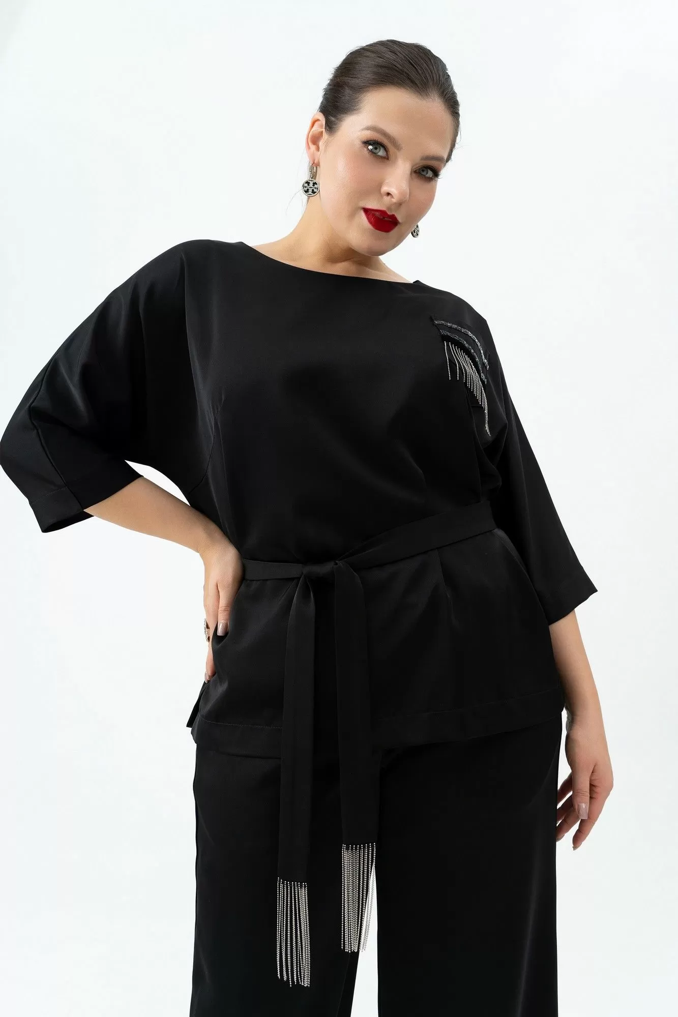 Костюм женский брючный классика для любого мероприятия. Туника прямого силуэта, с нагрудными вытачками, с декоративным карманом, с боковыми разрезами. Брюки женские прямого кроя, на притачном поясе по переду и с пояс с резинкой по спинке. Передние половинки с карманами в швах.