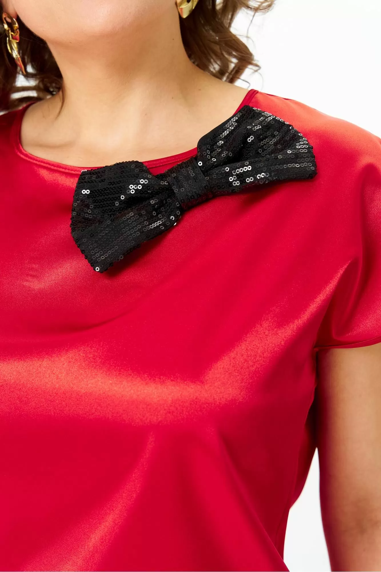 Топ со спущенной линией плеча, декорированный бантом из пайеток– это идеальный выбор для тех, кто ищет стильное и практичное решение для праздничных и офисных нарядов. Он изготовлен из яркого атласа, который обеспечивает долговечность изделию и придаёт ему изысканный блеск. Декоративный бант добавляет элегантности и праздничности образу, создаёт уникальный и запоминающийся вид, подчеркивая женственность и изысканность. Этот топ – идеальное дополнение к вашему праздничному наряду на торжественное мероприятие или для создания стильного образа на офисных встречах.