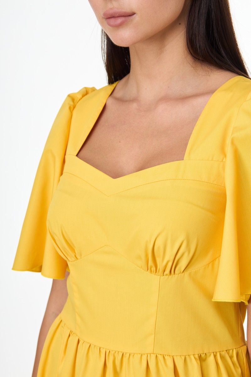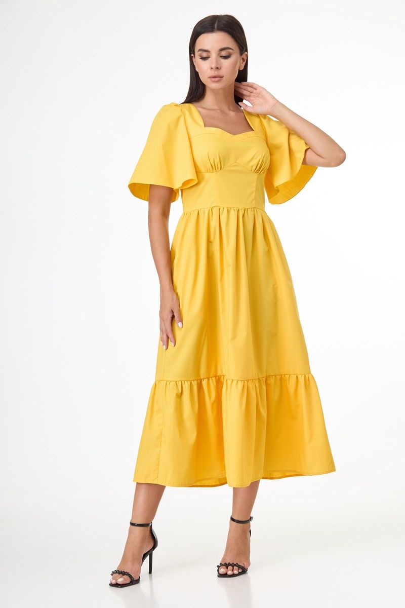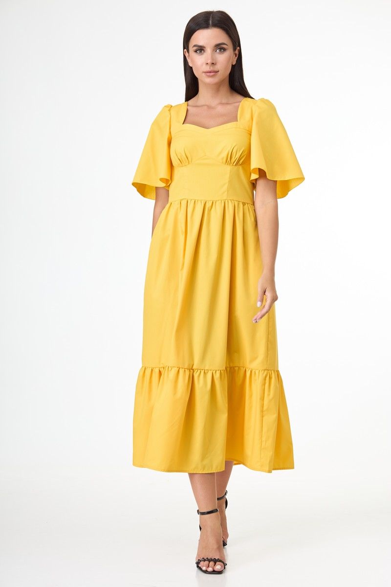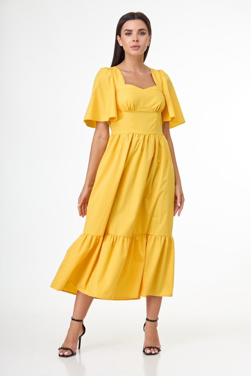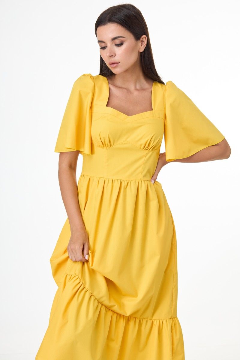 Романтичное платье из премиального хлопка создаст неповторимый образ своей обладательнице! Платье длины миди, полуприлегающего силуэта, отрезное по линии талии. Лиф платья с втачными чашками, фигурный вырез красиво подчеркивает линию декольте, по спинке выполнены рельефы. Нижняя часть платья в виде ярусов, со сборкой. Рукава крылышки имеют сборку по окату, длиной до локтя, расширены к низу Платье застегивается на потайную молнию в среднем шве . Изящный бант на спинке дополняет образ. Ткань: Хлопок 100% Замеры для каждого размера: ОГ- обхват груди; ОТ-обхват талии; ОБ-обхват бедер; ДИ-длина изделия; ДР-длина рукава. Рост фотомодели – 171 см. Размер 44. ОГ-88; ОТ-76; ОБ-100; ДР- 30 ;ДИ-106/123. Размер 46. ОГ-92; ОТ-80; ОБ-104; ДР-30 ;ДИ-107/124. Размер 48. ОГ-96; ОТ-84; ОБ-108; ДР-31 ;ДИ-108/125.