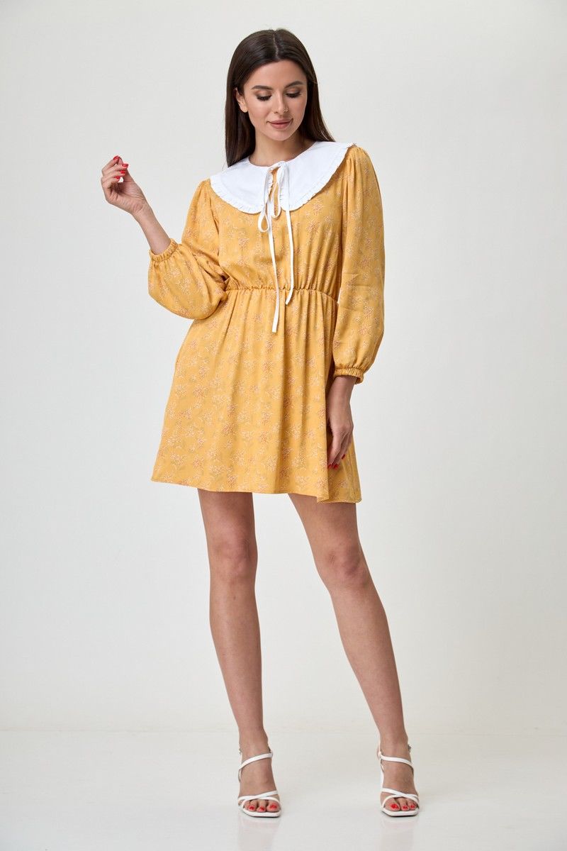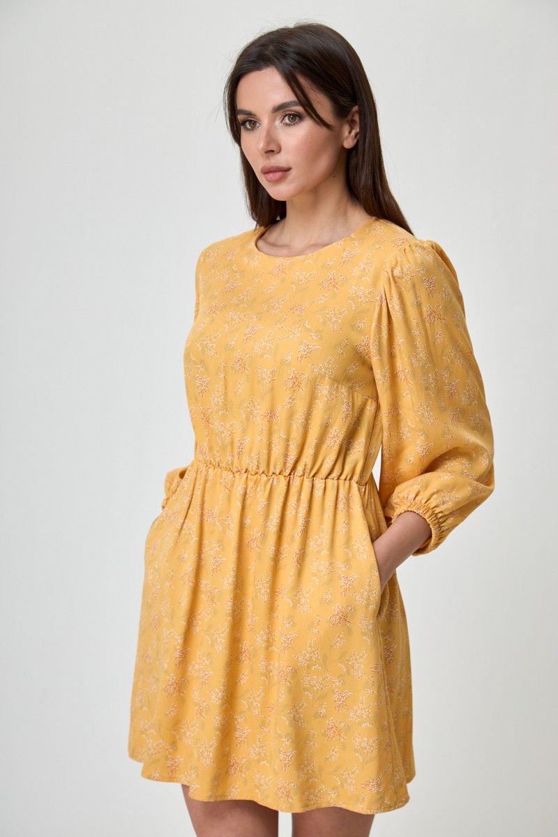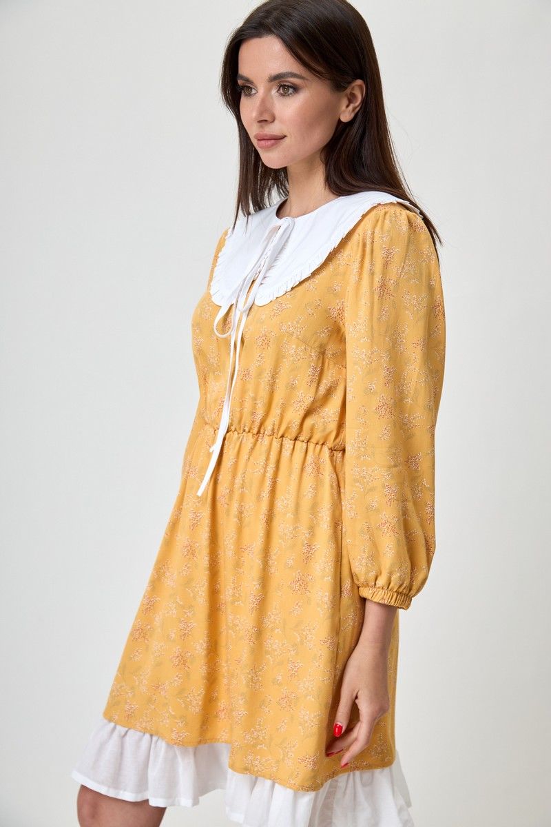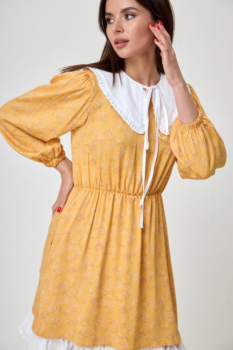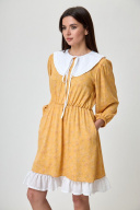 Платье женское свободного кроя, округлая горловина, длина до колена. Рукав 3/4, со сборкой по окату и низ на резинке. По линии талии резинка. На спинке глазок, на петле пуговице. Платье благодаря цвету и принту дышит женственность и лёгкостью, актуально и стильно. Благодаря съемному воротнику и подъюбнику можно создавать нежнейший образ. Купив его вы ни разу не пожалеете о своём выборе. Вся необходимая информация о производителе указана на этикетке. Замеры: Рост фотомодели при сьемке - 170 см. Размер фотомодели - 50. ОГ- обхват груди; ОТ-обхват талии (резинка собрана/растянута); Об-обхват бедер; ДИ-длина изделия; ДР-длина рукава. Размер 42. ОТ-84; ОТ-46/76; ОБ-92; ДИ-81; ДР-52 Размер 44. ОТ-88; ОТ-50/80; ОБ-96; ДИ-82; ДР-53 Размер 46. ОТ-92; ОТ-54/84; ОБ-100; ДИ-83; ДР-54 Размер 48. ОТ-96; ОТ-58/88; ОБ-104; ДИ-84; ДР-54 Размер 50. ОТ-100; ОТ-62/92; ОБ-108; ДИ-84; ДР-54 Размер 52. ОТ-104; ОТ-66/96; ОБ-112; ДИ-84; ДР-54
