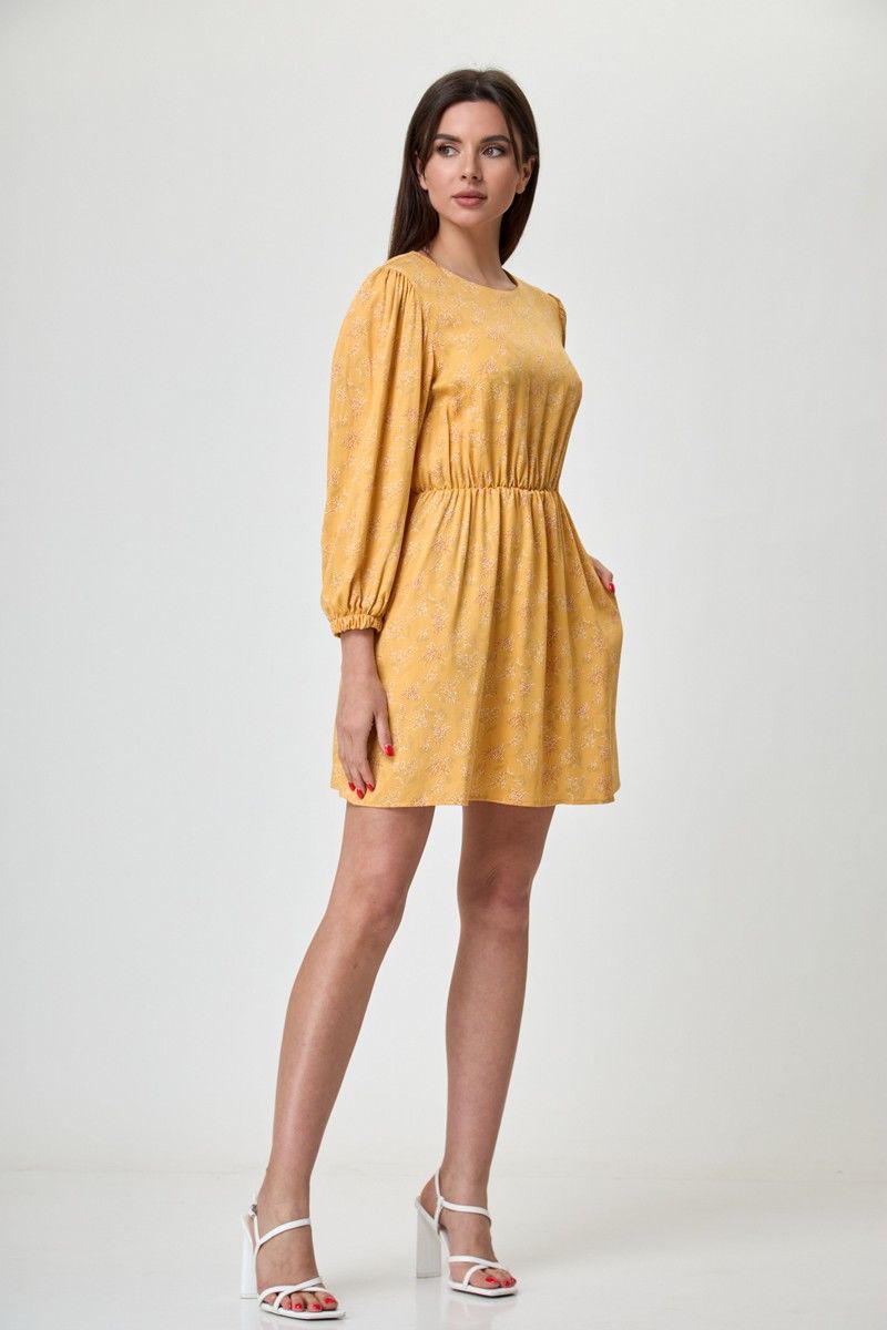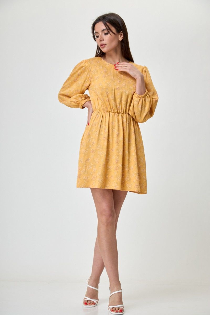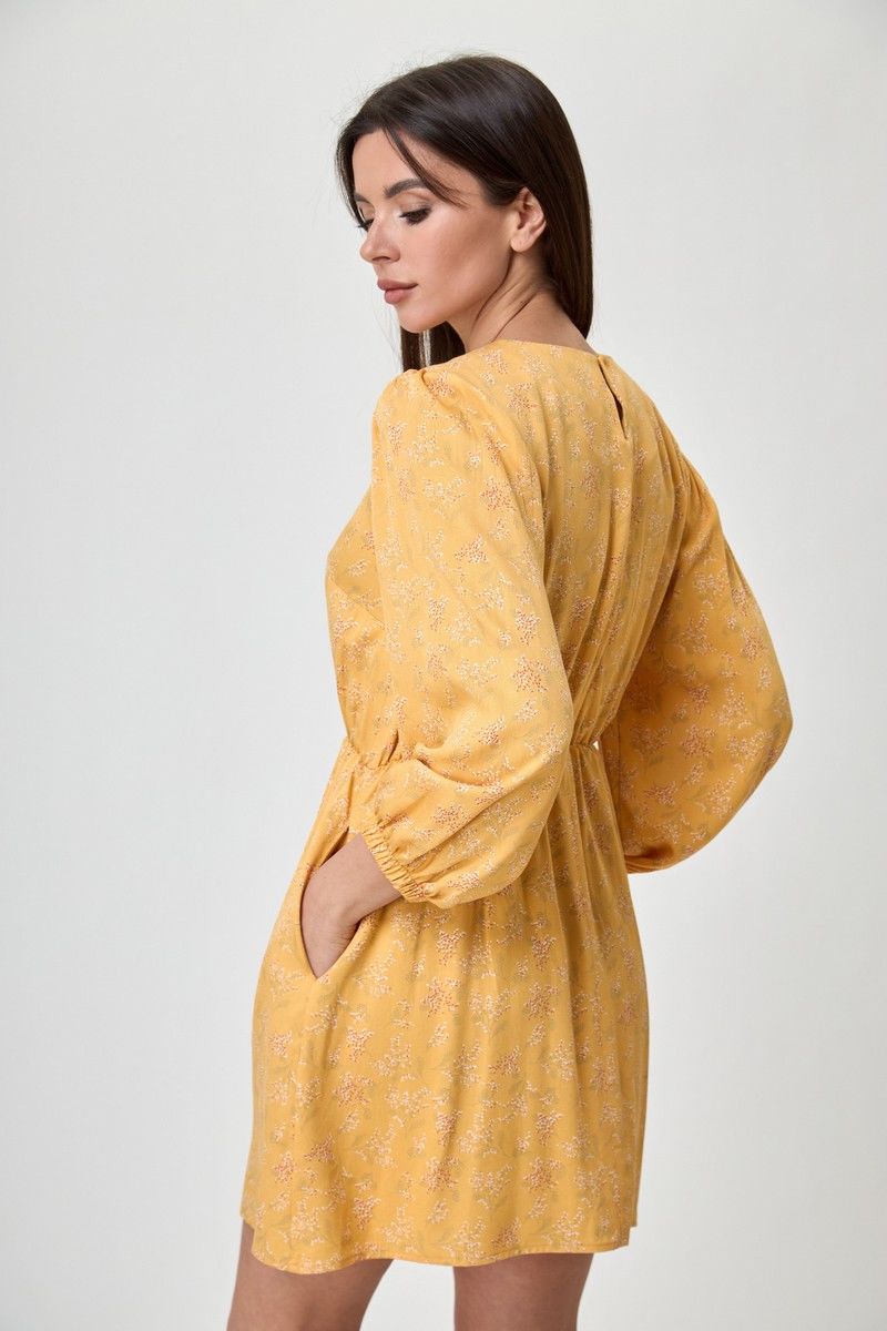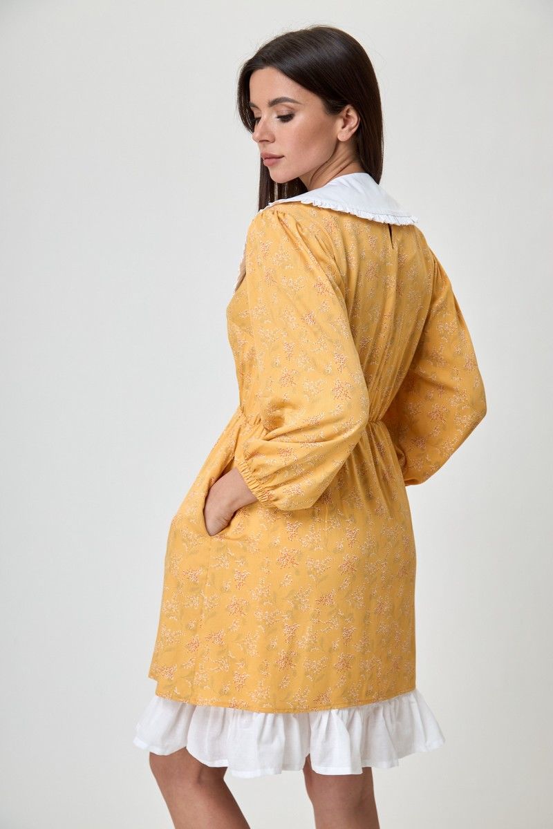 Платье женское свободного кроя, округлая горловина, длина до колена. Рукав 3/4, со сборкой по окату и низ на резинке. По линии талии резинка. На спинке глазок, на петле пуговице. Платье благодаря цвету и принту дышит женственность и лёгкостью, актуально и стильно. Благодаря съемному воротнику и подъюбнику можно создавать нежнейший образ. Купив его вы ни разу не пожалеете о своём выборе. Вся необходимая информация о производителе указана на этикетке. Замеры: Рост фотомодели при сьемке - 170 см. Размер фотомодели - 50. ОГ- обхват груди; ОТ-обхват талии (резинка собрана/растянута); Об-обхват бедер; ДИ-длина изделия; ДР-длина рукава. Размер 42. ОТ-84; ОТ-46/76; ОБ-92; ДИ-81; ДР-52 Размер 44. ОТ-88; ОТ-50/80; ОБ-96; ДИ-82; ДР-53 Размер 46. ОТ-92; ОТ-54/84; ОБ-100; ДИ-83; ДР-54 Размер 48. ОТ-96; ОТ-58/88; ОБ-104; ДИ-84; ДР-54 Размер 50. ОТ-100; ОТ-62/92; ОБ-108; ДИ-84; ДР-54 Размер 52. ОТ-104; ОТ-66/96; ОБ-112; ДИ-84; ДР-54