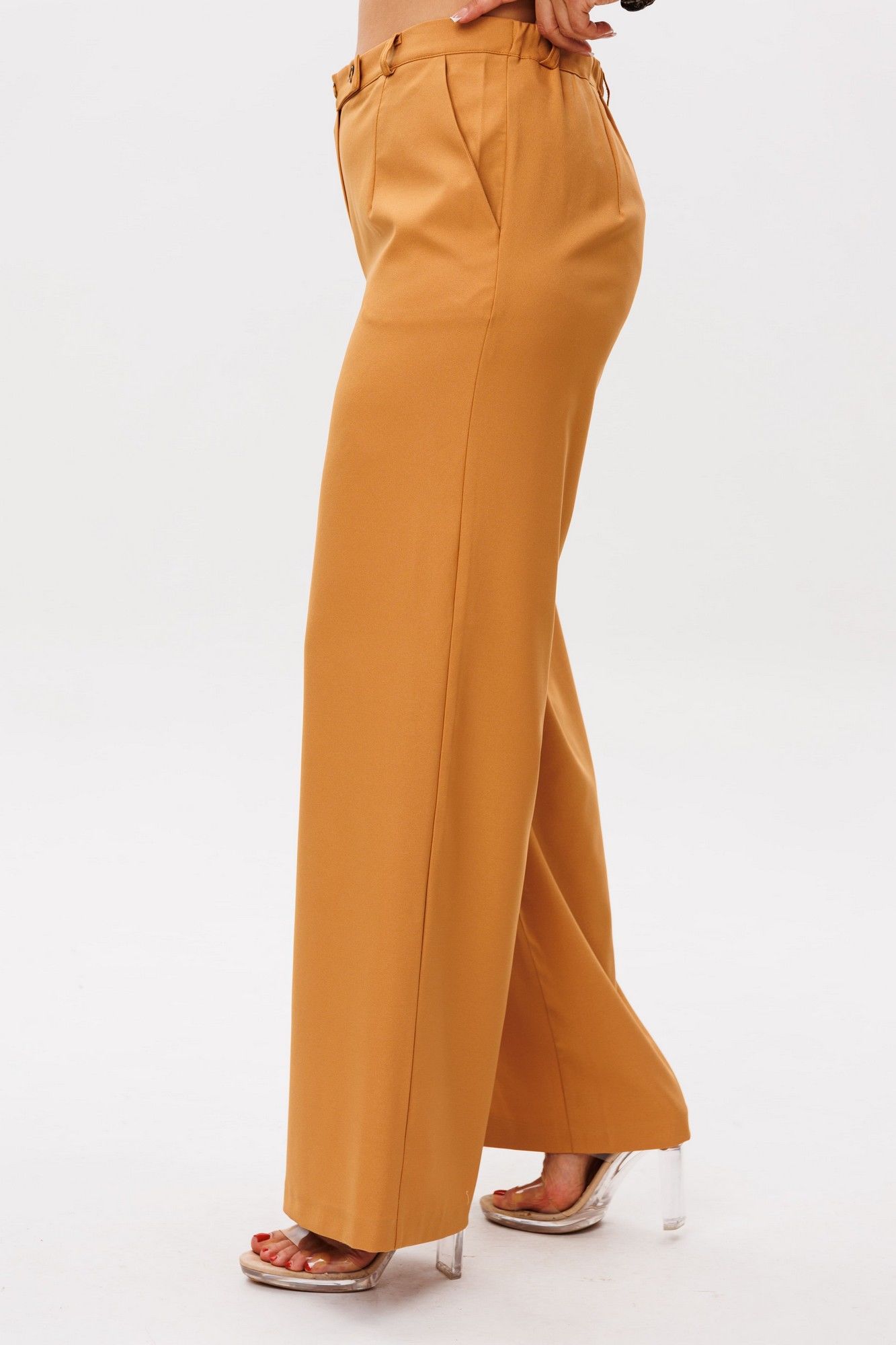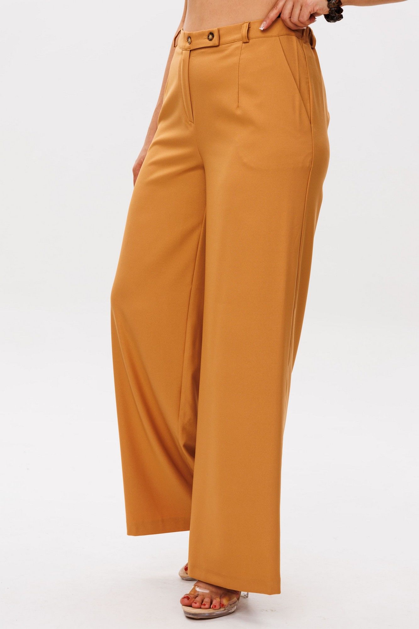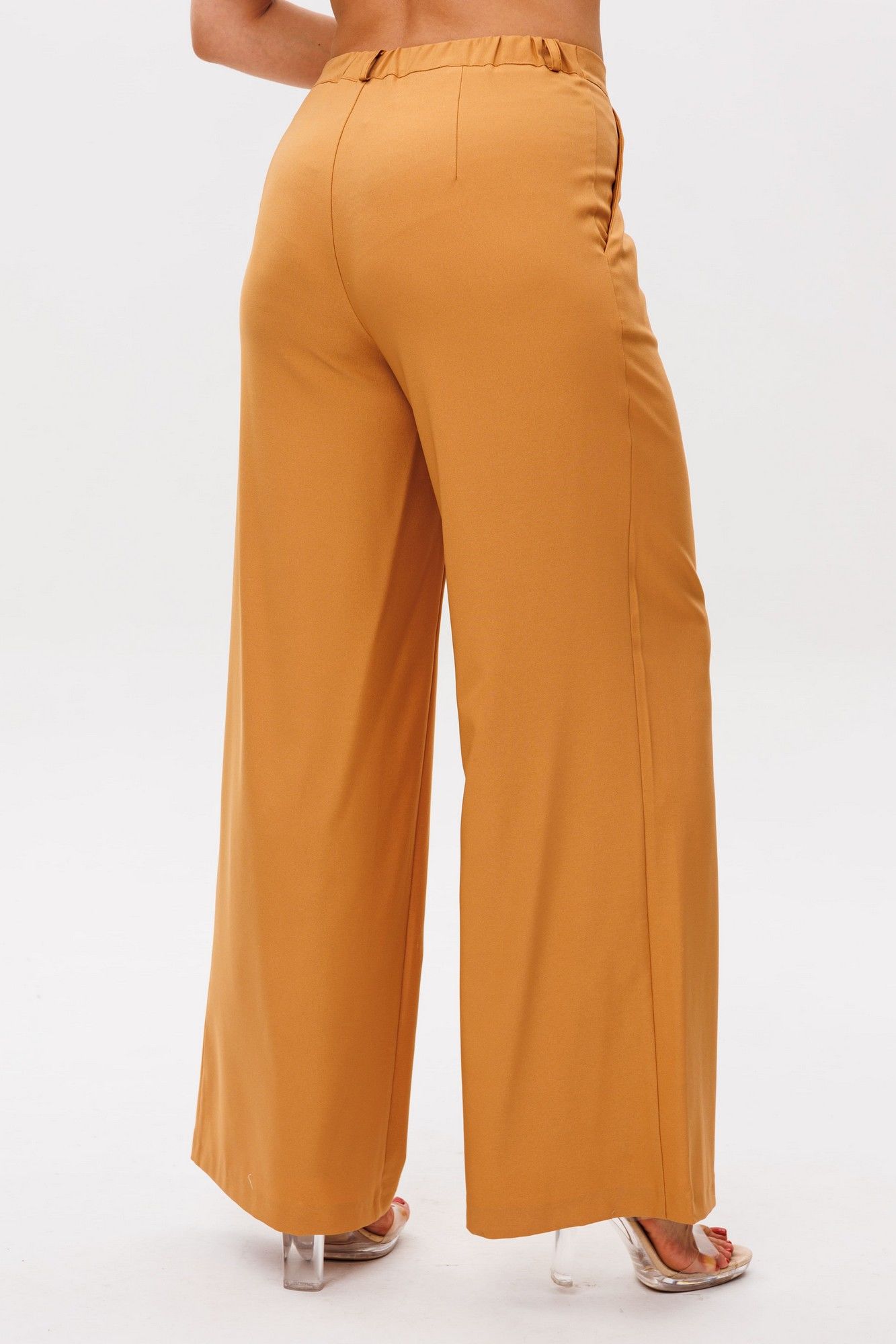Брюки от Анелли имеют насыщенный «янтарно-жёлтый» оттенок, который наполняет образ теплом и энергией. Благородный цвет, напоминающий спелые мёдные соты, притягивает взгляды, превращая простой силуэт в настоящее стилевое заявление. Высокая посадка мягко подчёркивает талию, создавая женственный силуэт, а идеально прямые удлинённые штанины струятся по ноге, даря фигуре изящество и стройность. Тонкие вытачки по переду и спинке повторяют естественные изгибы тела, подчёркивая безупречность кроя. Невидимая резинка по спинке пояса обеспечивает комфорт, сохраняя при этом элегантность силуэта. Классическая застёжка с пуговицей добавляет ноту строгой эстетики, напоминая о лучших традициях классического кроя. Эти брюки станут драгоценным аккордом в вашем гардеробе – они одинаково прекрасно сочетаются с хрустящей белой рубашкой для офиса 1203, с нежным кремовым свитером для прогулки или с атласным топом для вечернего выхода. Вы ощутите ту особенную уверенность, которую дарит идеально сидящая вещь премиального качества. Это не просто брюки – это воплощение солнечного настроения и безупречного вкуса. Замеры (резинка растянута): Размер 46: ОТ-82; ОБ-98; ДИ-107; ширина по низу - 56; Размер 48: ОТ-86; ОБ-102; ДИ-107; ширина по низу - 58; Размер 50: ОТ-90; ОБ-106; ДИ-108; ширина по низу - 60; Размер 52: ОТ-94; ОБ-110; ДИ-108; ширина по низу - 62; Размер 54: ОТ-98; ОБ-114; ДИ-108; ширина по низу - 64; Размер 56: ОТ-102; ОБ-118; ДИ-108; ширина по низу - 66; Размер 58: ОТ-104; ОБ-122; ДИ-108; ширина по низу - 66;
