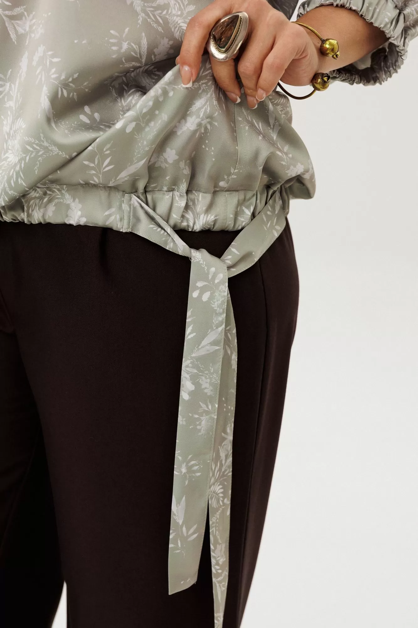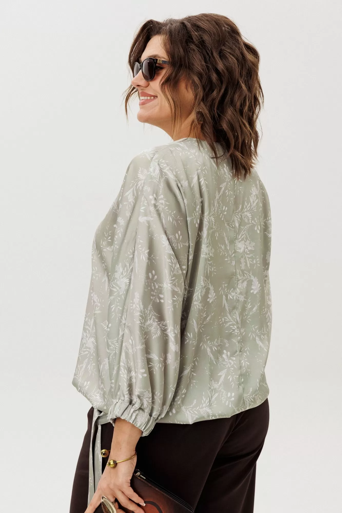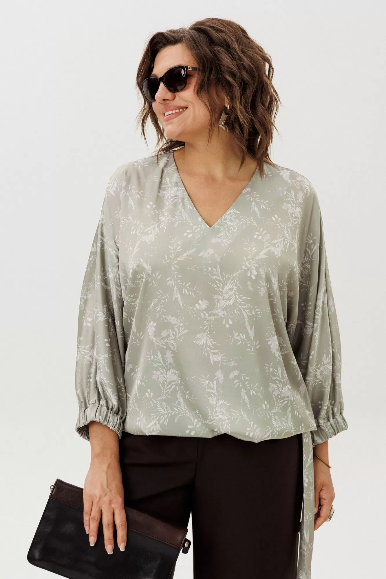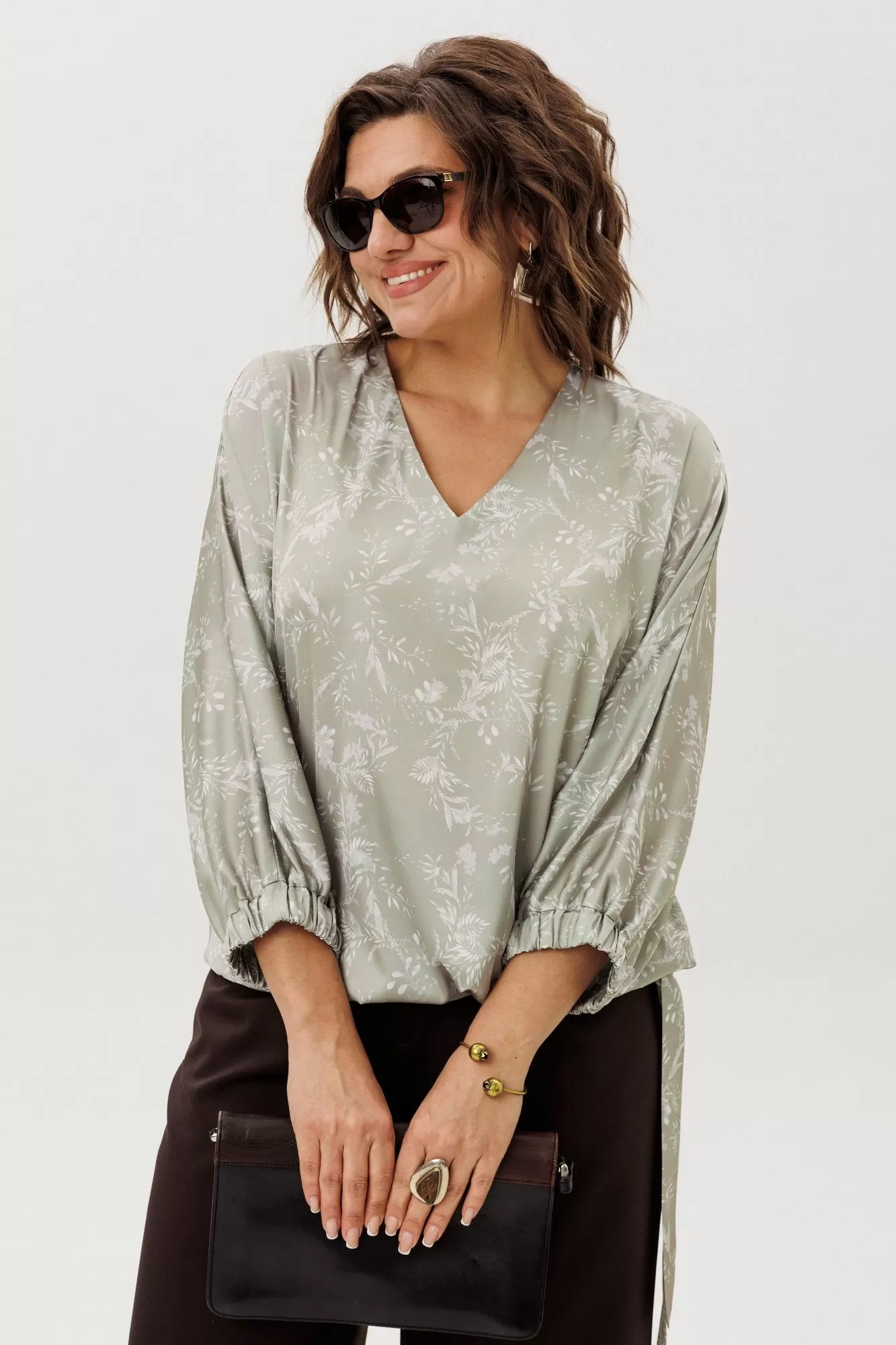 Особую динамику и индивидуальность блузе придают детали: цельнокроеные рукава три четверти подчёркивают целостность и плавность линий, а притачной пояс и манжеты, собранные в нежную сборку благодаря эластичной резинке, создают выразительный контраст с текучестью основной ткани. Эта умная конструкция позволяет вам самостоятельно регулировать длину блузы, творчески преобразуя её силуэт — от парящего и расслабленного до более собранного и чёткого.