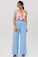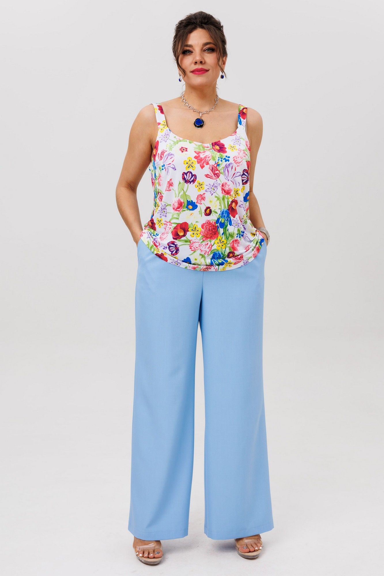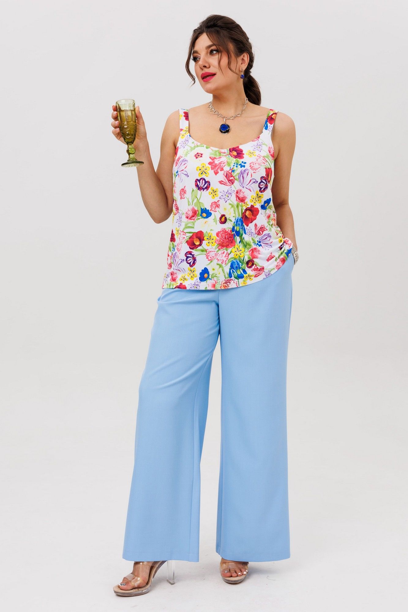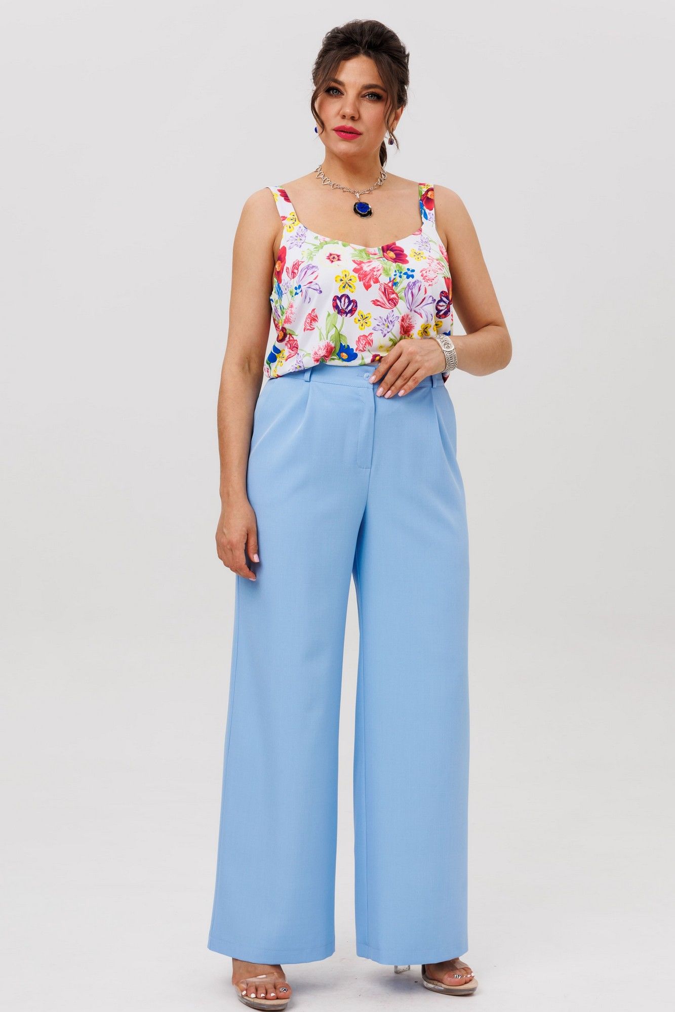 Брюки палаццо – это воплощение элегантности и безупречного стиля. Широкие, струящиеся силуэты, мягко ниспадающие от талии, создают эффект роскошного движения с каждым шагом. Идеальная посадка достигнута за счет эластичной резинки по спинке, которая мягко облегает фигуру, подчеркивая линию талии и обеспечивая комфорт в течение всего дня. Широкие штанины визуально удлиняют ноги, добавляя образу женственности и грации. Функциональность встречает стиль - два аккуратных кармана не только добавляют удобства, но и придают брюкам современный, слегка бунтарский шарм. Ткань высшего качества мягко обволакивает тело, сохраняя форму и безупречный вид даже при активном движении. Эти брюки в нежном цвете «голубая гортензия» станут вашим незаменимым выбором как для повседневных образов, так и для особых случаев. Они могут быть стильно сочетаемыми с топами, блузами и обувью разных стилей, подчеркивая вашу индивидуальность и женственность. На модели цветочный топ 1855. Размер 52: ОТ (резинка растянута) - 90; ОБ-116; ДИ-109; ширина по низу - 64; Размер 54: ОТ (резинка растянута) - 94; ОБ-120; ДИ-109; ширина по низу - 64; Размер 56: ОТ (резинка растянута) - 98; ОБ-124; ДИ-109; ширина по низу - 66; Размер 58: ОТ (резинка растянута) - 102; ОБ-128; ДИ-109; ширина по низу - 66; Размер 60: ОТ (резинка растянута) - 106; ОБ-132; ДИ-109; ширина по низу - 66; Размер 62: ОТ (резинка растянута) - 112; ОБ-138; ДИ-109; ширина по низу - 66; Размер 64: ОТ (резинка растянута) - 118; ОБ-140; ДИ-109; ширина по низу - 68.