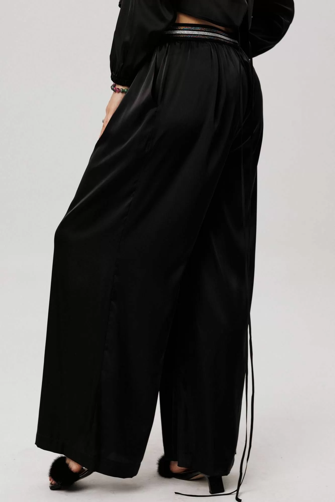 Легкие и струящиеся брюки, сотканные из изысканного арманийского шелка, дарят ощущение невесомой роскоши. Их высокая посадка и мягкие моделирующие защипы у талии создают безупречный, подчеркнуто элегантный силуэт. Свободный, расширяющийся к низу крой обеспечивает невероятную легкость движения и формирует динамичный образ.