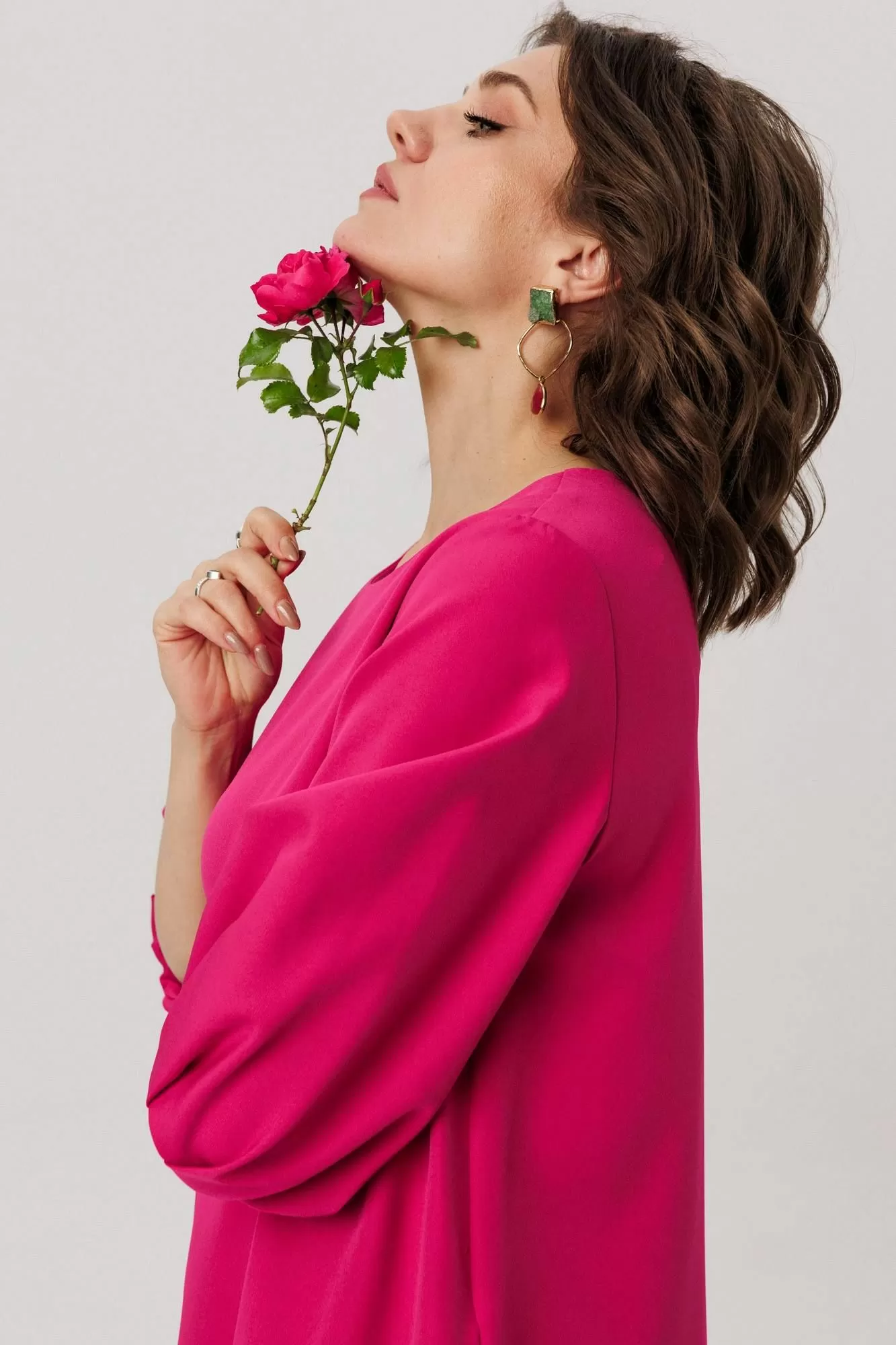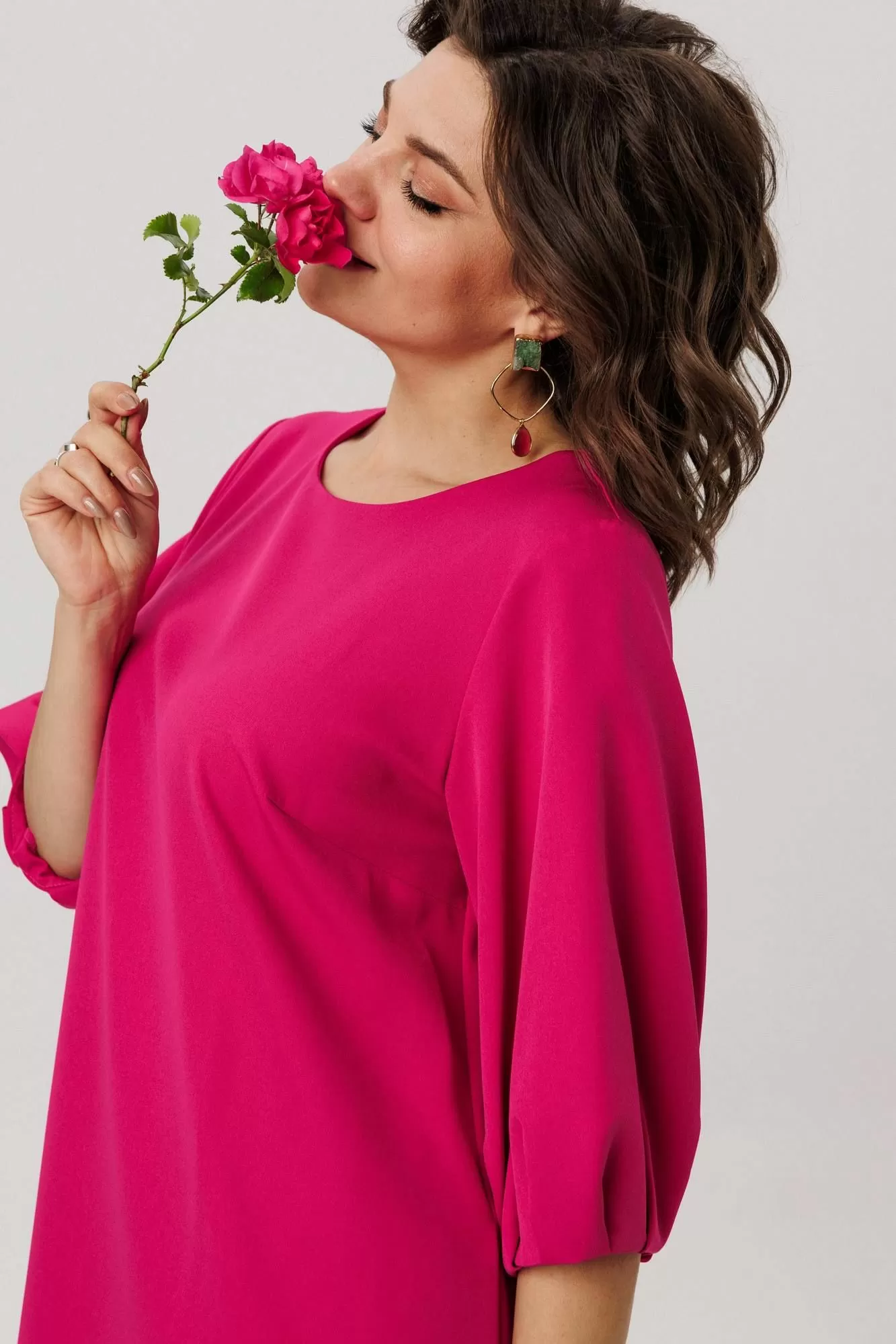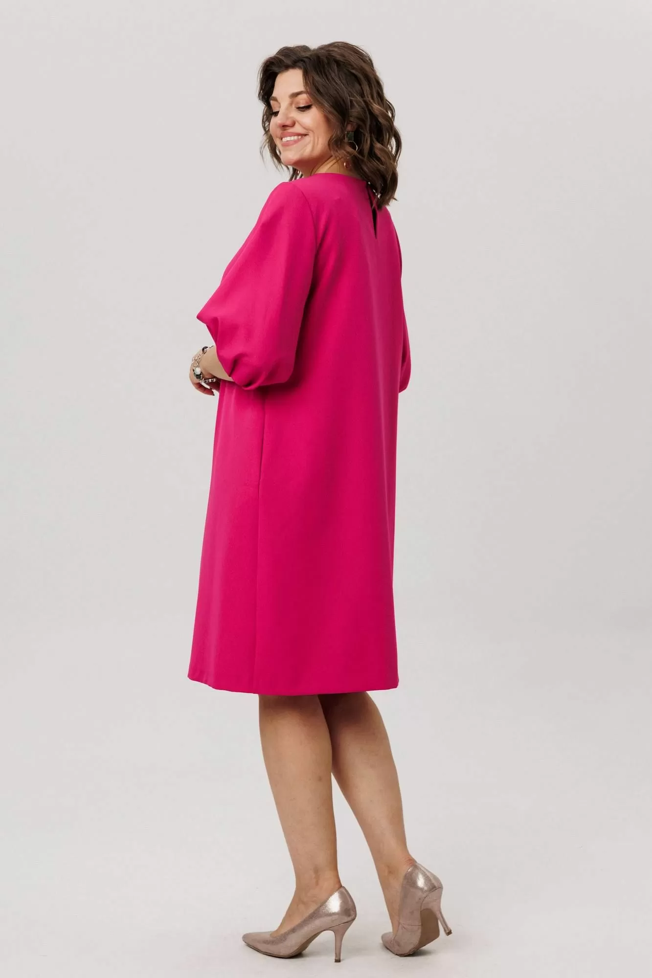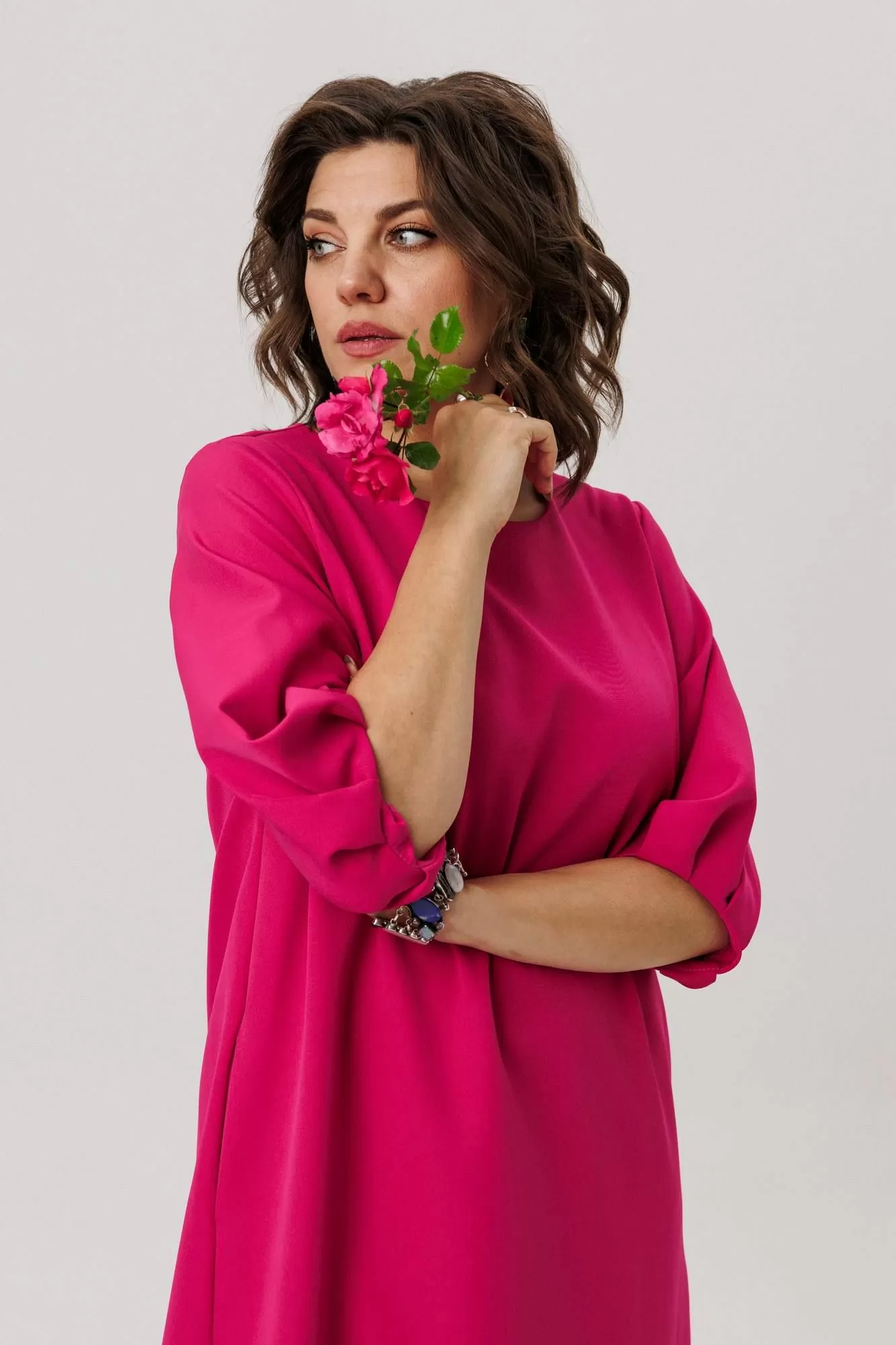 Мягкий рукав платья украшен у запястья изящной сборкой, придающей образу лёгкость и утончённость. Идеальная длина, прикрывающая колени, создана для повседневного комфорта, сохраняя при этом элегантность силуэта.