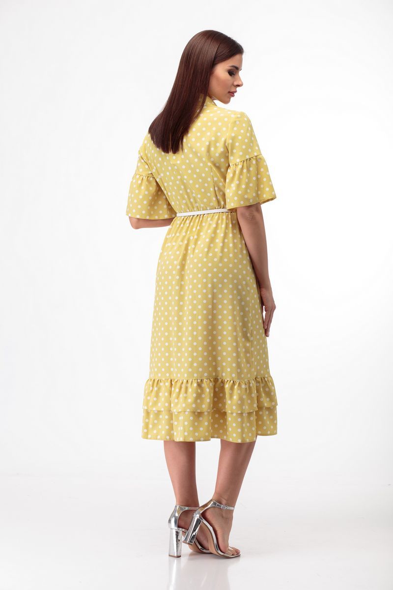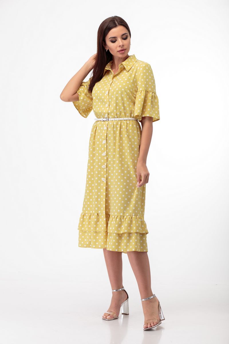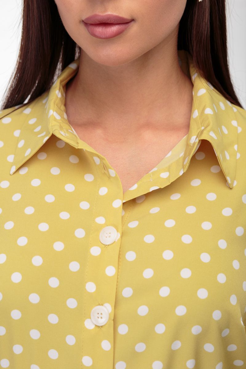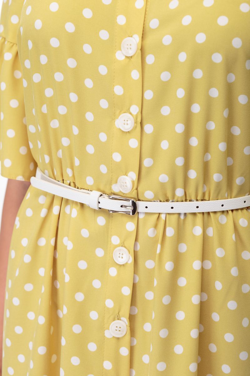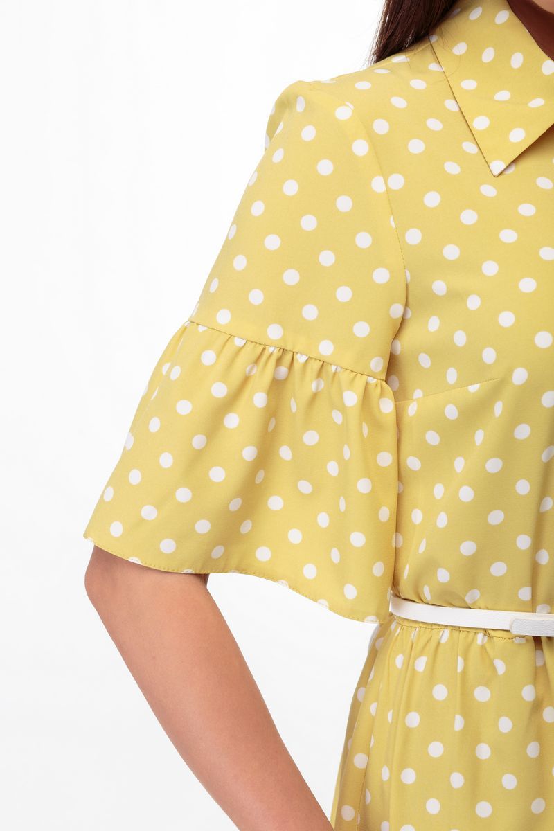 Платье из легкой ткани с принтом в горошек-хит сезона! Элегантно и актуально всегда и везде! Минималистичный образ с роскошными в своей продуманности деталями. Полуприлегающий силуэт, отрезное по линии талии, нагрудные вытачки втачные рукава с воланом. Отложной воротник на стойке. Функциональная застежка по планке на пуговицы по всей длине. Воланы по низу платья. Съёмный пояс на пряжке в комплекте. Рост фотомодели – 172 см. Размер фотомодели – 44 ОГ- обхват груди; ОТ-обхват талии (резинка в присобрана/растянута); ОБ-обхват бедер; ДИ-длина изделия; ДР-длина рукава. Размер 42. ОГ-92; ОТ-72/90; ОБ-110; ДИ-114; ДР-31. Размер 44. ОГ-96; ОТ-74/92; ОБ-116; ДИ-114; ДР-31. Размер 46. ОГ-100; ОТ-78/94; ОБ-120; ДИ-114; ДР-31. Размер 48. ОГ-104; ОТ-80/96; ОБ-124; ДИ-114; ДР-31. Размер 50. ОГ-108; ОТ-82/98; ОБ-128; ДИ-115; ДР-32. Размер 52. ОГ-112; ОТ-84/100; ОБ-132; ДИ-115; ДР-32.