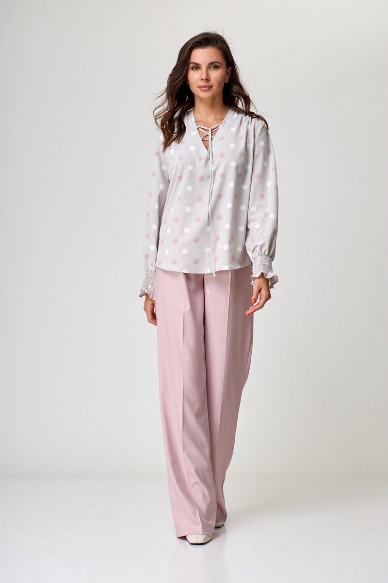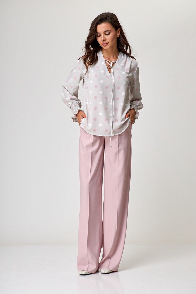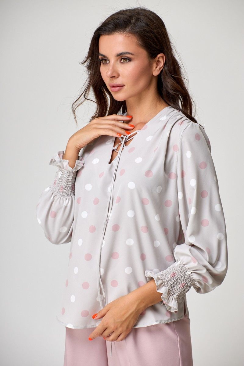 Легкая и порхающая как бабочка - так себя почувствует любая девушка в новой женской блузе от бренда Анелли! Женская блуза прямого свободного силуэта средней длины из нежной блузочной ткани с принтом. На передней части выполнена сборка по плечевым швам, V образный вырез горловины украшен шнуровкой. Рукава втачные длинные, свободного объема, на широкой эластичной манжете с воланом. Линия низа асимметрична. Спинка слегка удлинена относительно переда, закругленной формы, дополнена небольшими разрезами в боковых швах. Прекрасно сочетается с брюками и юбками. При съемке в образе использованы брюки женские бренда Анелли - 1296. Блуза выполнена в нескольких палитрах цветов. При помощи обуви, брюк, юбок, бижутерии можно создать разные образы для различных поводов. Блуза украсит вас и ваш гардероб. Вся необходимая информация о производителе указана на этикетке. Цвет на фото может отличаться от цвета изделия вживую из-за разницы освещения и цветопередачи экранов, на которых просматривается изображение. Будем благодарны за ваш отзыв. Это поможет улучшить качество наших изделий. Замеры: Рост фотомодели – 170 см. Размер фотомодели – 44. ОГ-обхват груди; ОТ-обхват талии; ОБ-обхват бедер; ДИ-длина изделия; ДР-длина. Размер 42 ОГ- 96; ОТ-96; ОБ -96; ДИ-66; ДР–60 Размер 44 ОГ- 100; ОТ-100; ОБ -100; ДИ-66; ДР–60 Размер 46 ОГ- 104; ОТ-104; ОБ -104; ДИ-66; ДР–60 Размер 48 ОГ- 108; ОТ-108; ОБ -108; ДИ-67; ДР–61 Размер 50 ОГ- 112; ОТ-112; ОБ -112; ДИ-67; ДР–61 Размер 52 ОГ- 116; ОТ-116; ОБ -116; ДИ-67; ДР–61