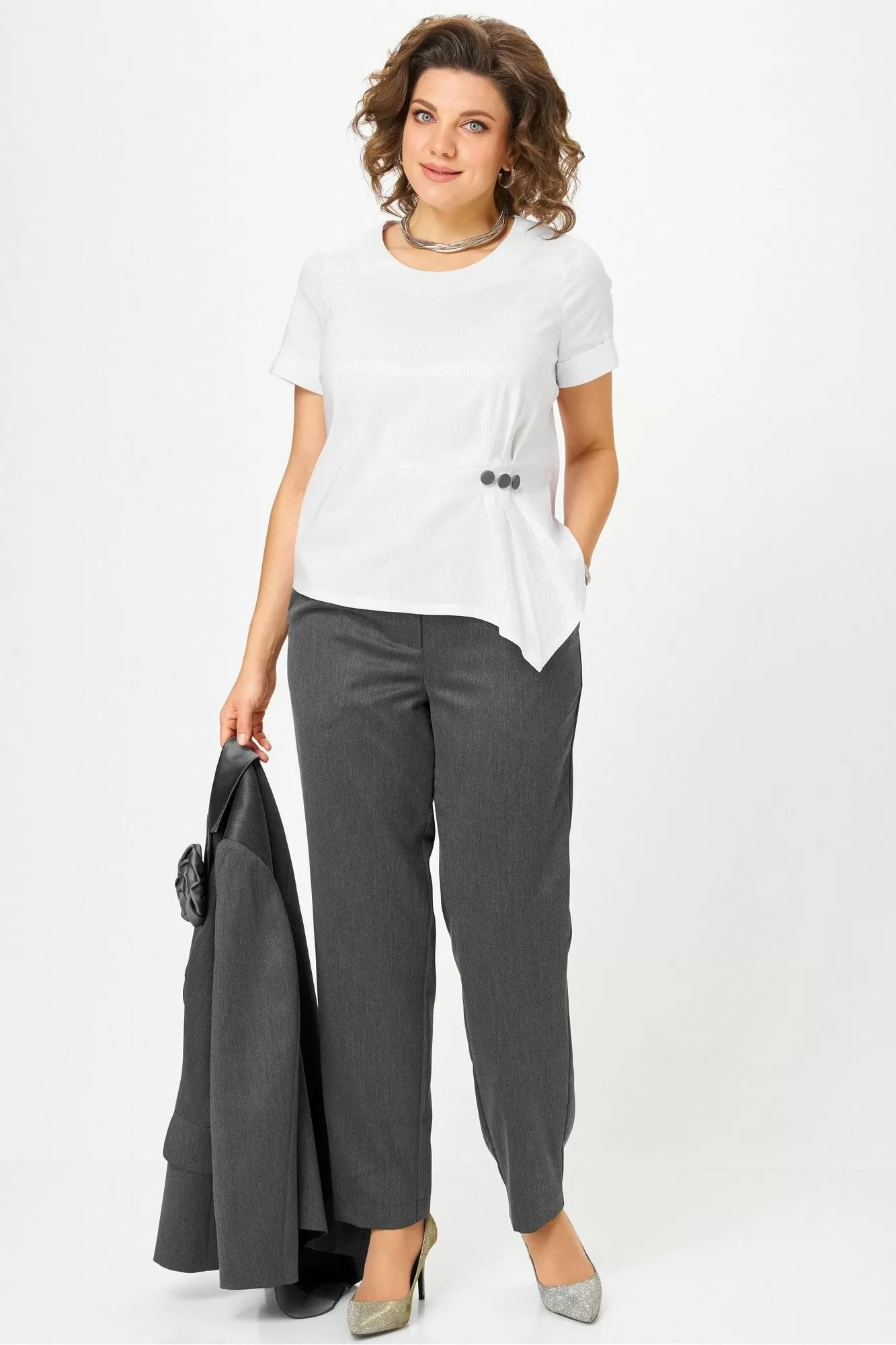 Классический комплект-тройка, состоящий из жакета, блузки и брюк, подчеркнет Вашу элегантность и женственность. Съемная брошь в виде цветка поможет в создании различных образов.