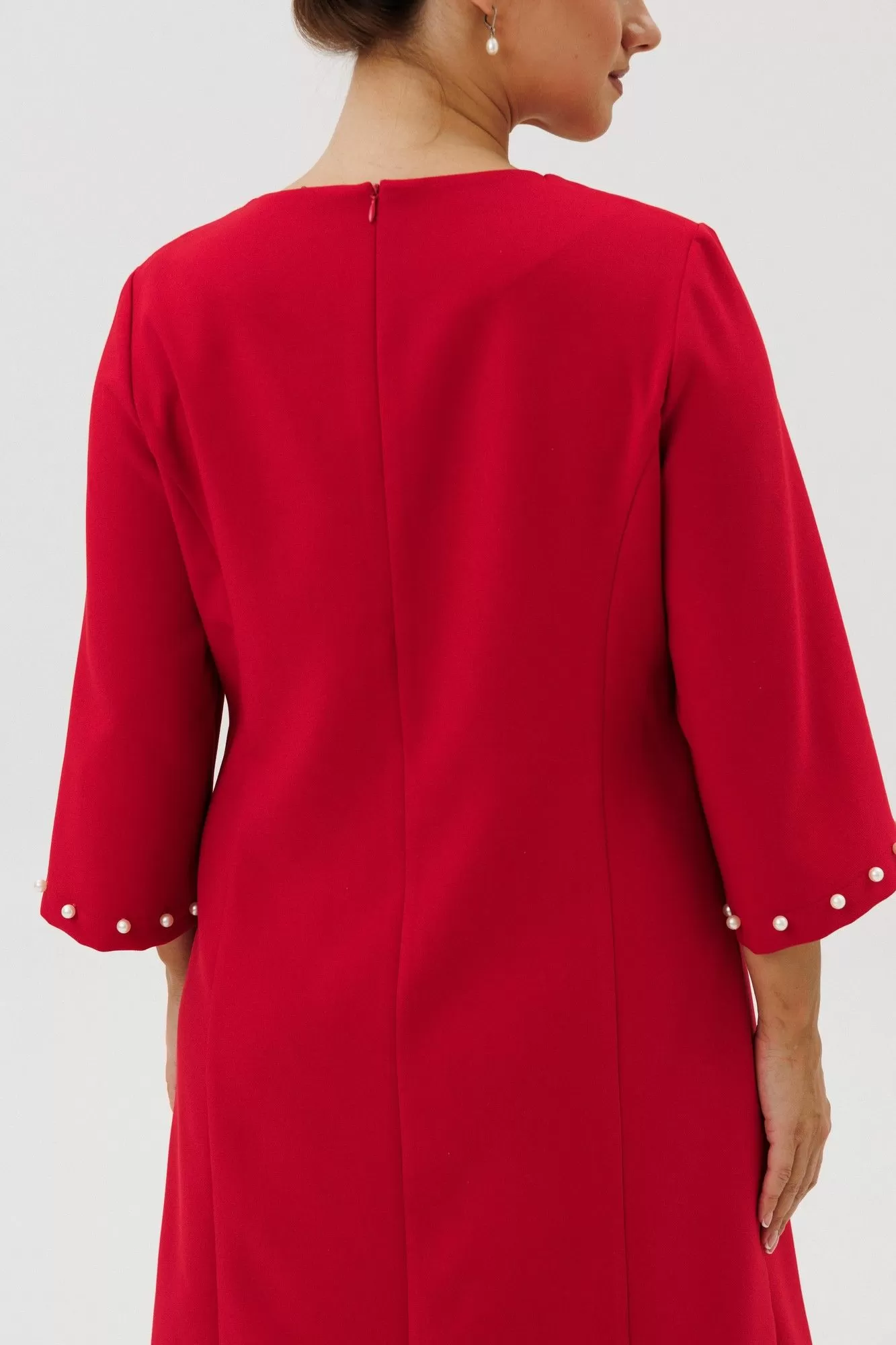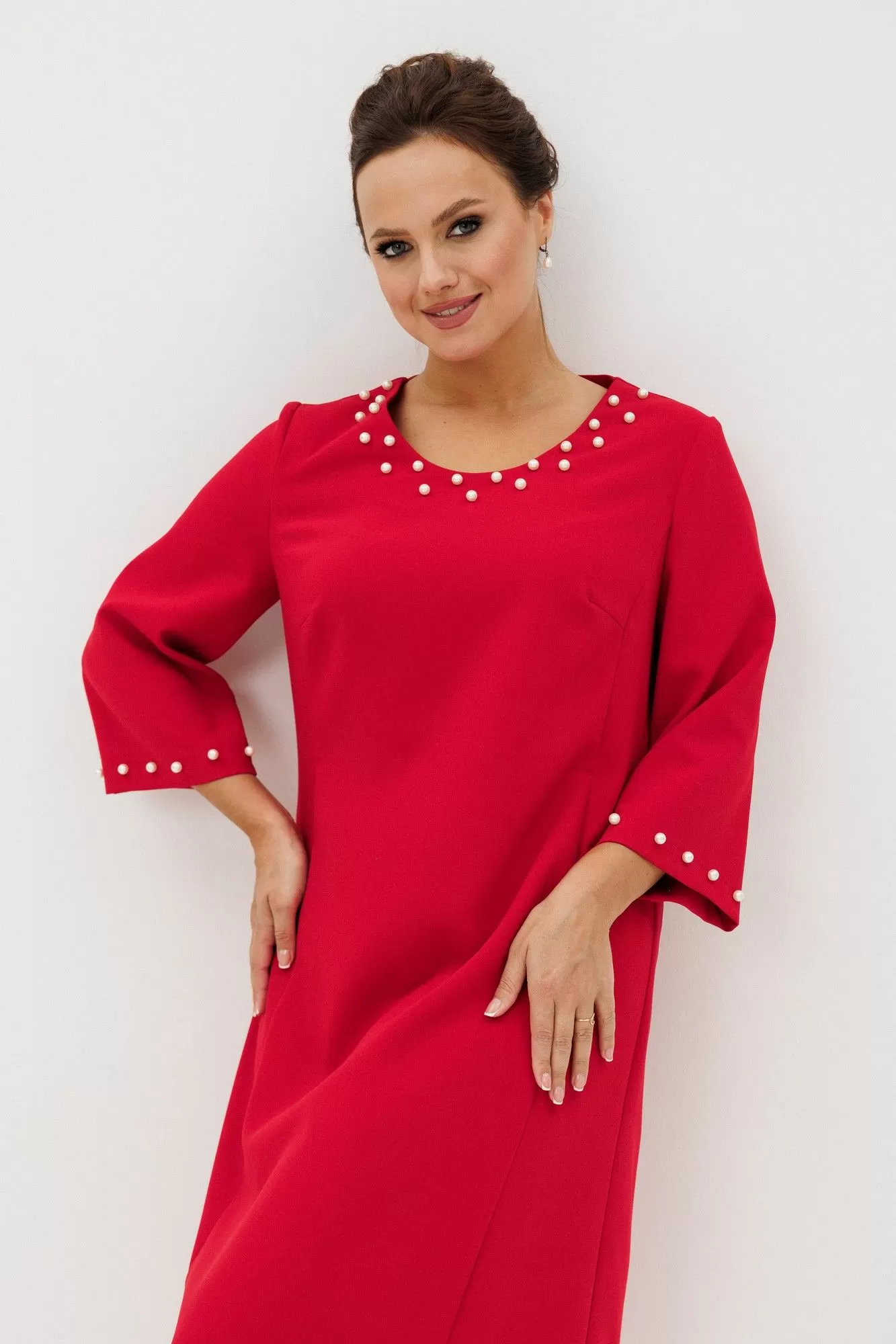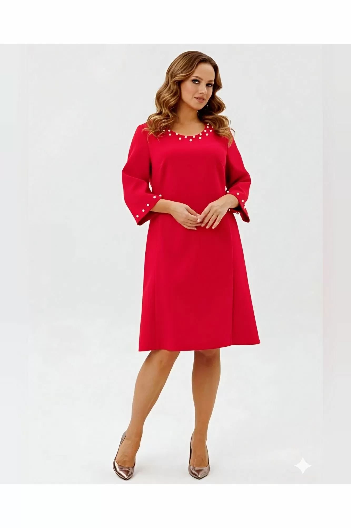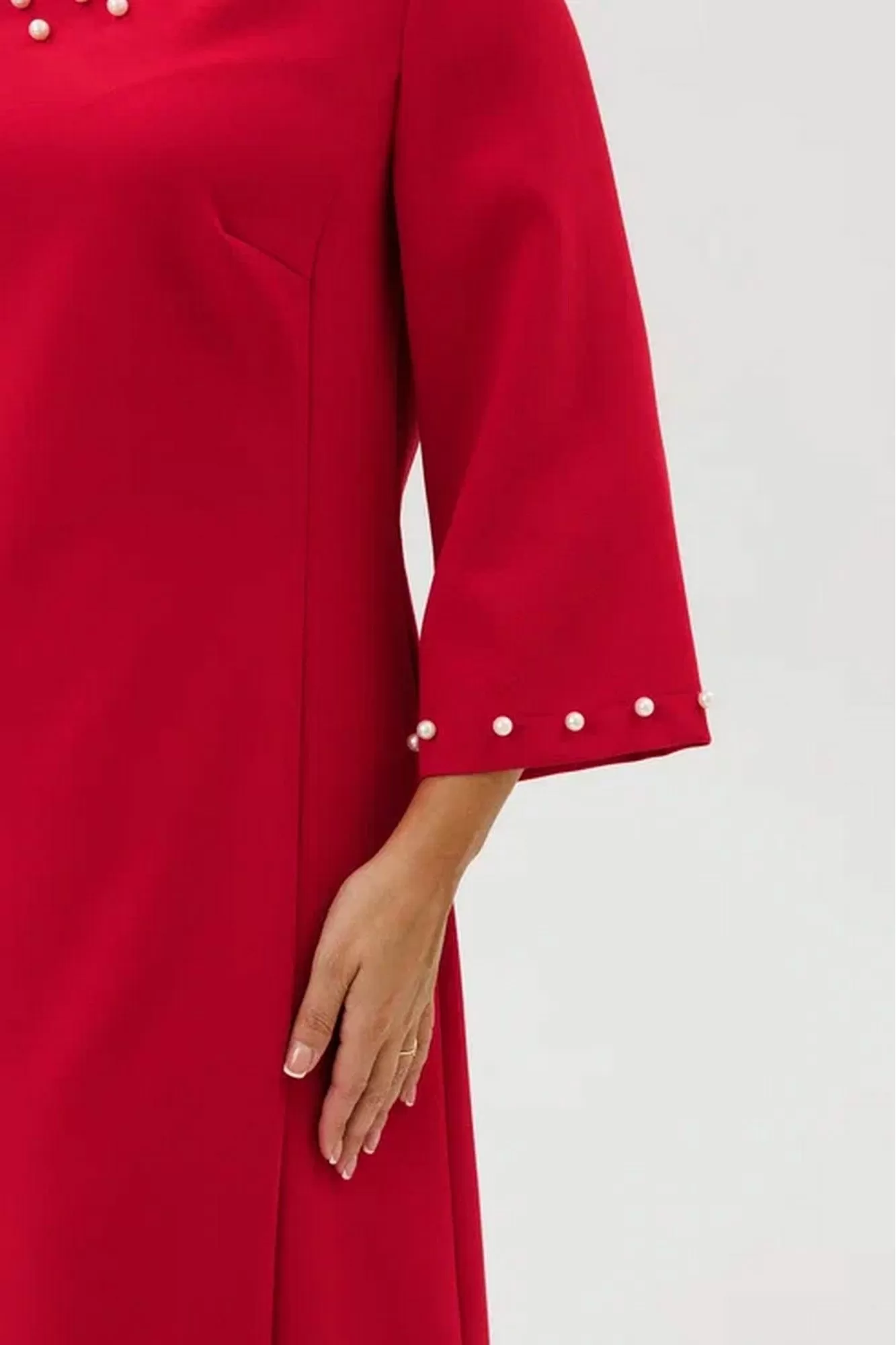 Платье на каждый день из костюмной ткани прямого силуэта умеренного объема. Вырез горловины округлый, по спинке застежка на потайную молнию, рукав 3/4 рубашечного покроя - 47см. Длина платья по спинке 97 см. Рост модели на фото 170см.
