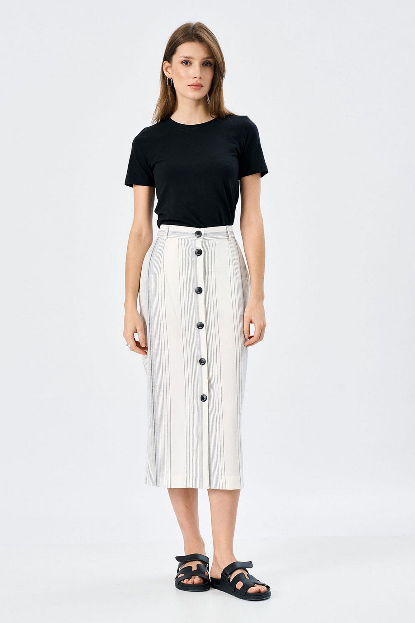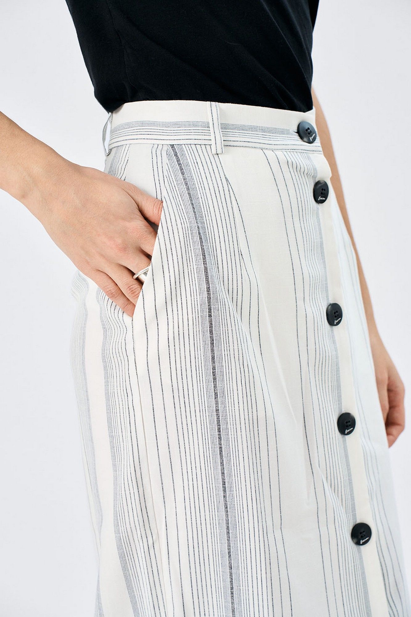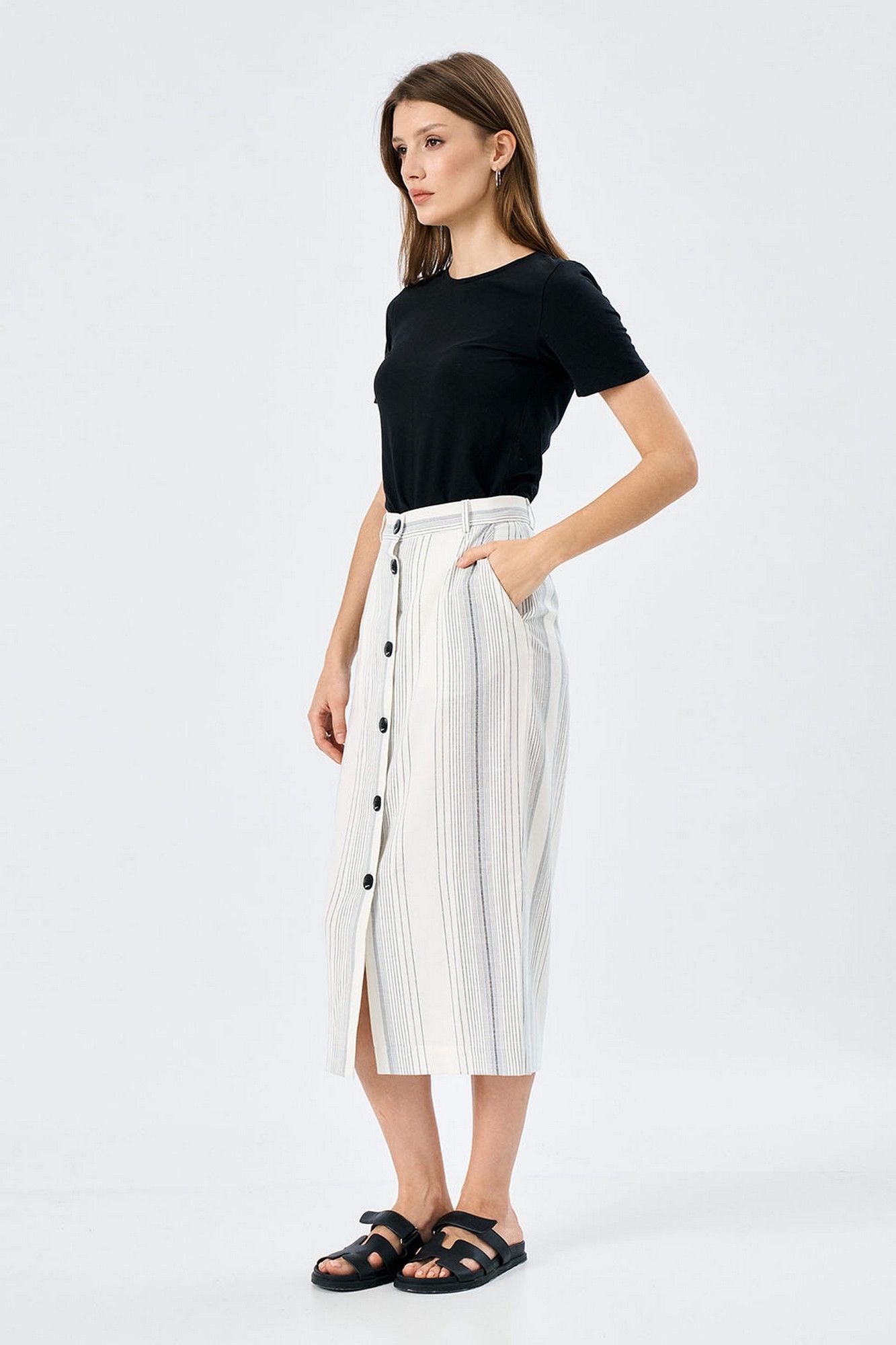 Юбки в полоску - это уже классика, которая должна быть в гардеробе каждой. Такая юбка является универсальной, ведь замечательно сочетается с разными элементами гардероба. Вертикальная полоска на юбке выгодна подчеркнет достоинства и скроет недостатки фигуры. Юбка полуприлегающего силуэта, с карманами, с центральной застежкой на петли и пуговицы. Возможно отличие фотографии по оттенку, связанное с разной цветопередачей монитора.