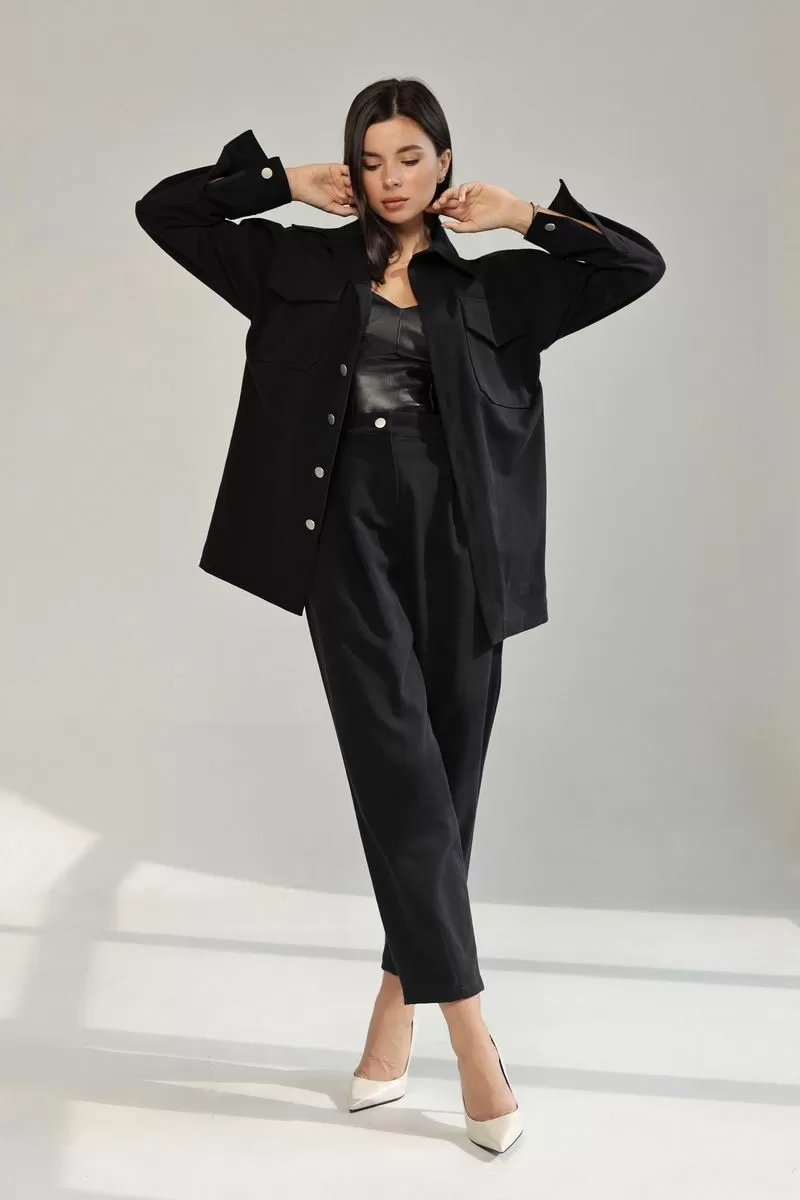 Комплект двойка черный джинс (джинсовая рубашка+слоучи джинсовые черные)