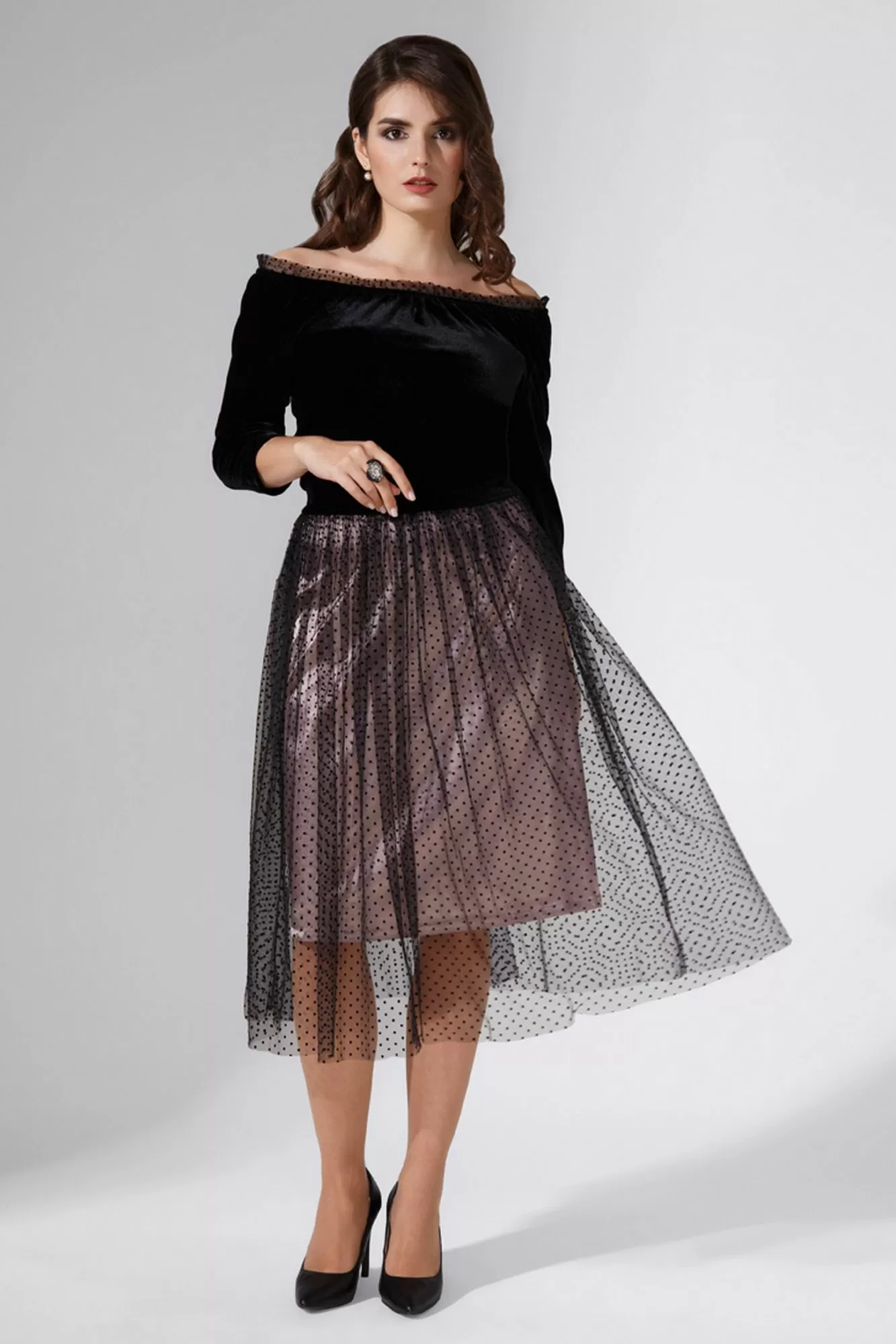 Эта модель, отрезная по линии талии, идеально подчеркивает фигуру, а благодаря свободному крою юбки дарит ощущение невесомости и свободы.