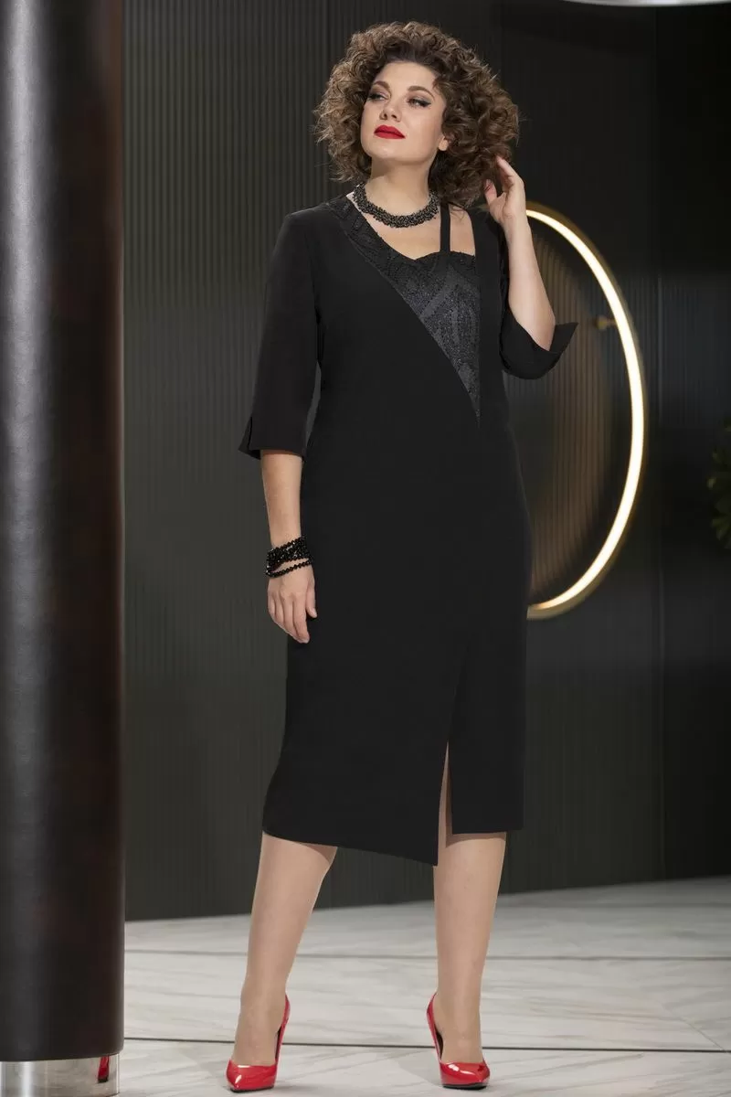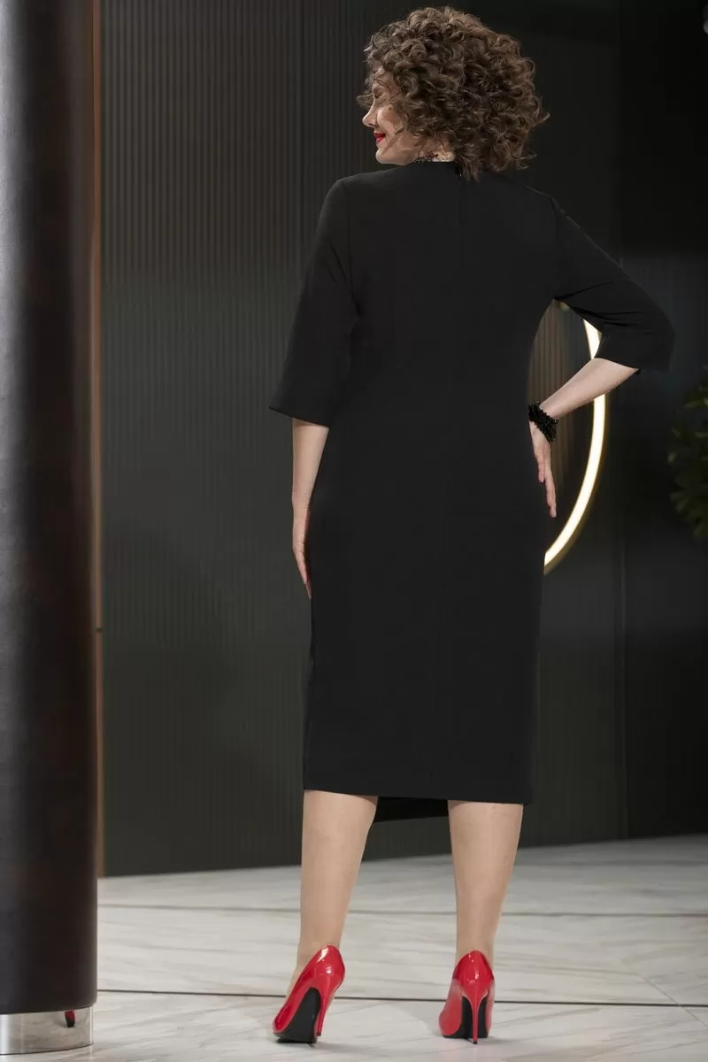 Нарядное платье прилегающего силуэта из плотной костюмно-плательной ткани, немного тянется. На переде шлица, застежка на молнию в среднем шве спинки.