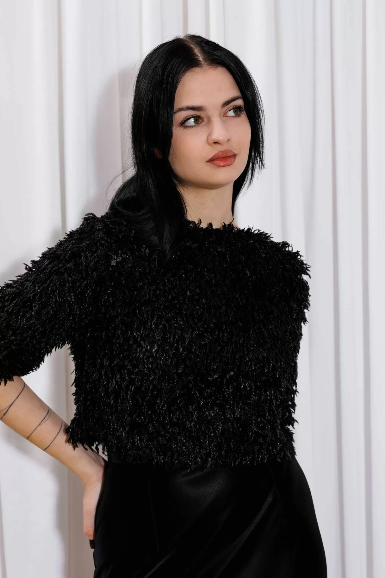 Кофточка длиной до талии с рукавом 3/4 из искусственного пера. Без подкладки!