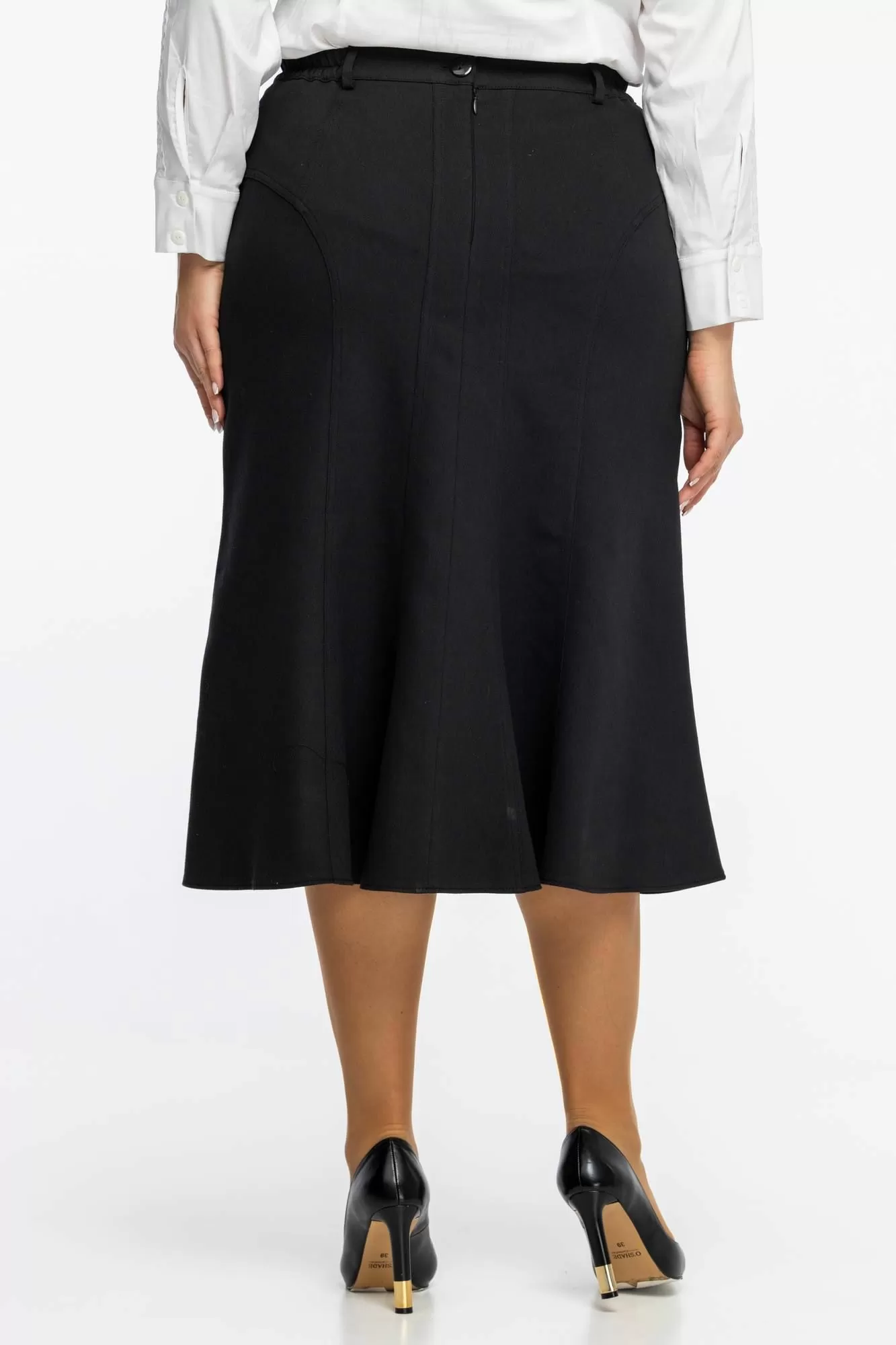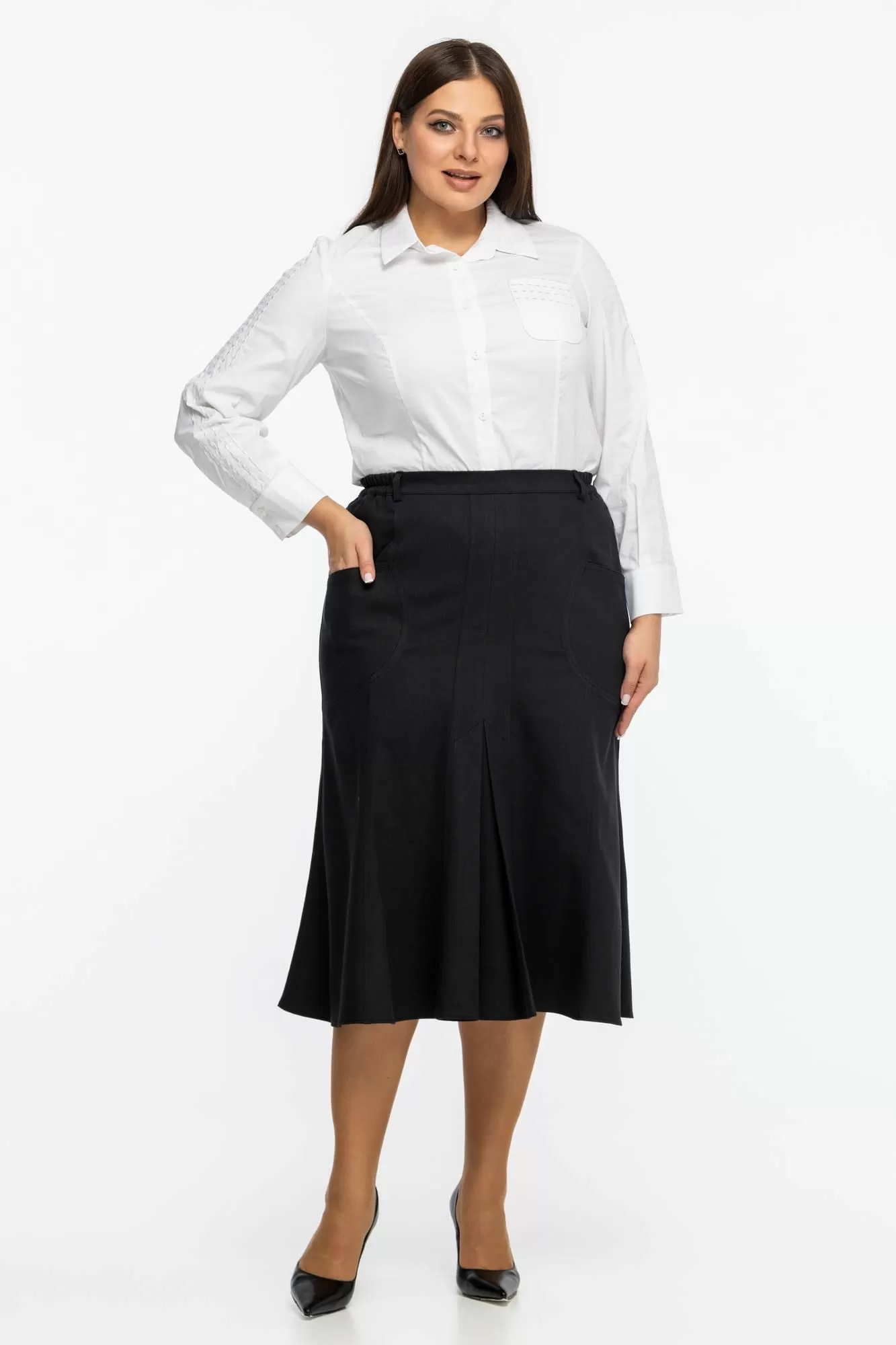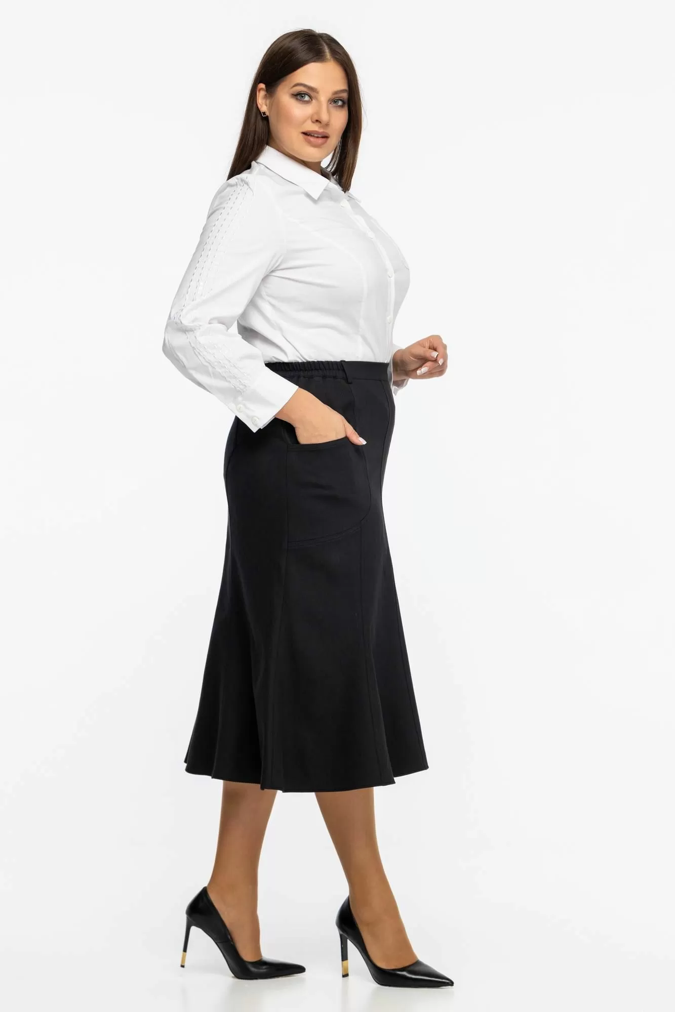 Оригинальная джинсовая юбка, оснащенная внизу дополнительным расширением. Такая модель юбки необходима в гардеробе каждой девушки, она безупречно подойдет к любому фасону блузки и кофточки