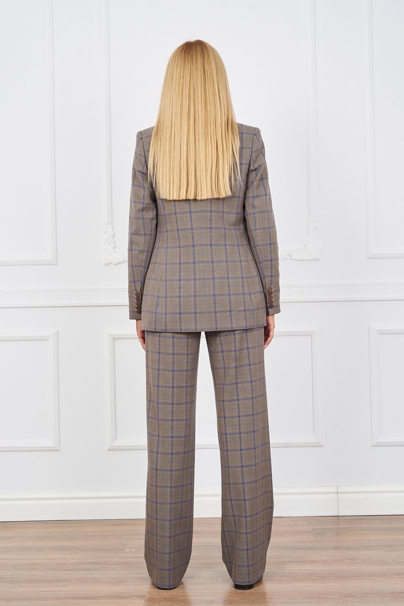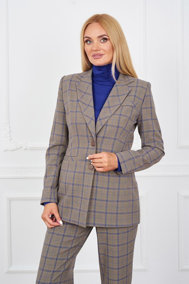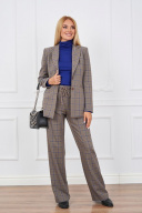 Комплект женский, состоящий из жакета ,брюк и джемпера .Жакет прилегающего силуэта с втачным рукавом ,однобортный с отложным воротником. Изделие на подкладке.Брюки прямые ,свободные на поясе с эластичной тесьмой ,со шнуром ,с боковыми карманами,без застежки.Джемпер из трикотажного полотна с эластаном ,полуприлегающего силуэта ,с коротким втачным рукавом. Ширина по линии груди Джемпер(44):43см ,жакет (44): 48см Джемпер(46):45см, жакет(46):50см Джемпер(48):47см, жакет(48):52см Джемпер(50):49см, жакет(50):54см Джемпер(52):51см, жакет(52):56см Джемпер(54):53 см, жакет(54):58см Джемпер(56):55см, жакет(56):60см Джемпер(58):57 см, жакет(58):62см Джемпер(60):59см, жакет(60):64см Ширина по линии бедер Джемпер(44):46см ,брюки:(44):52см,жакет(44):53см Джемпер(46):48 см ,брюки :(46):54см ,жакет(46):55см Джемпер(48):50 см ,брюки:(48):56см ,жакет(48): 57см Джемпер(50):52 см ,брюки:(50):58см ,жакет(50): 59см Джемпер(52):54 см ,брюки:(52):60см ,жакет(52):61см Джемпер(54):56 см, брюки:(54):62 см,жакет(54):63см Джемпер(56):58 см, брюки:(56):64 см,жакет(56):65см Джемпер(58):60см, брюки:(58):66 см ,жакет(58):67см Джемпер(60):62 см, брюки:(60):68см ,жакет(60): 69см Ширина по линии талии брюки(44):35 см брюки(46):37см брюки(48):39см брюки(50):41см брюки(52):43см брюки(54):45см брюки(56):45см брюки(58):49см брюки(60):51см Длина изделия Размеры(44-48) Жакет:71см Джемпер :60см Брюки:112см Размеры( 50-54) Жакет:71см Джемпер :61См Брюки :112см Размеры( 56-60) Жакет:72см Джемпер: 61см Брюки :112 см Длина рукава Жакет: 63см Джемпер 62см