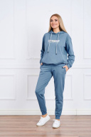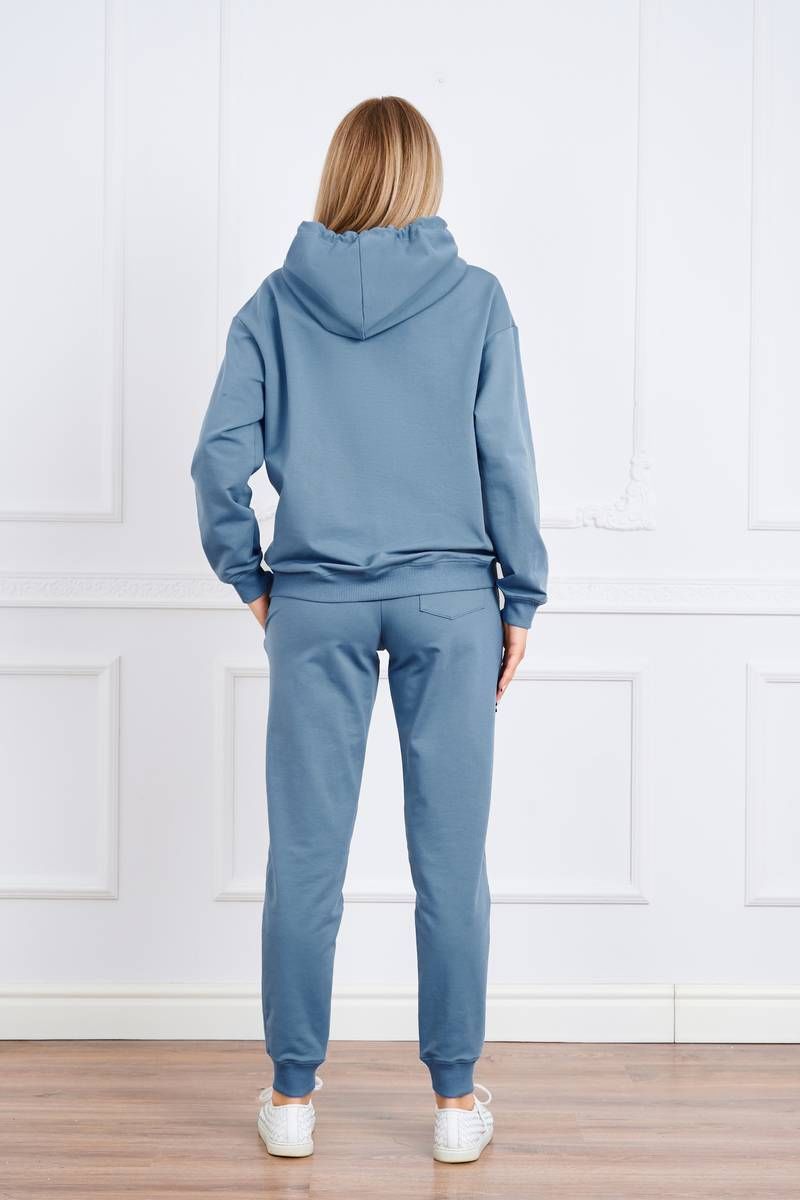 Комплект женский брючный спортивный.Изготовлен из хлопкового трикотажного полотна с жлатаном.Джемпер свободного силуэта,удлиненный на манжете по низу изделия,со спущенным плечом,с капюшоном.Брюки на поясе с эластичной тесьмой и шнуром,по низу брюк манжета из довяза в тон,карманы в боковых швах,на правой задней половинке брюк -накладной карман. Ширина по линии груди джемпер(44):60см джемпер(46):62см джемпер(48):64см джемпер(50):66см джемпер(52):68см джемпер(54):70см Ширина по линии бедер джемпер(44):47см брюки :50см джемпер(46):49см брюки:52см джемпер(48):51см брюки:54см джемпер(50):53см брюки:56см джемпер(52):55см брюки:58см джемпер(54):57см брюки:60см Ширина по линии талии брюки(44):36см брюки(46):38см брюки(48):40см брюки(50):42,5см брюки(52):44,5см брюки(54):46,5см Длина изделия размеры:( 44-48) Джемпер: 63,5см Брюки: 101см размеры (50-54) Джемпер :64,5см Брюки :101см Длинна рукава 53см
