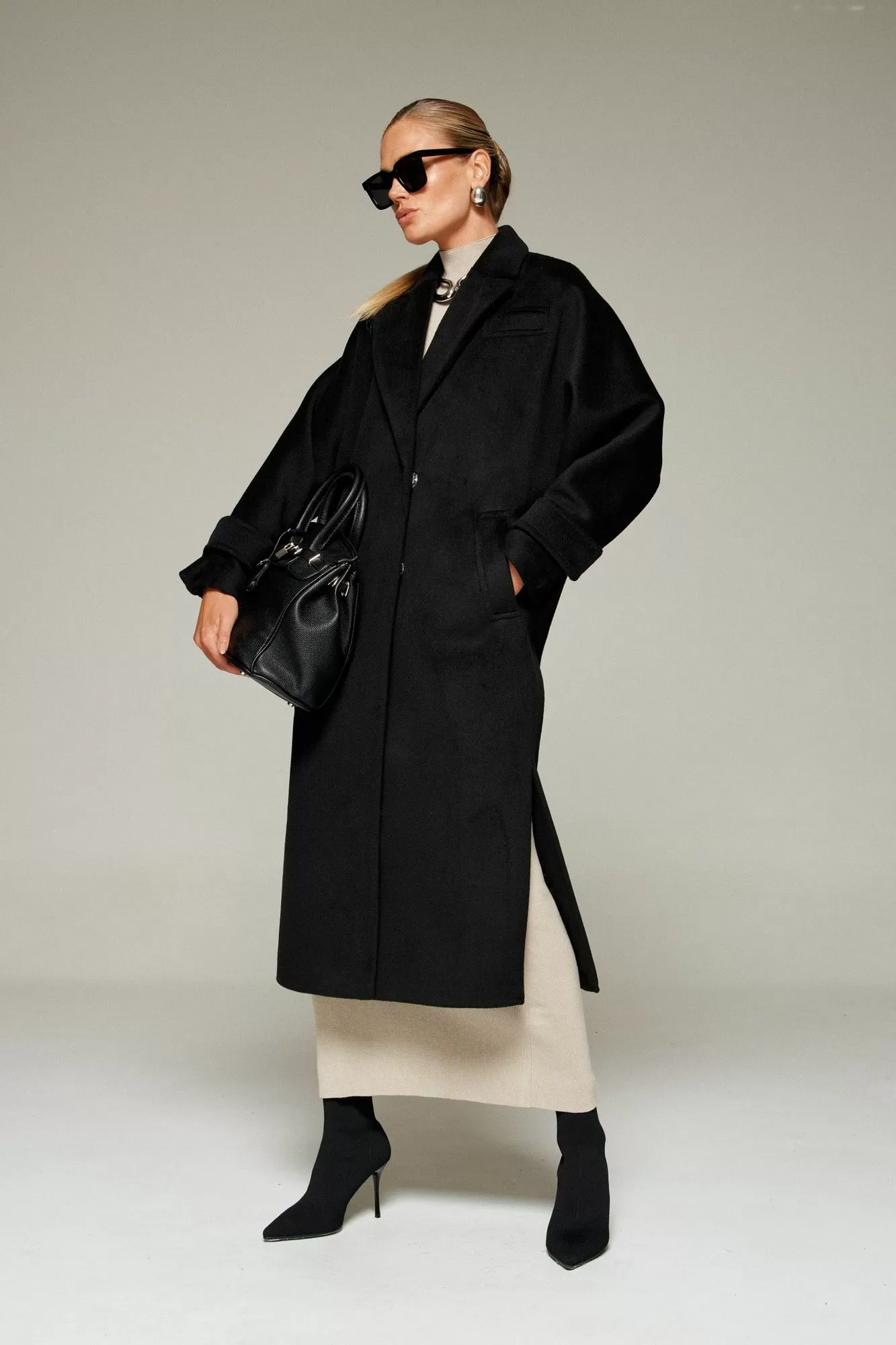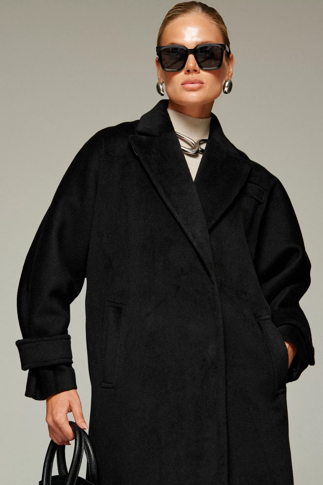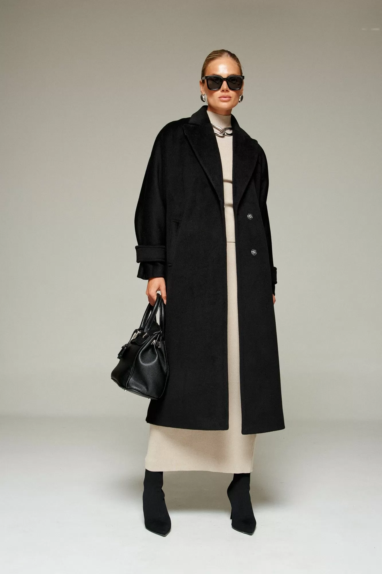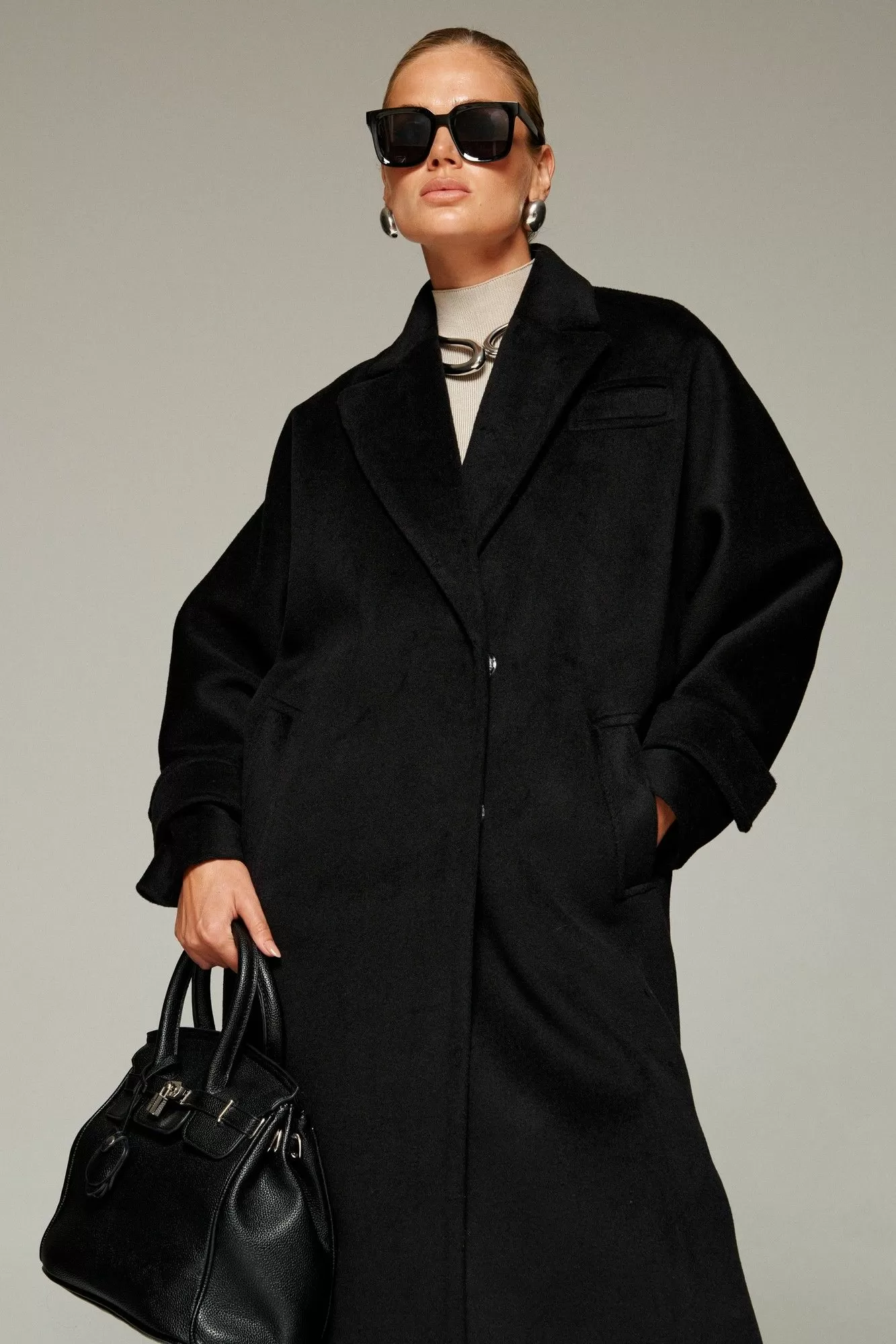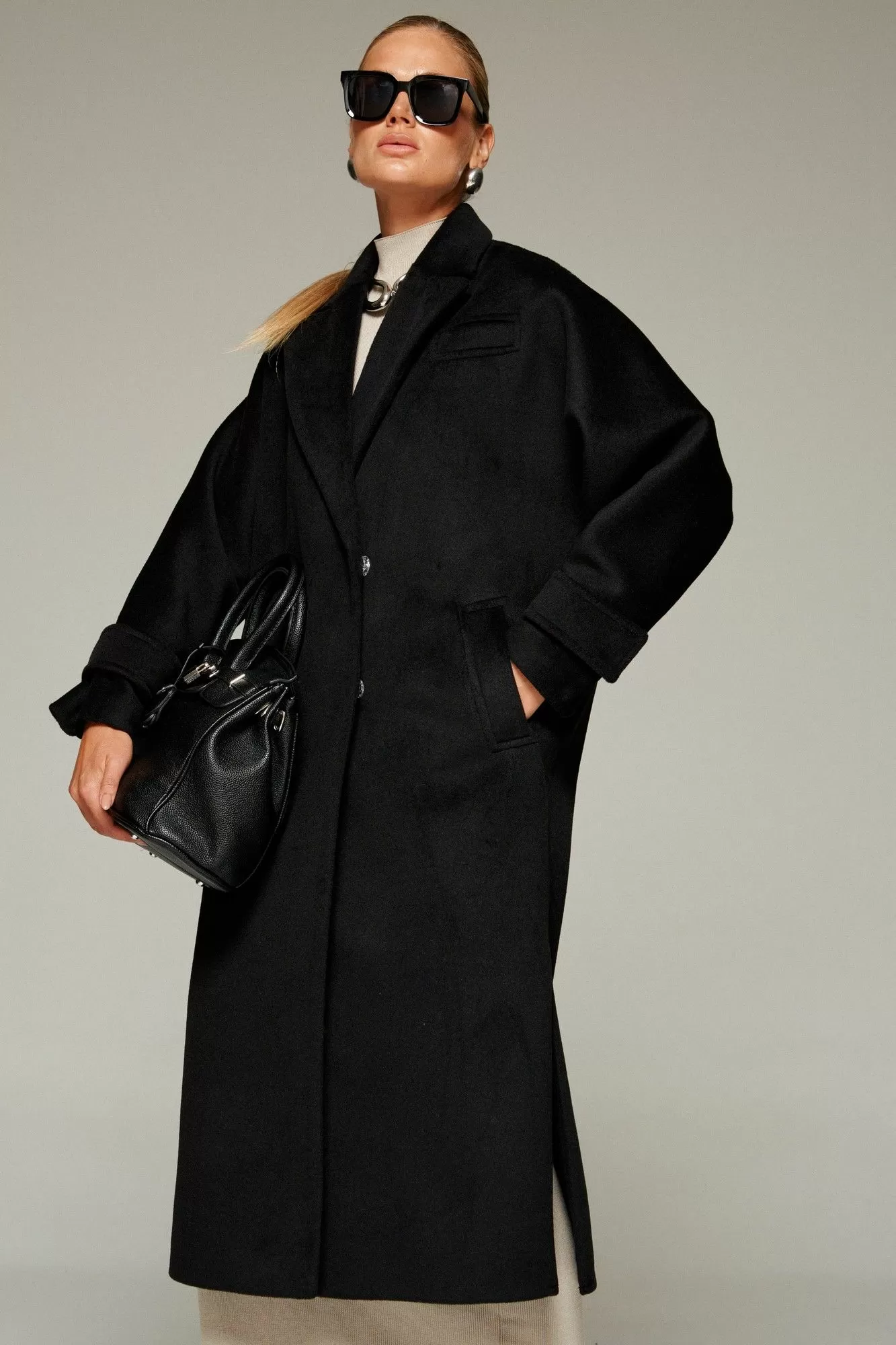 Пальто выполнено из шерстяной ткани, которая обеспечивает теплоизоляцию и защиту от ветра и влаги, подходит для межсезонья и теплой зимы. Двубортное, на подкладке. Изделие рассчитано на температурный режим от +10 до -5 градусов. Модель прямого силуэта актуального покроя «летучая мышь»; предназначена для повседневного использования.