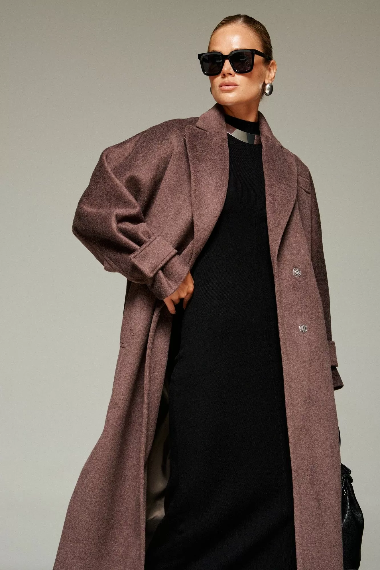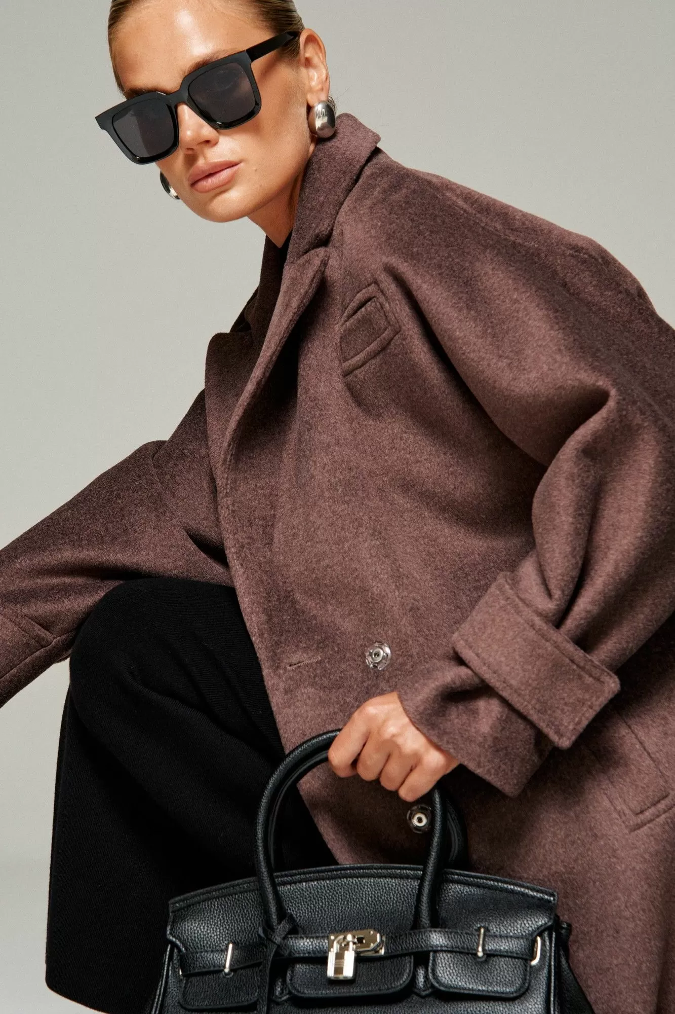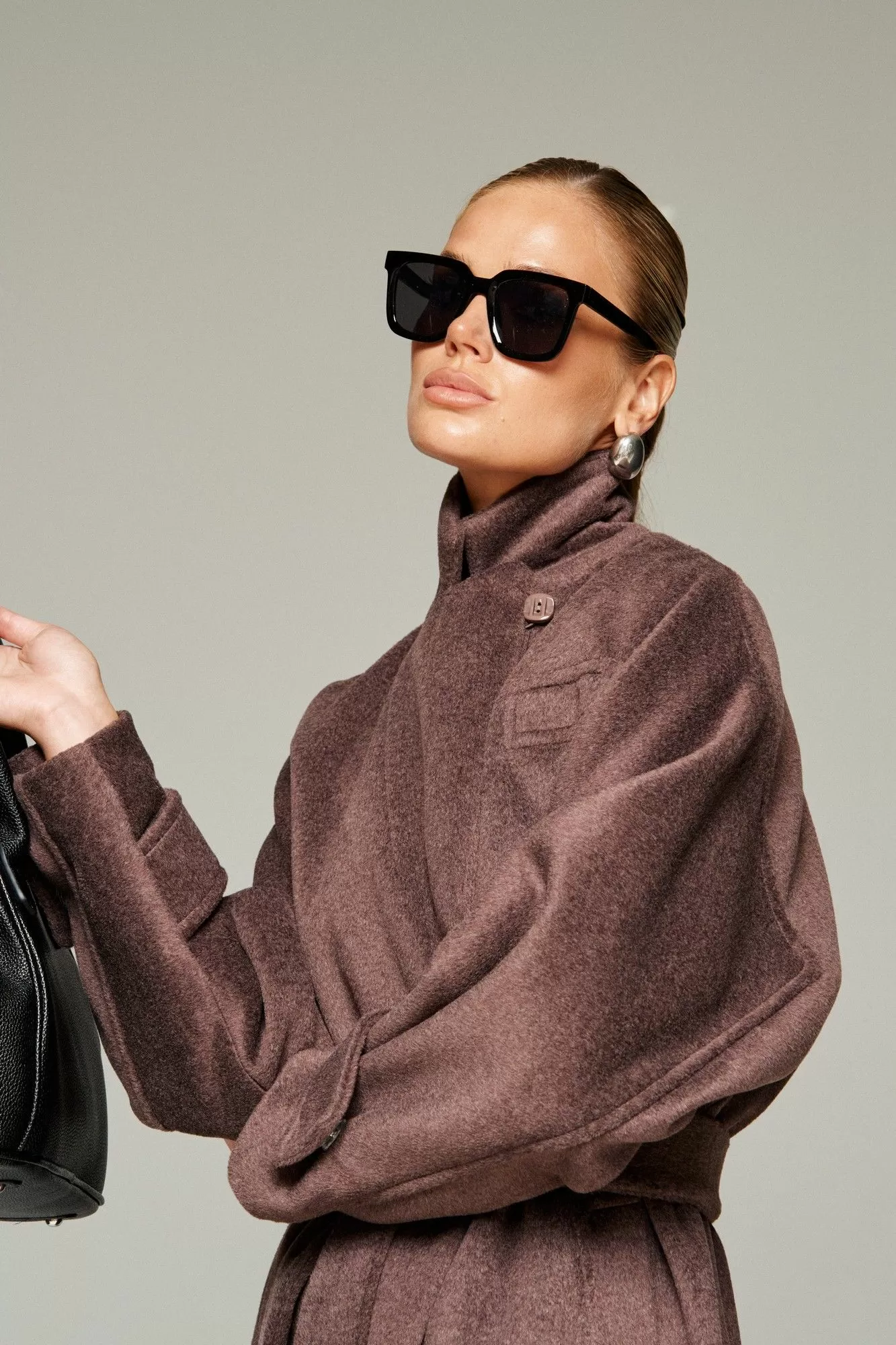 Пальто выполнено из шерстяной ткани, которая обеспечивает теплоизоляцию и защиту от ветра и влаги, подходит для межсезонья и теплой зимы. Двубортное, на подкладке. Изделие рассчитано на температурный режим от +10 до -5 градусов. Модель прямого силуэта актуального покроя «летучая мышь»; предназначена для повседневного использования.
