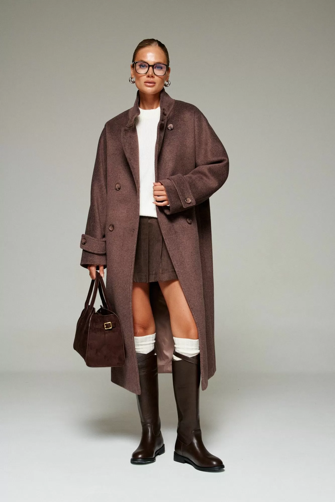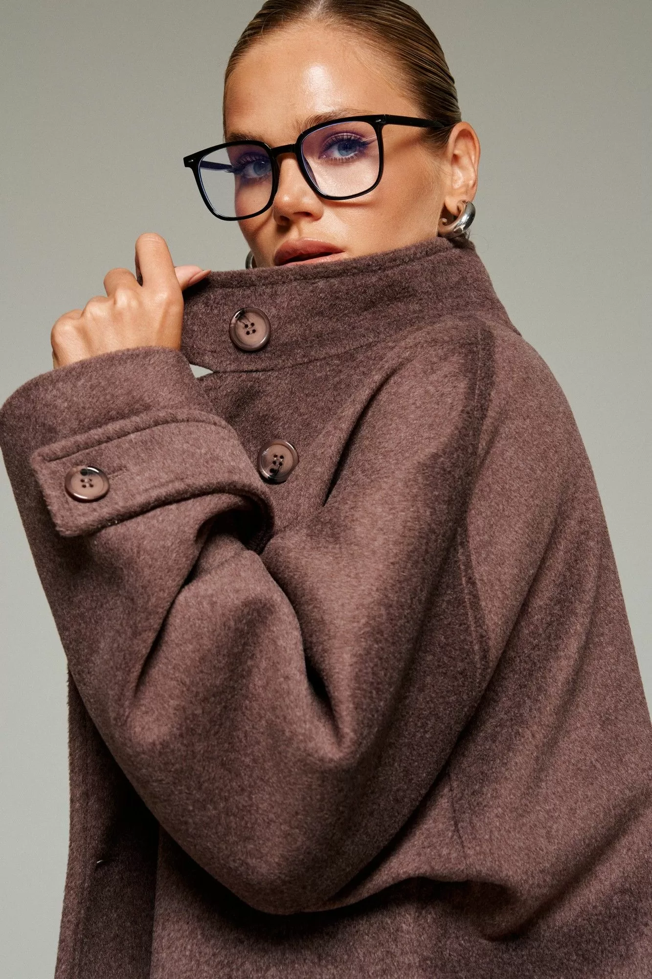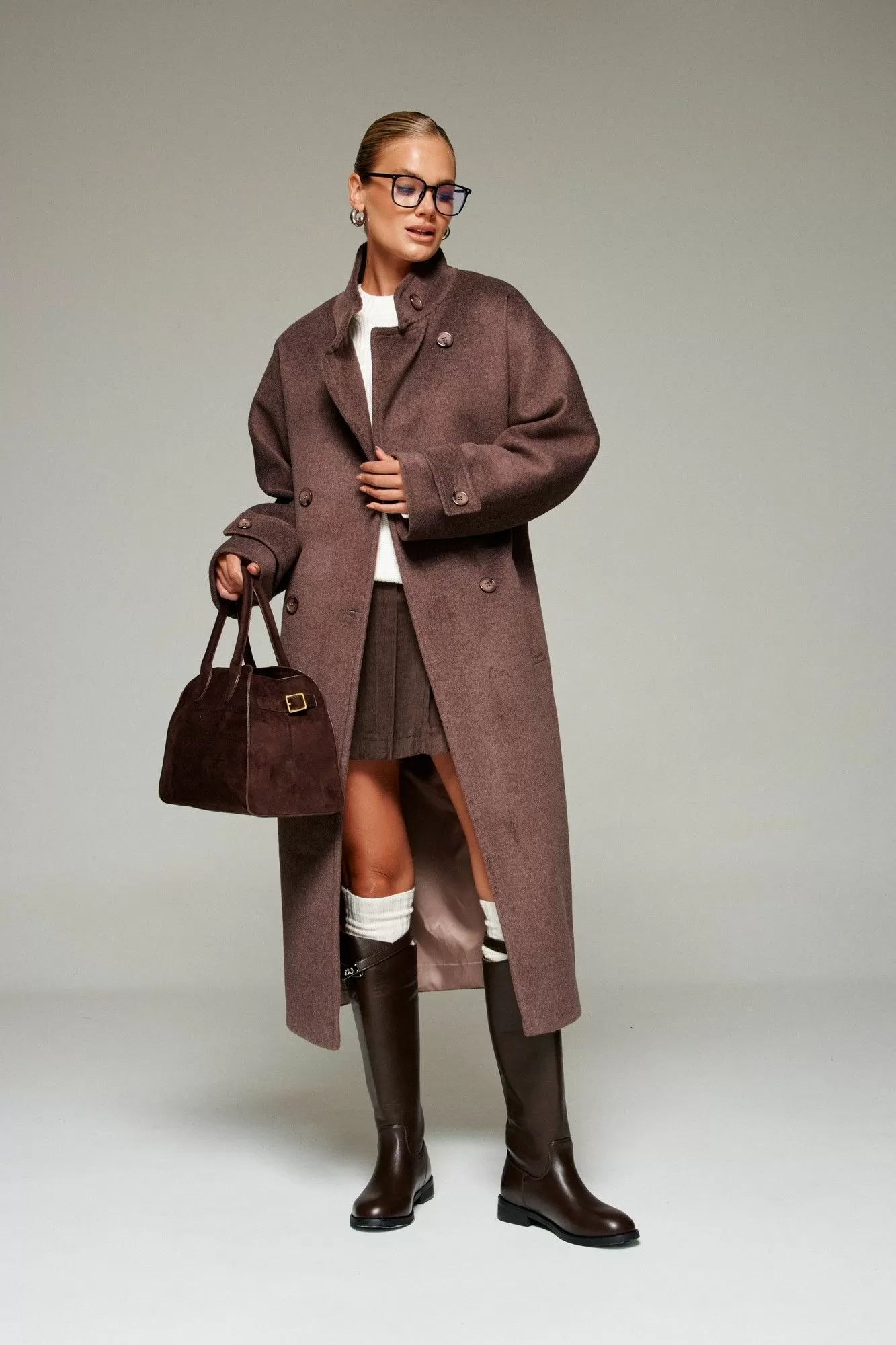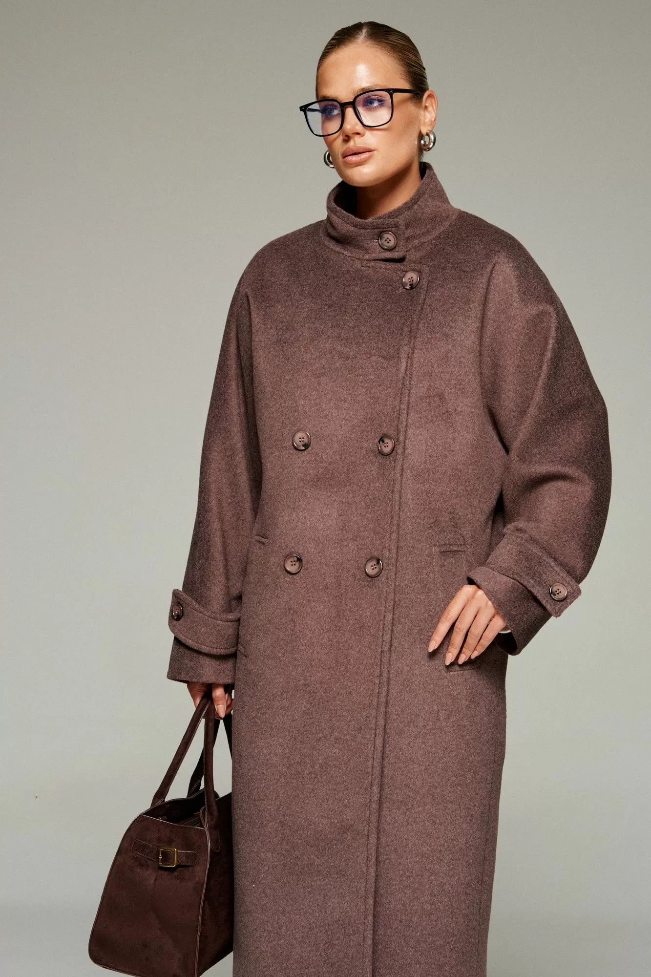 Пальто выполнено из шерстяной ткани, которая обеспечивает теплоизоляцию и защиту от ветра и влаги, подходит для межсезонья и теплой зимы. Двубортное, на подкладке. Изделие рассчитано на температурный режим от +10 до -5 градусов. Модель прямого силуэта актуального покроя «летучая мышь»; предназначена для повседневного использования.