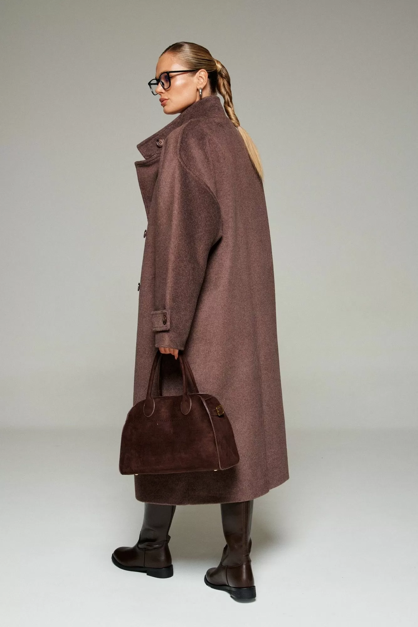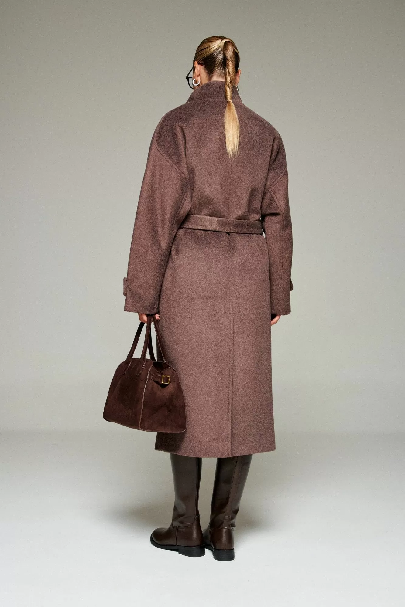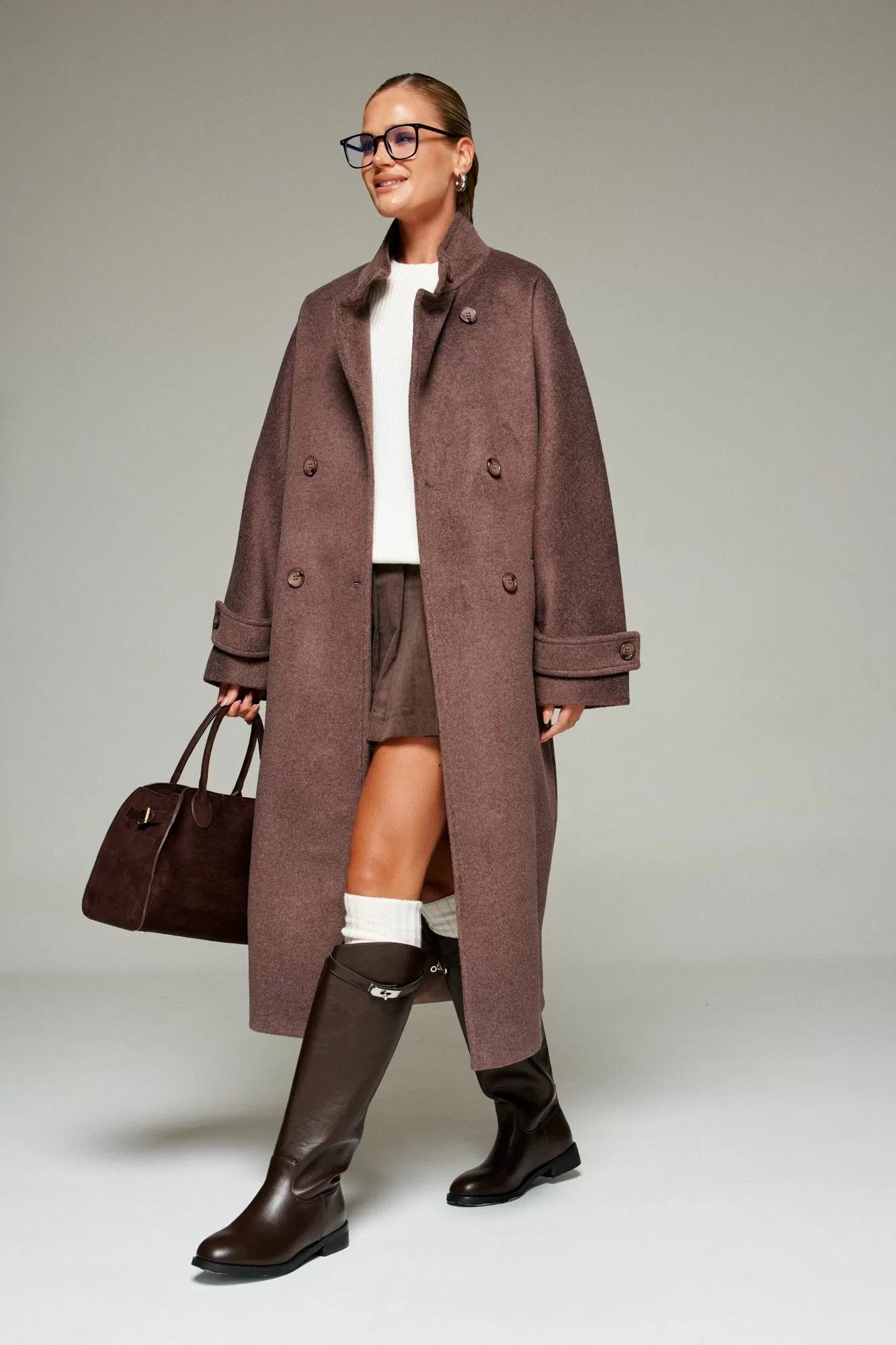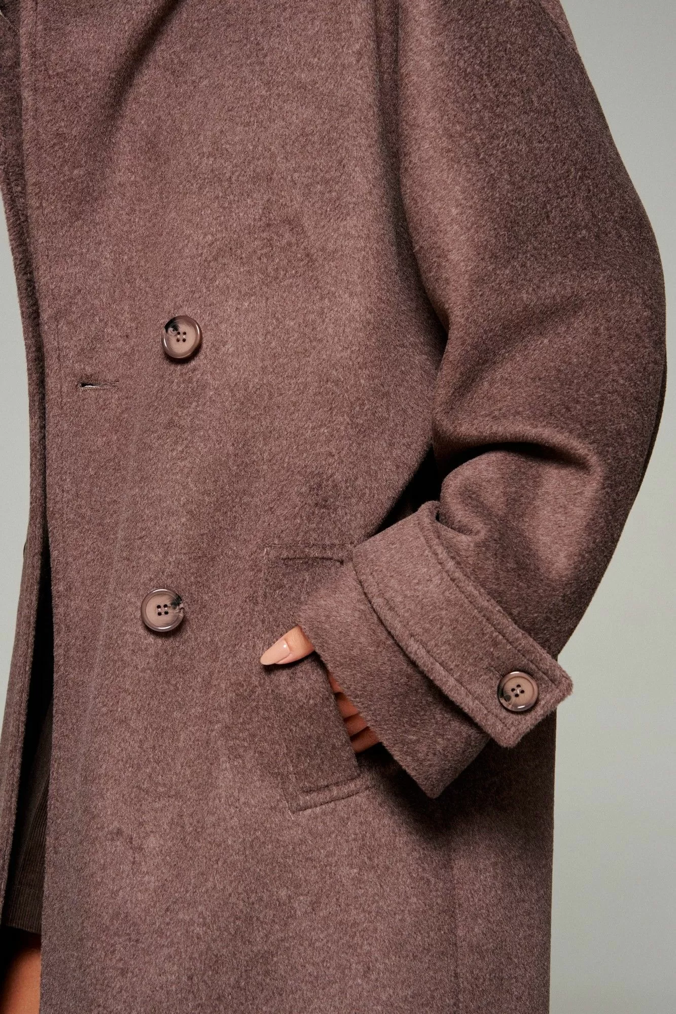 Пальто выполнено из шерстяной ткани, которая обеспечивает теплоизоляцию и защиту от ветра и влаги, подходит для межсезонья и теплой зимы. Двубортное, на подкладке. Изделие рассчитано на температурный режим от +10 до -5 градусов. Модель прямого силуэта актуального покроя «летучая мышь»; предназначена для повседневного использования.