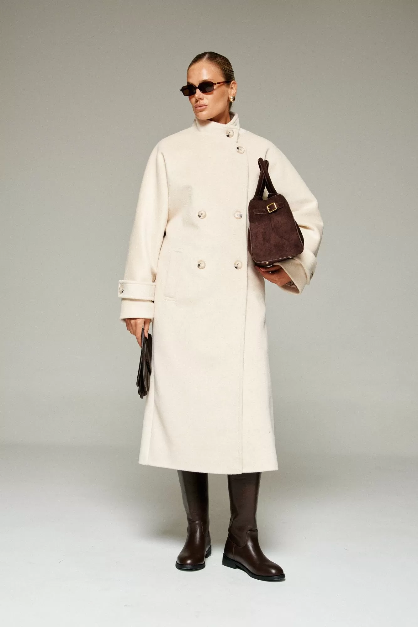 Пальто выполнено из шерстяной ткани, которая обеспечивает теплоизоляцию и защиту от ветра и влаги, подходит для межсезонья и теплой зимы. Двубортное, на подкладке. Изделие рассчитано на температурный режим от +10 до -5 градусов. Модель прямого силуэта актуального покроя «летучая мышь»; предназначена для повседневного использования.