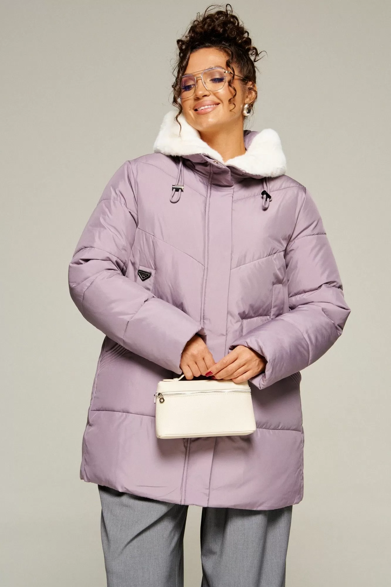 Капюшон с застежкой спереди умеренного объема. По периметру капюшона с внутренней стороны выполнена оторочка из искусственного меха, которая выполняет декоративную и защитную функции, создавая дополнительное тепло и защиту от ветра и холода.