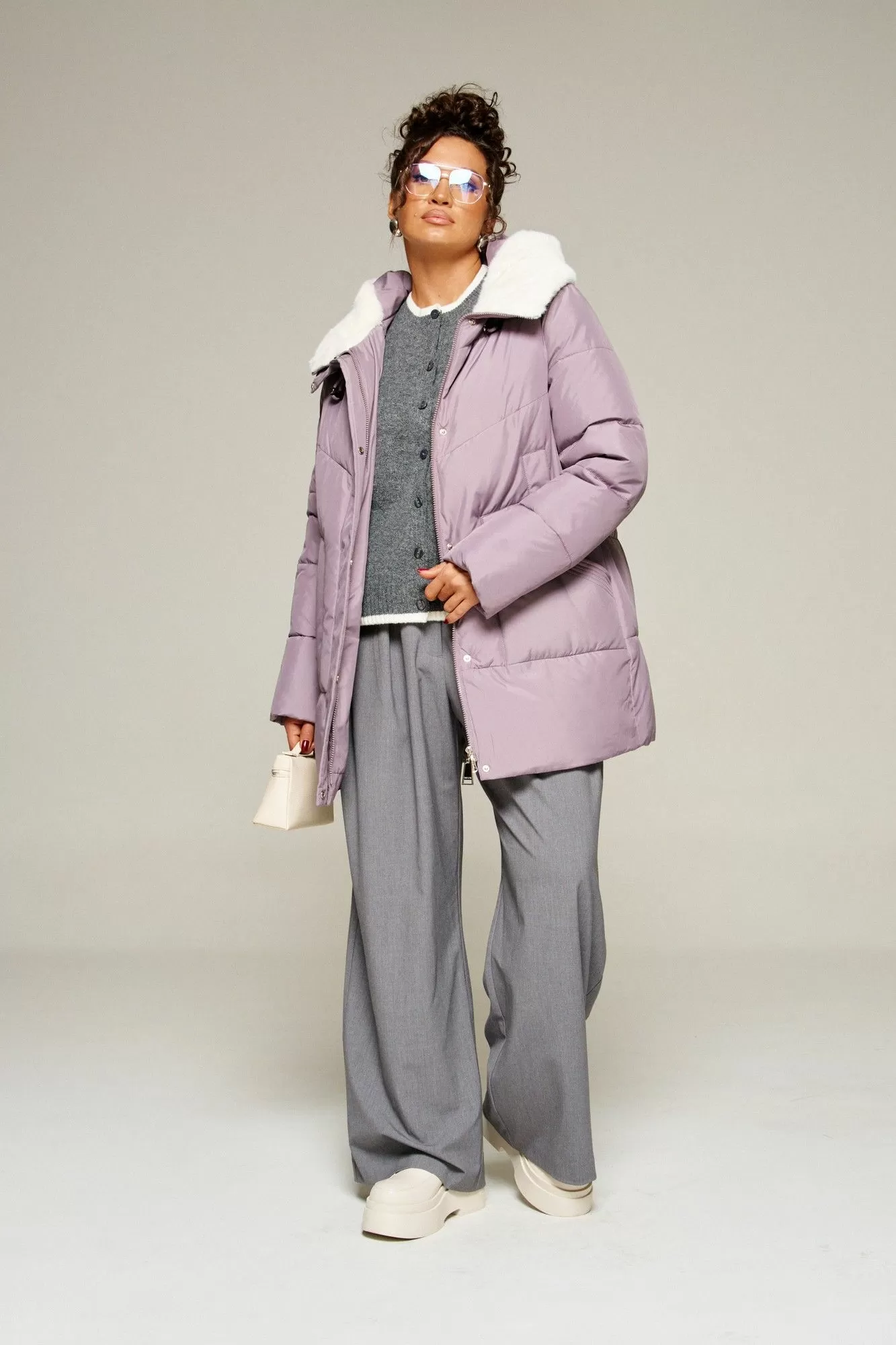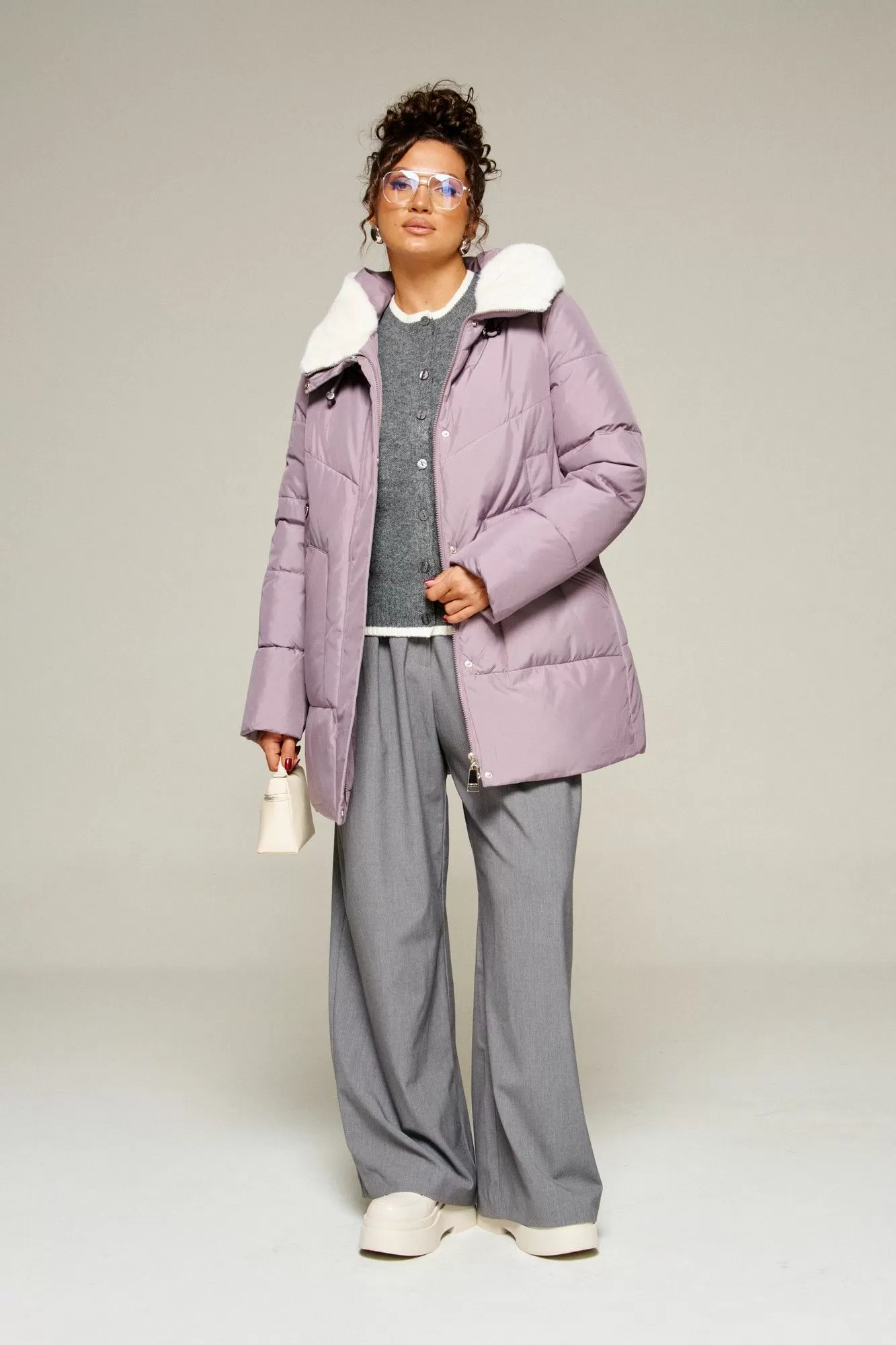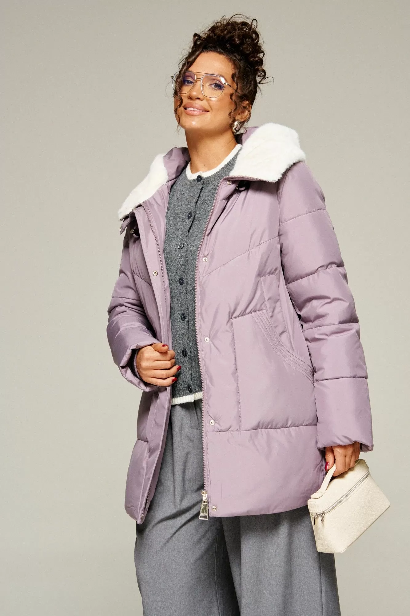 Beautiful&Free 8021 лиловый, Женское пальто