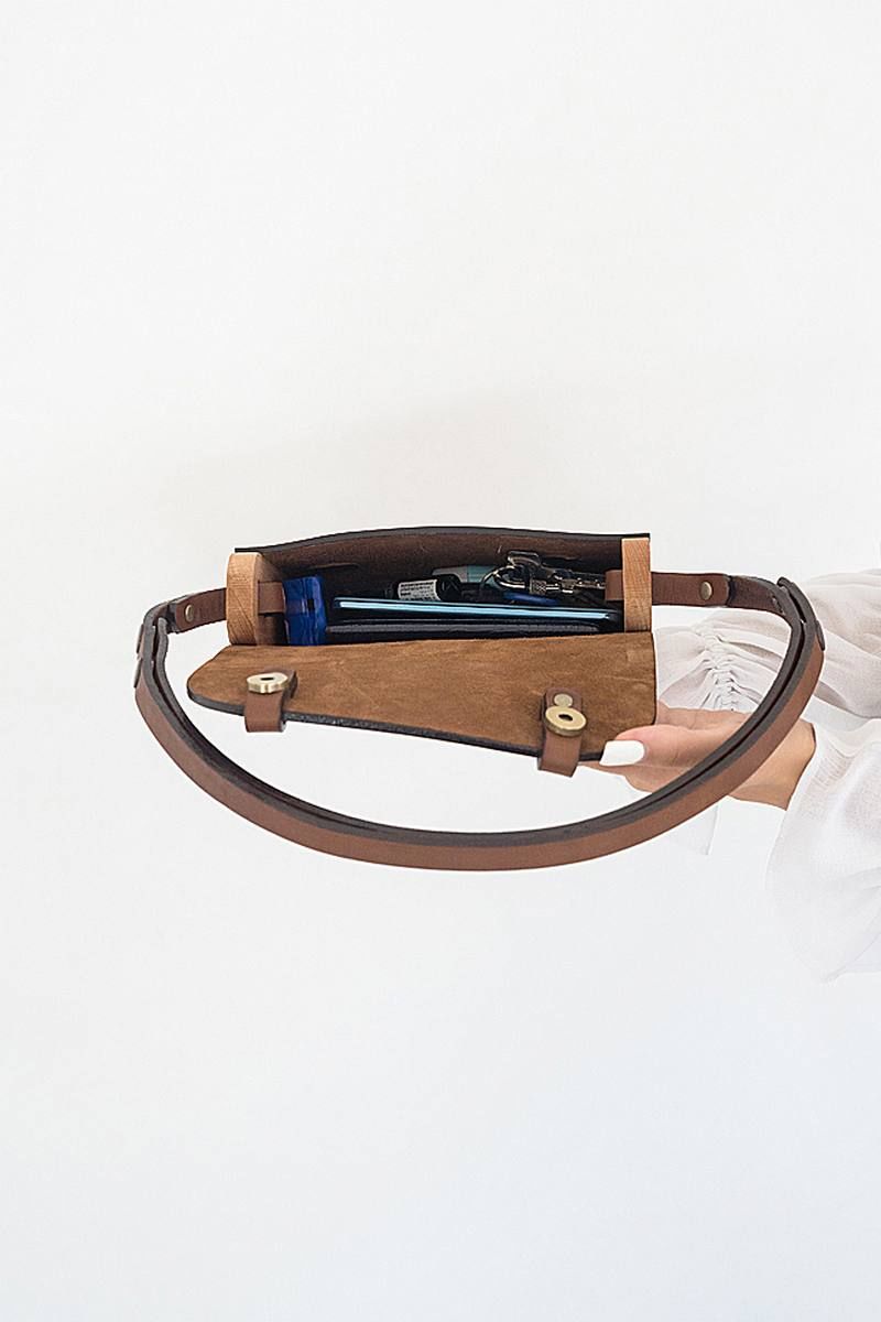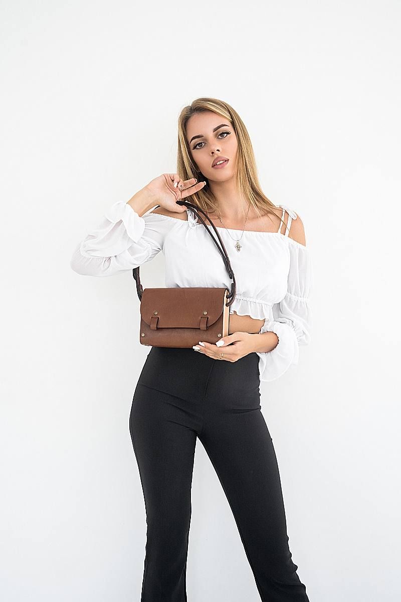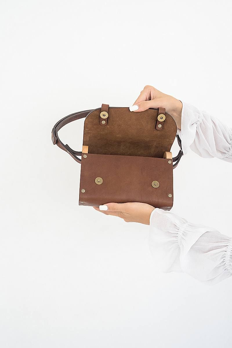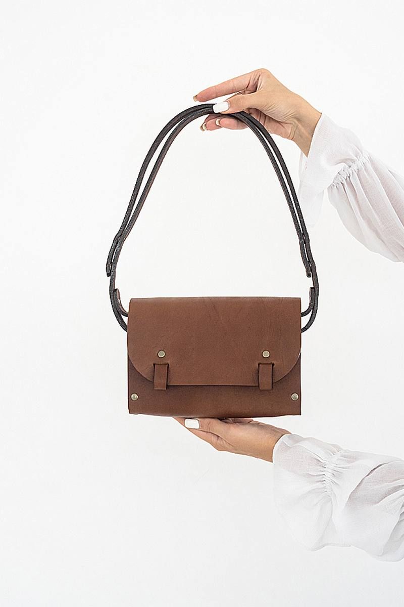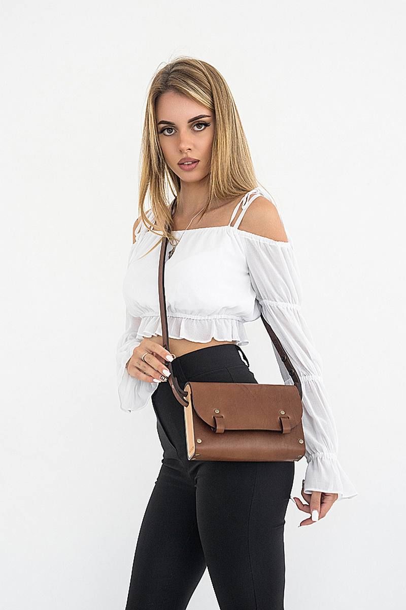 Сумка женская АЭЛИТА через плечо из натуральной кожи и вставками из натурального дерева изготовлена вручную. Простые формы и минимум декора. Качественная и плотная натуральная кожа делает наши сумки тактильно приятными, дорогими и стильными. Ремешок из натуральной кожи регулируется от длинного 105 см до короткого 65 см, за счет перестёгивания кнопок. Закрывается сумка на кобурную кнопку цвета античной латуни, что в совокупности с натуральными материалами придает ей оригинальный внешний вид и подчеркивает неординарный вкус обладателя данного аксессуара. В каждой нашей сумке используется только натуральное дерево Бук и натуральная кожа. Кожа и дерево надежно закреплены с помощью металлических заклепок. Внутри сумки одно большое отделение. Универсальная кожаная сумка АЭЛИТА Because через плечо будет идеально сочетаться с любой формой одежды и станет прекрасным подарком для любимой мамы, подруги или подростка на день рождения. BECAUSE BAGS для тех, кто ценит стиль и качество! Размер 22*15*6