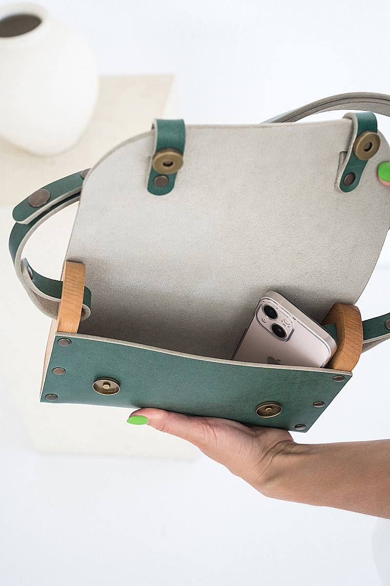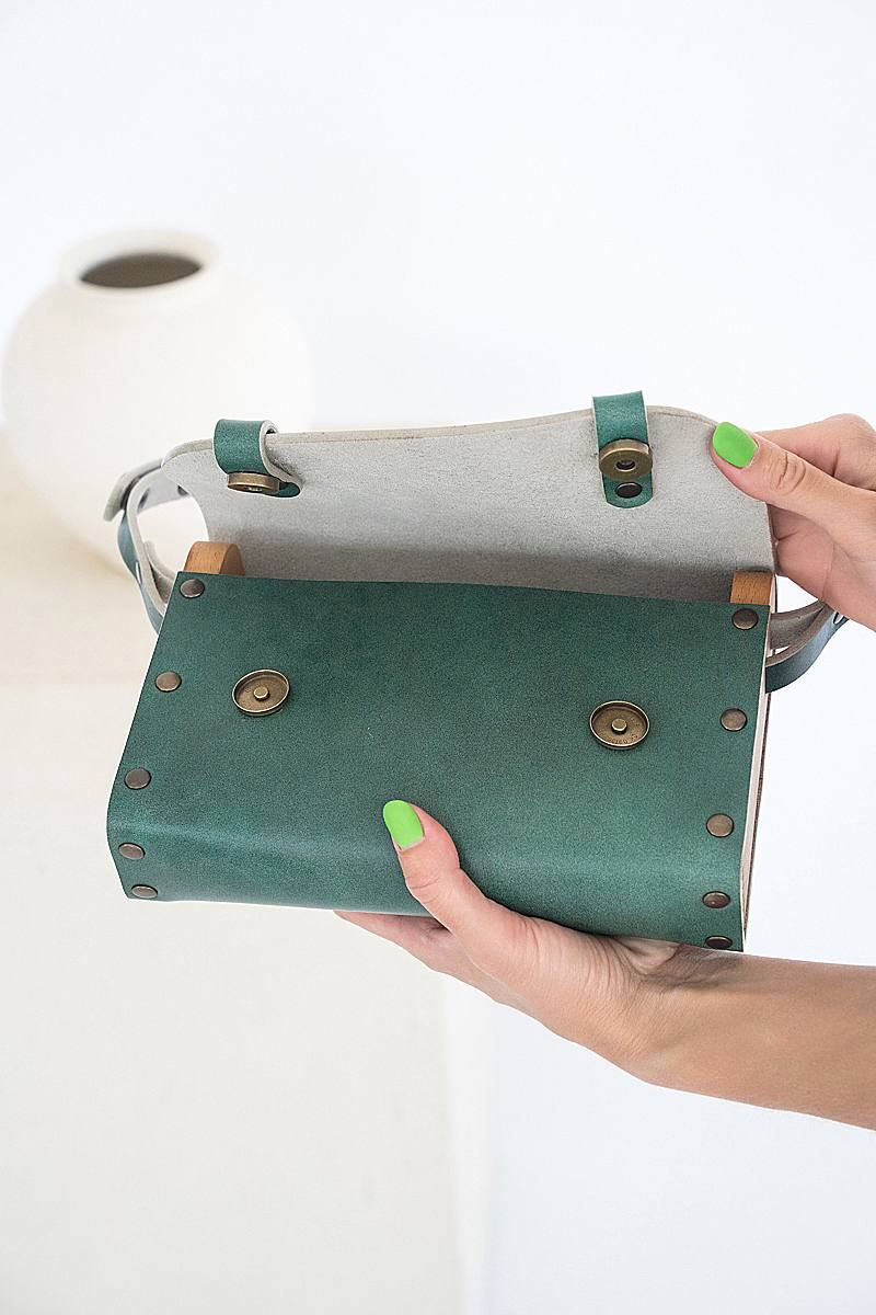 Сумка женская АЭЛИТА через плечо из натуральной кожи и вставками из натурального дерева изготовлена вручную. Простые формы и минимум декора. Качественная и плотная натуральная кожа делает наши сумки тактильно приятными, дорогими и стильными. Ремешок из натуральной кожи регулируется от длинного 105 см до короткого 65 см, за счет перестёгивания кнопок. Закрывается сумка на кобурную кнопку цвета античной латуни, что в совокупности с натуральными материалами придает ей оригинальный внешний вид и подчеркивает неординарный вкус обладателя данного аксессуара. В каждой нашей сумке используется только натуральное дерево Бук и натуральная кожа. Кожа и дерево надежно закреплены с помощью металлических заклепок. Внутри сумки одно большое отделение. Универсальная кожаная сумка АЭЛИТА Because через плечо будет идеально сочетаться с любой формой одежды и станет прекрасным подарком для любимой мамы, подруги или подростка на день рождения. BECAUSE BAGS для тех, кто ценит стиль и качество! Размер 22*15*6