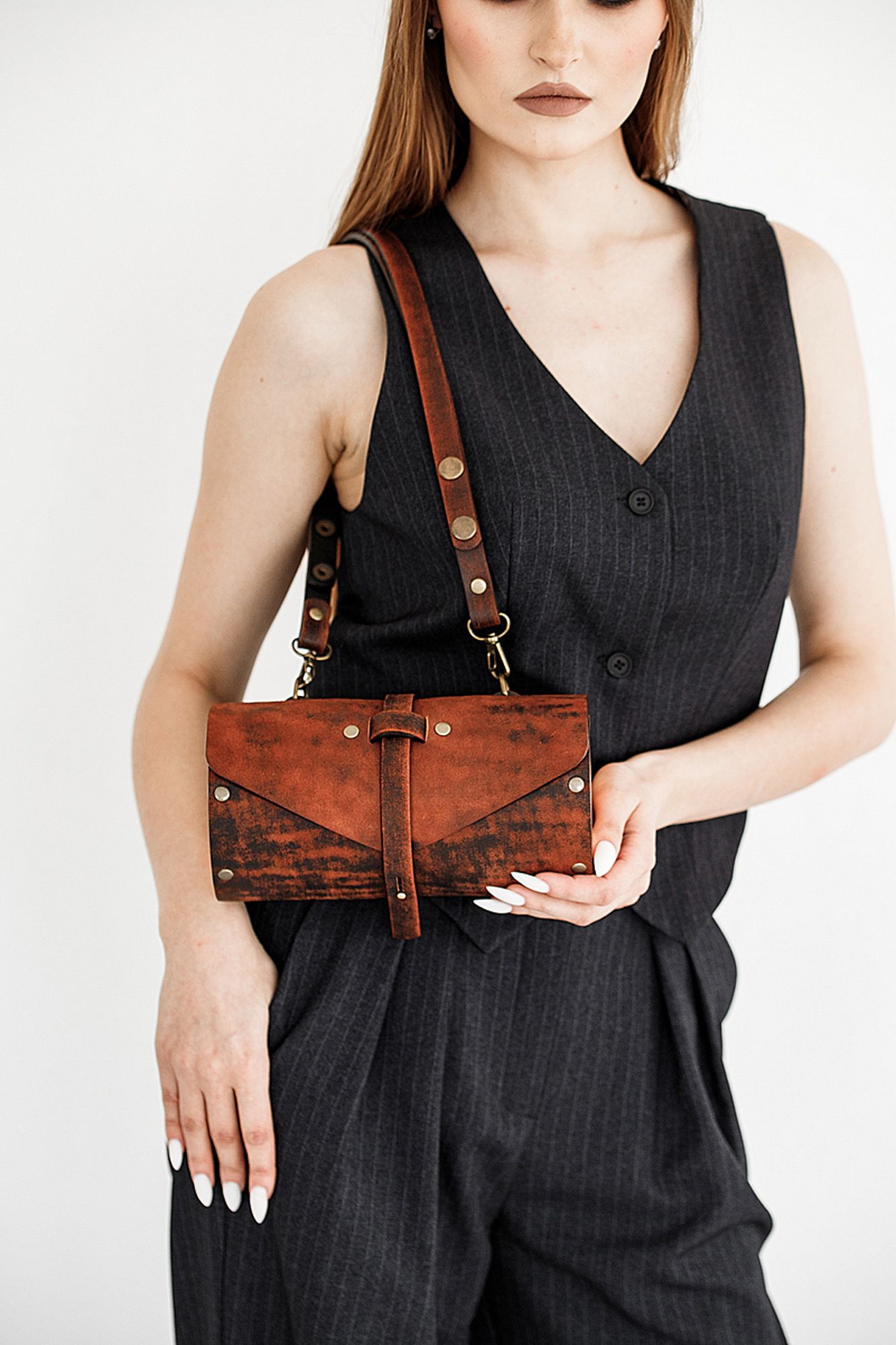 Сумка женская TUB-VINTAGE TERRACOT через плечо из натуральной кожи - это удобный и стильный аксессуар с ремешком из натуральной кожи изготовлена вручную. Сумки женские через плечо Because можно носить как кросс-боди , так и на плечо. В каждой нашей сумке используется только натуральное дерево Бук, что позволяет маленькой женской сумочке быть не только легкой но и вместительной. В женскую сумочку войдут самые необходимые вещи, телефон больших размеров, паспорт, очки, расческа, ключи и многое другое при этом ваши руки будут свободны. Простые формы и минимум декора. Качественная и натуральная кожа делает наши сумки тактильно приятными, дорогими и стильными. Ремешок из натуральной кожи регулируется от длинного 115 см до короткого 65 см, за счет перестегивания кнопок. Закрывается сумка на кобурную кнопку цвета античной латуни, что в совокупности с натуральными материалами придает ей оригинальный внешний вид и подчеркивает неординарный вкус обладателя данного аксессуара. Кожа и дерево надежно закреплены с помощью металлических заклепок. Этот аксессуар будет весьма уместно вручить в качестве оригинального подарка себе любимой или на любое торжество. Наша сумка подойдет под любые образы и мероприятия. Сумка выполнена по индивидуальным эскизам, с использованием качественных материалов, устойчивых к перепадам температур и механическим воздействиям. Высокое качество дерева и кожи и надежная фурнитура позволит не волноваться за внешний вид и дальнейшую эксплуатацию наших сумок. Внутри сумки одно большое отделение. Сумка Because тубус идеально подходит на лето а так же как отличный аксессуар под вечернее платье. Универсальная кожаная сумка через плечо будет идеально сочетаться с любой формой одежды и станет прекрасным подарком для любимой мамы, подруги или подростка на день рождения. Также в коллекции есть более яркие модели. Каждый экземпляр ручной работы выполнен с любовью к женщинам и их нуждам. Эта красивая и удобная сумка станет отличным выбором для каждого дня и в любой ситуации. Лаконичная и стильная маленькая сумочка выполнена из качественной кожи, которая хорошо держит форму. В данной коллекции вы найдете маленькие и вместительные сумки, которые станут отличным выбором как для повседневного образа, так и в качестве вечернего клатча. Они также подходят для путешествий и учебы, офисной работы или прогулок с друзьями. Сумки через плечо снабжены ремнем, что позволяет носить их на руке или через плечо. BECAUSE BAGS для тех, кто ценит стиль и качество!