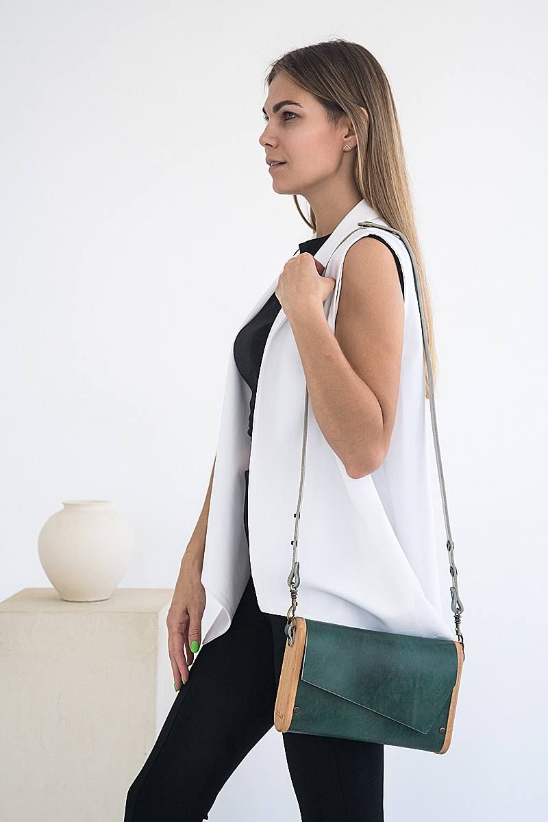 Сумка женская ВИОЛА через плечо из натуральной кожи и вставками из натурального дерева изготовлена вручную. Простые формы и минимум декора. Качественная и плотная натуральная кожа делает наши сумки тактильно приятными, дорогими и стильными. Ремешок из натуральной кожи регулируется от длинного 115 см до короткого 65 см, за счет перестёгивания кнопок. Закрывается сумка на две магнитные кнопки цвета античной латуни, что в совокупности с натуральными материалами придает ей оригинальный внешний вид и подчеркивает неординарный вкус обладателя данного аксессуара. В каждой нашей сумке используется только натуральное дерево Бук и натуральная кожа. Кожа и дерево надежно закреплены с помощью металлических заклепок. Внутри сумки одно большое отделение. Универсальная кожаная сумка ВИОЛА Because через плечо будет идеально сочетаться с любой формой одежды и станет прекрасным подарком для любимой мамы, подруги или подростка на день рождения. BECAUSE BAGS для тех, кто ценит стиль и качество! Размер 24*15*6
