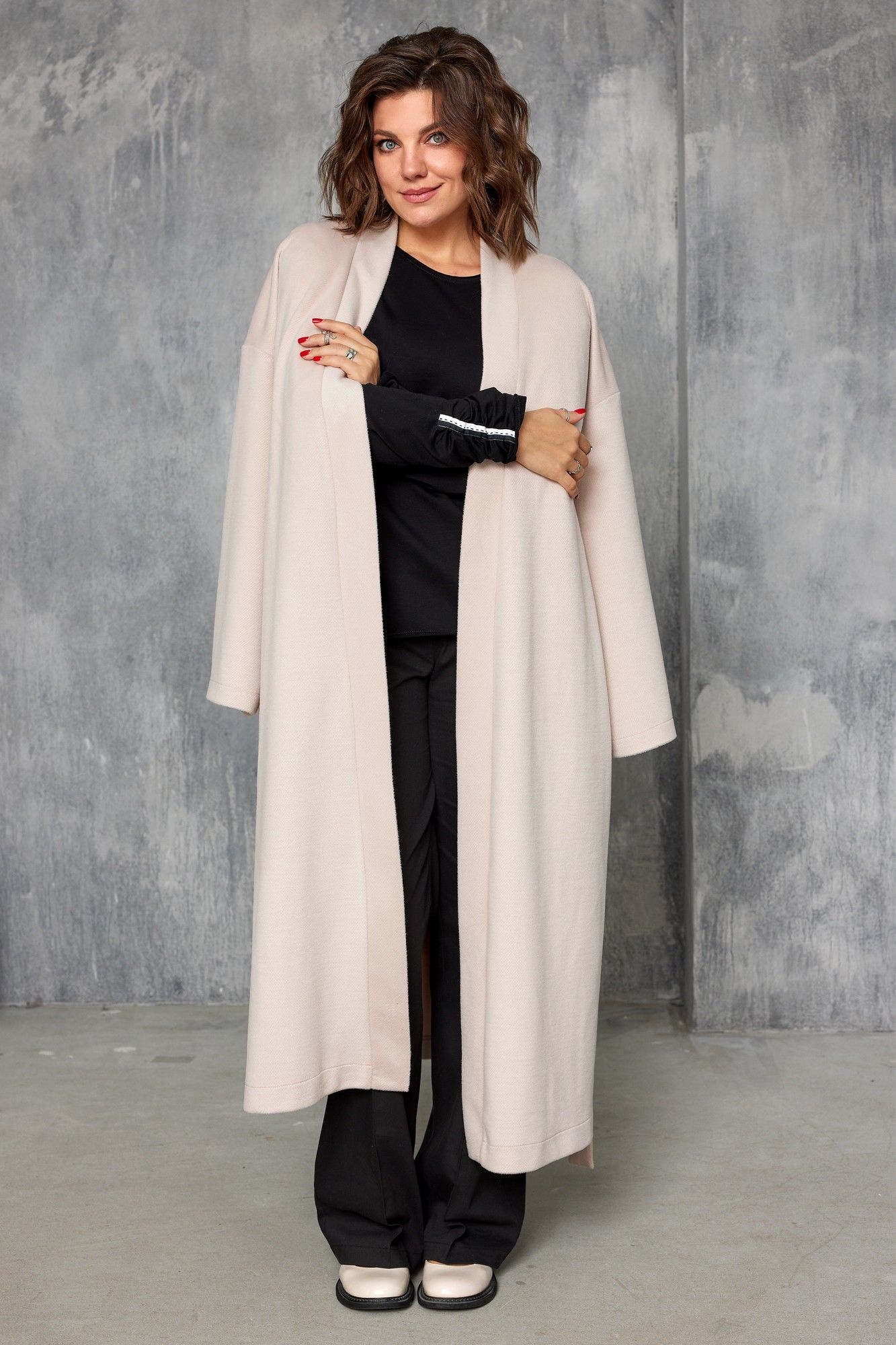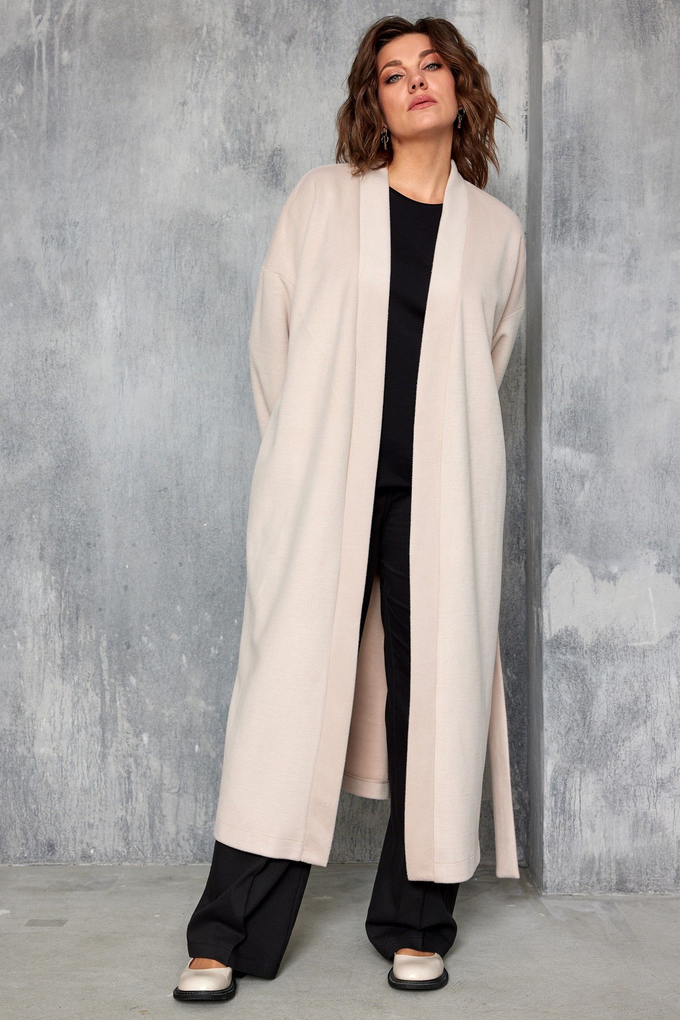 Стильный однотонный трикотажный кардиган – это абсолютный мастхэв осеннего сезона. Уютный и мягкий, он подарит Вам невероятный комфорт в прохладную погоду и поможет в создании множества многослойных образов с платьями, юбками, брюками. Нежный пудровый оттенок подчеркнёт Вашу свежесть и женственность. Кардиган свободного силуэта на запах без подкладки с V - образным вырезом обработан притачной обтачкой. В боковых швах карманы. Рукав со спущенной проймой. В районе талии шлёвки для фиксации пояса. В комплекте съёмный пояс. Низ кардигана обработан в подгибку. Для того, чтобы правильно подобрать свой размер, необходимо ваш замер объёма груди разделить на 2. (например, объём груди 104:2=52 размер). длина по центру спинки: 121см длина рукава от горловины: 77см Обхват груди: 136см/48р; 140см/50р; 144см/52р; 148см/54р; 152см/56р; 156см/58р; 160см/60р; 164см/62р. Рост фотомодели 174 см, размер одежды на фото 52. При подборе правильного размера, учитывайте, что для комфортной посадки у готового изделия должен быть запас на свободное прилегание. Все замеры выполнены в готовом изделии. Допуск расхождения в замерах +-2 см. (мягкий, приятный к телу трикотаж)