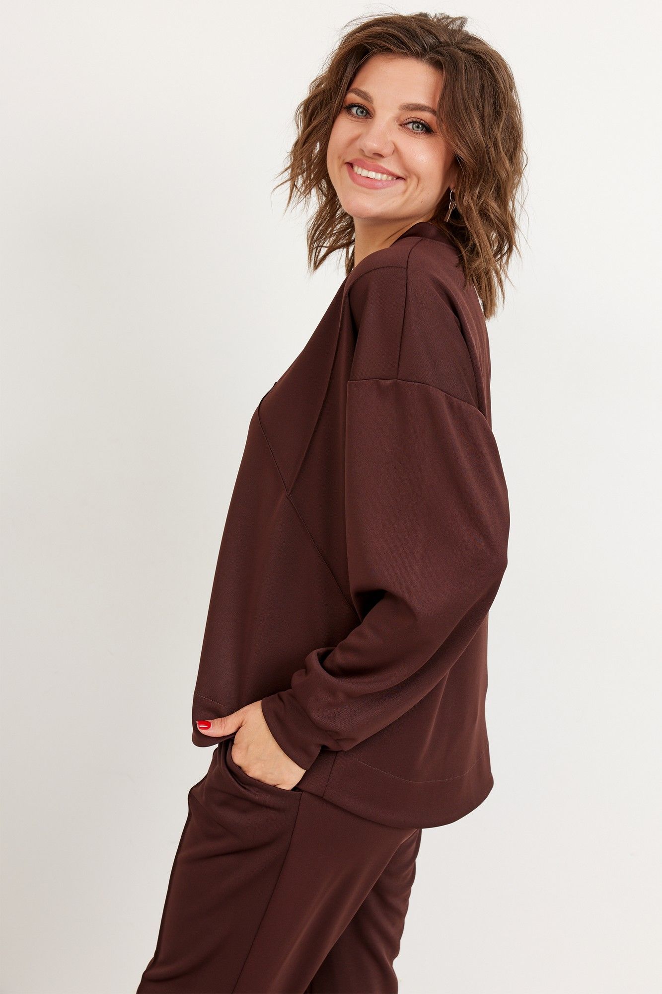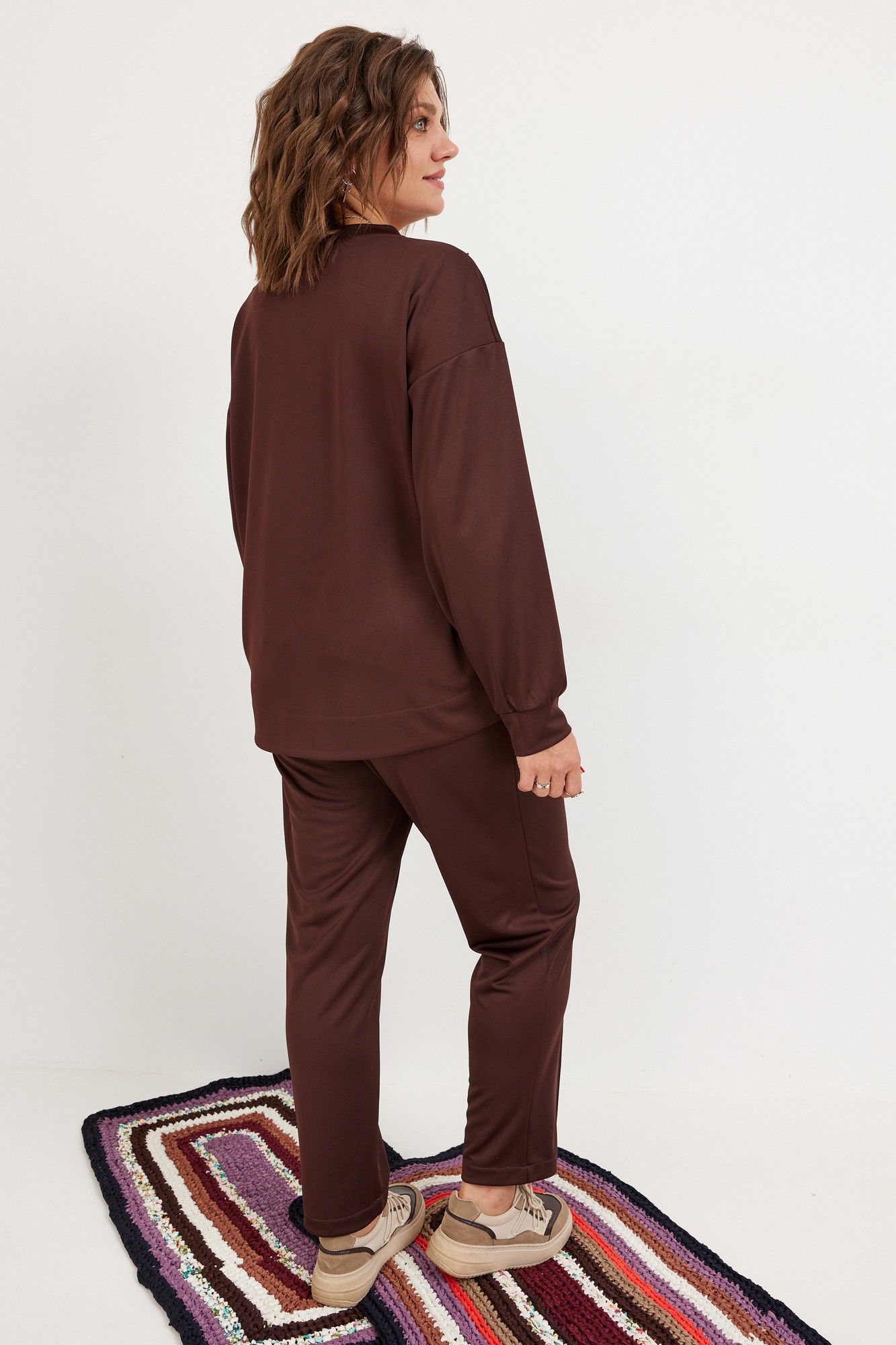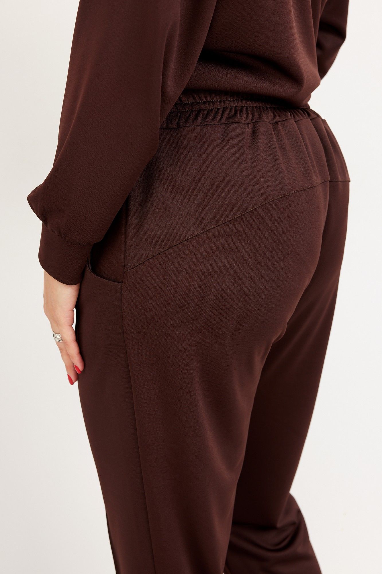 Потрясающий современный комплект из мягкого, эластичного трикотажа позволит обратить на себя внимание и создаст отличное настроение! Свободный силуэт свитшота подарит чувство комфорта. Декоративная отделка бисерной строчкой правильно расставляет акценты, создавая нужные линии, что позволяет визуально подчеркнуть достоинства фигуры. Брючки с застроченной стрелкой идеально садятся по фигуре, невероятно стройнят и удлиняют Ваши ножки! Горловина полукруглой формы, обработана притачной обтачкой из основного материала. Рукав втачной, со спущенной линией плеча и манжетой по низу. Низ изделия обработан обтачкой имеет форму полукруга. Брюки полуприлегающего силуэта, с застроченной стрелкой по линии переда. Пояс на резинке с островком для Вашего удобства. В боковых швах карманы «Хулиганы». Низ обработан классическим способом вподгибку. Дополните комплект любимыми кедами, лоферами, ботинками, и образ готов! Блуза: длина по спинке: 68 см длина рукава от горловины: 73 см Обхват груди: 112см/46р; 116см/48р; 120см/50р; 124см/52р; 128см/54р; 132см/56р; 136см/58р; 140см/60р; 144см/62р. Брюки: Длина брюк с поясом: 98 см обхват бёдер: 108см/48р; 112см/50р; 116см/52р; 120см/54р; 124см/56р; 128см/58р; 132см/60р; 136см/62р. Рост фотомодели 174 см, размер одежды на фото 52. При подборе правильного размера, учитывайте, что для комфортной посадки у готового изделия должен быть запас на свободное прилегание. Все замеры выполнены в готовом изделии. Допуск расхождения в замерах +-2 см. (тактильно приятный струящийся трикотаж)