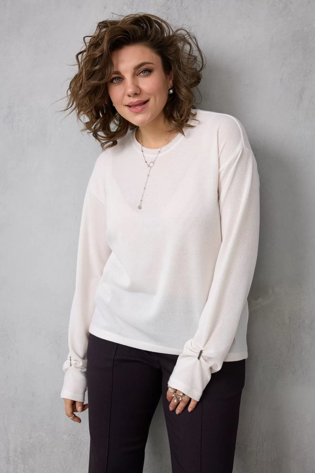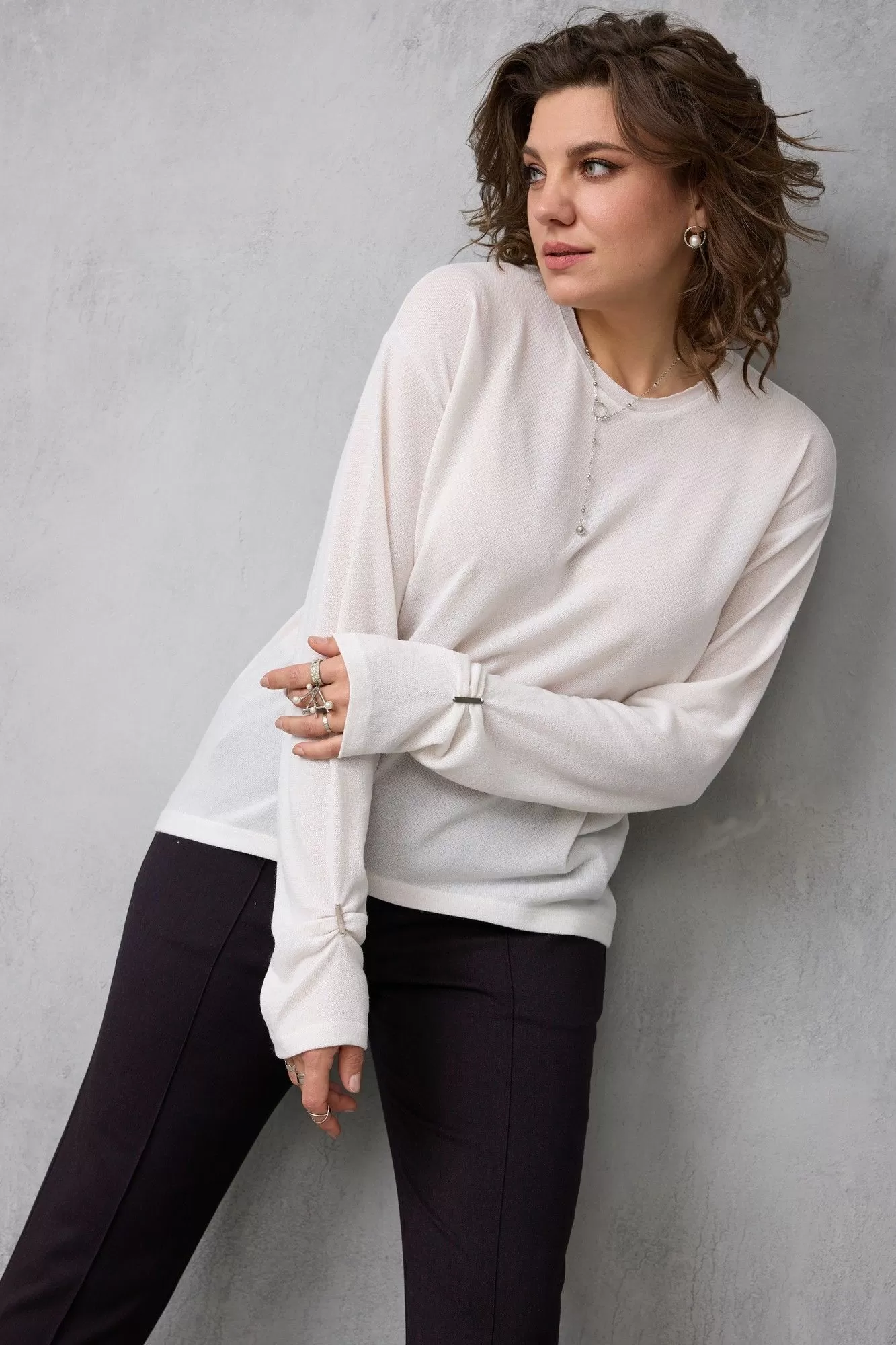 Вы непременно полюбите этот мягкий, нежный, уютный лонгслив из приятного к телу трикотажа. Освежающий, актуальный вне времени молочный цвет незаменим в современном гардеробе стильной модницы, поскольку помогает создать множество гармоничных сочетаний. Это базовая модель, которую можно носить самостоятельно, а также использовать в сочетании с жакетом, жилетом.