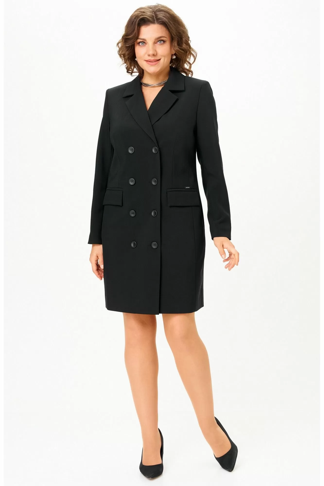 Двубортное платье-пиджак- это основа безупречного стиля, модель с воротником пиджачного типа, втачной рукав со шлицей, карман с клапаном, платье полностью на подкладке. Идеально для офиса,важных встреч,деловых обедов. Длина по спинке 89 см, длина рукава 62 см.